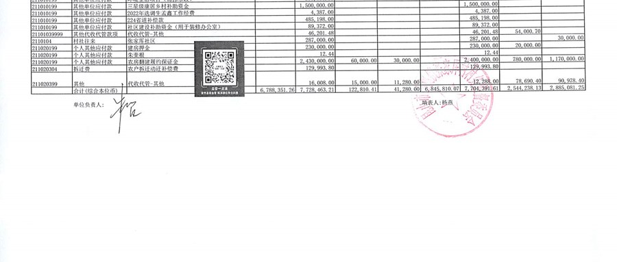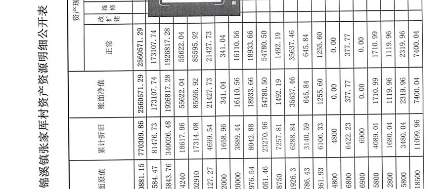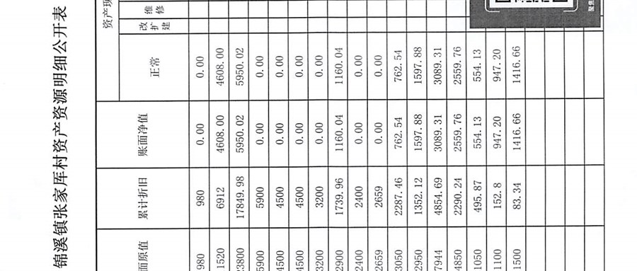 2025年1月张家厍村财务定期公开