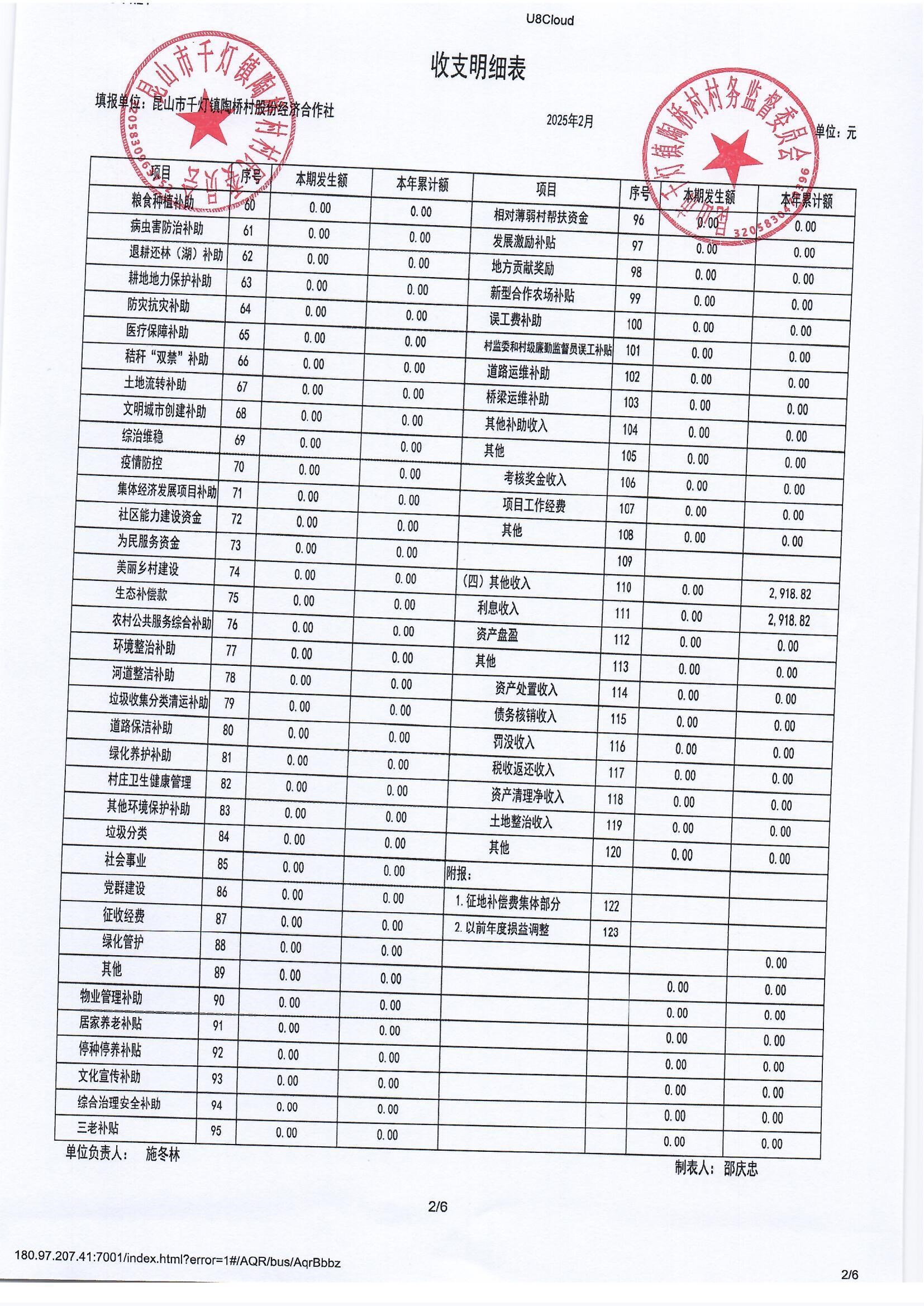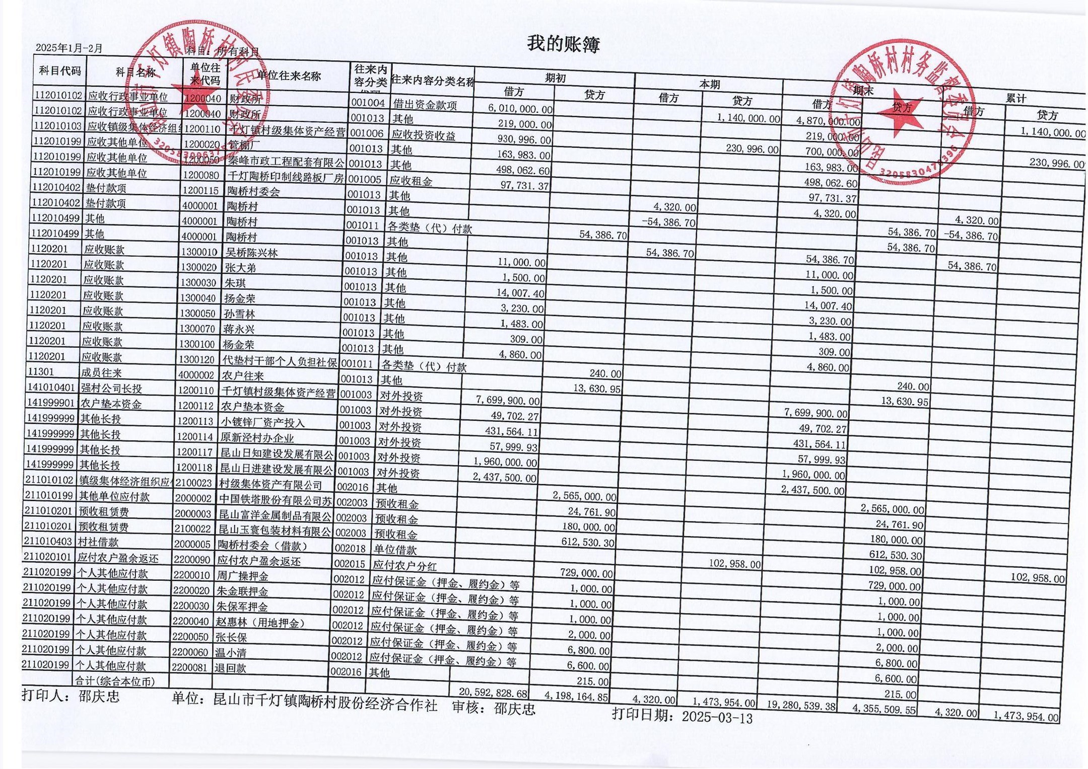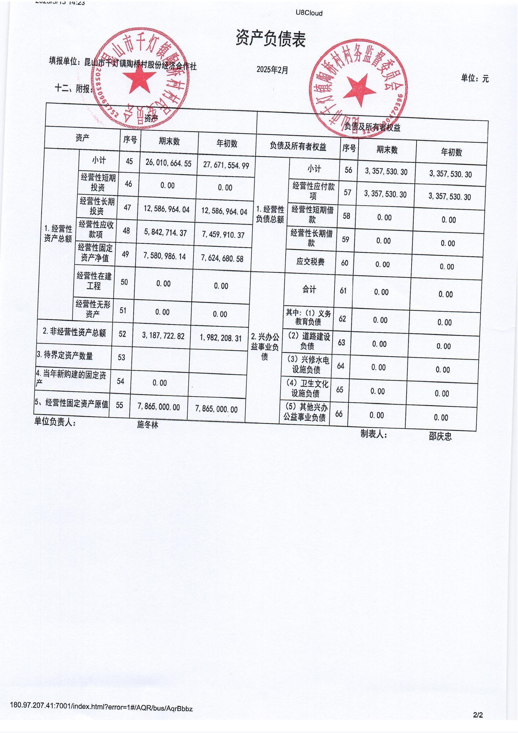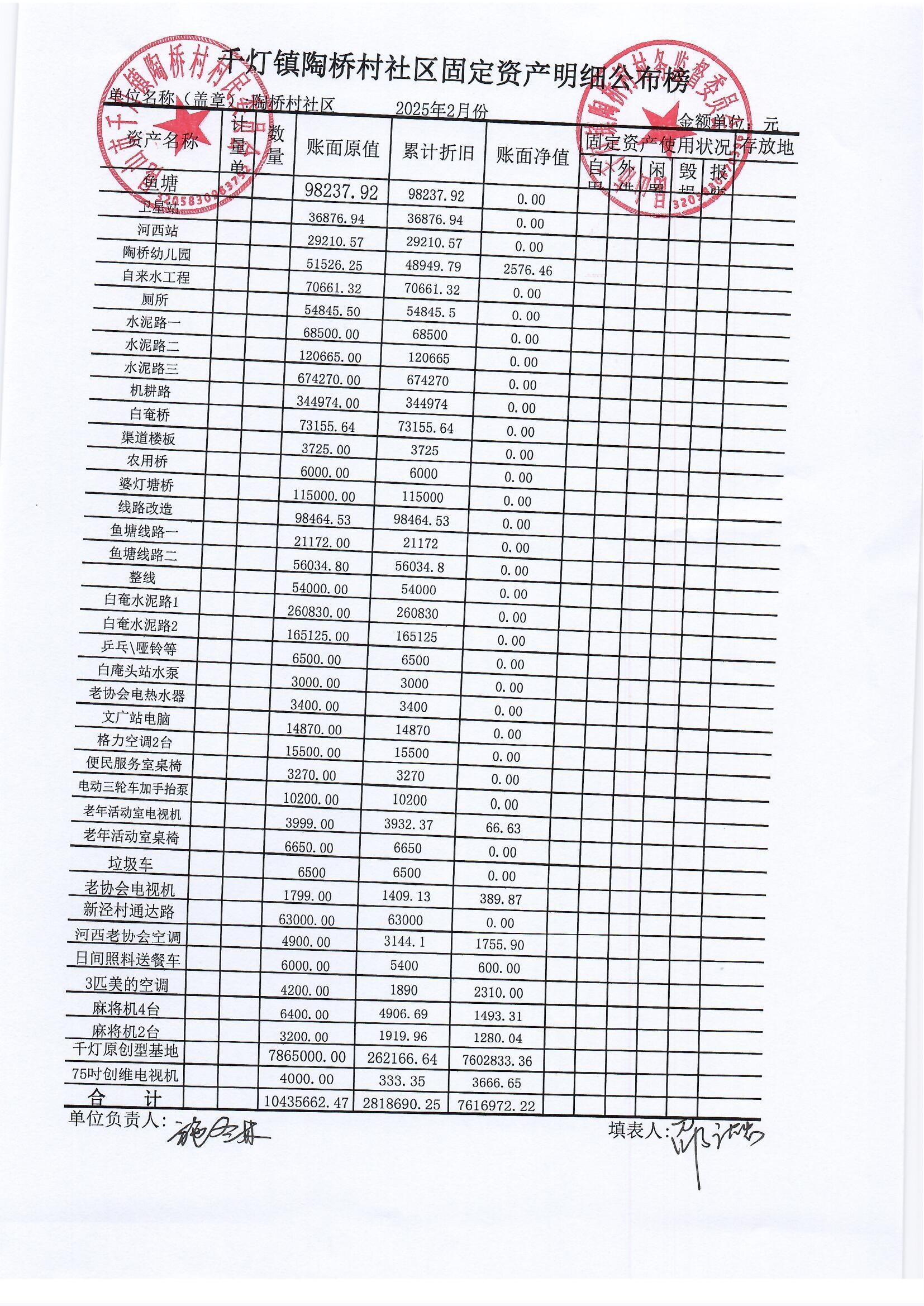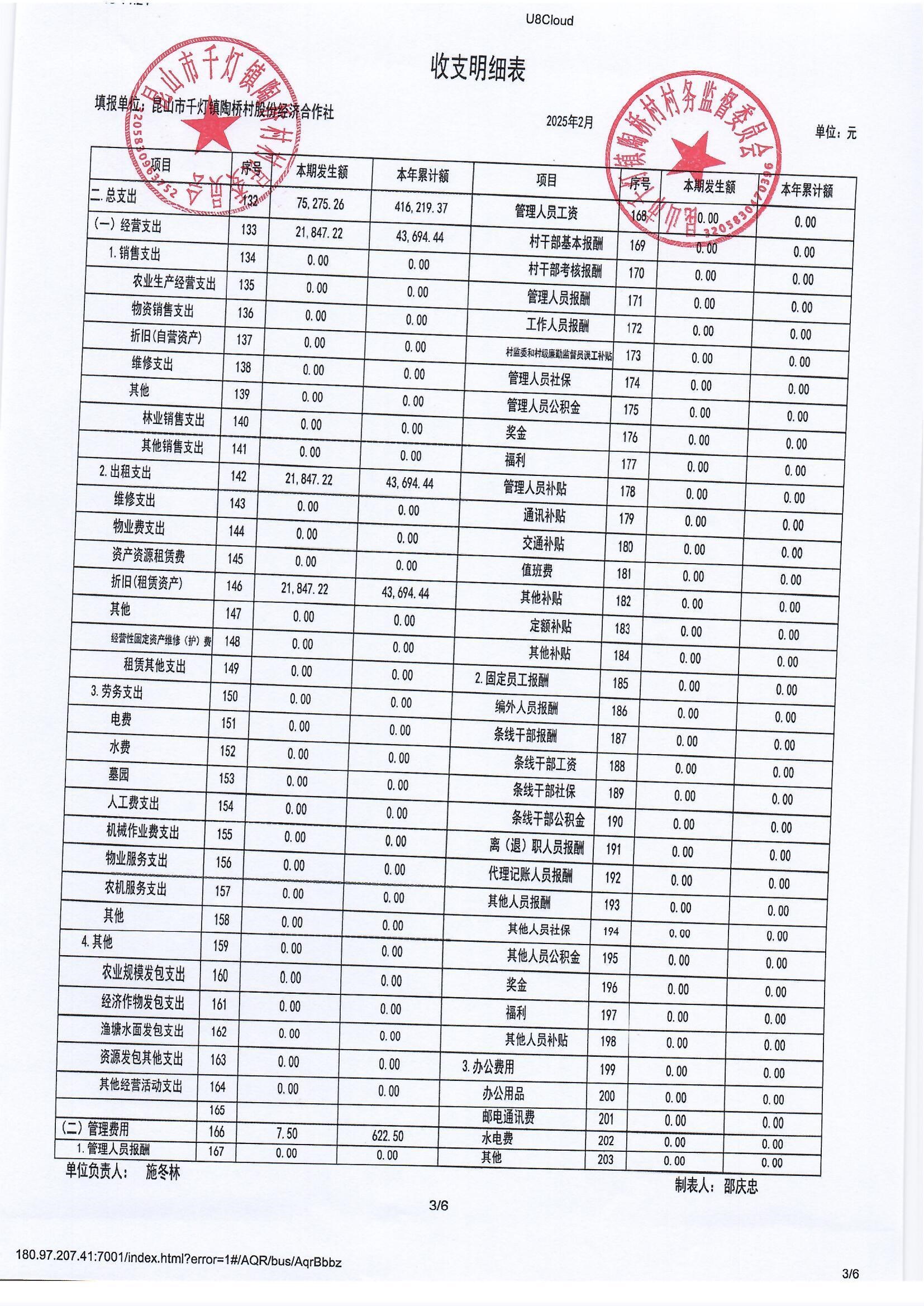 2025年2月份陶桥村股份经济合作社财务公开内容: