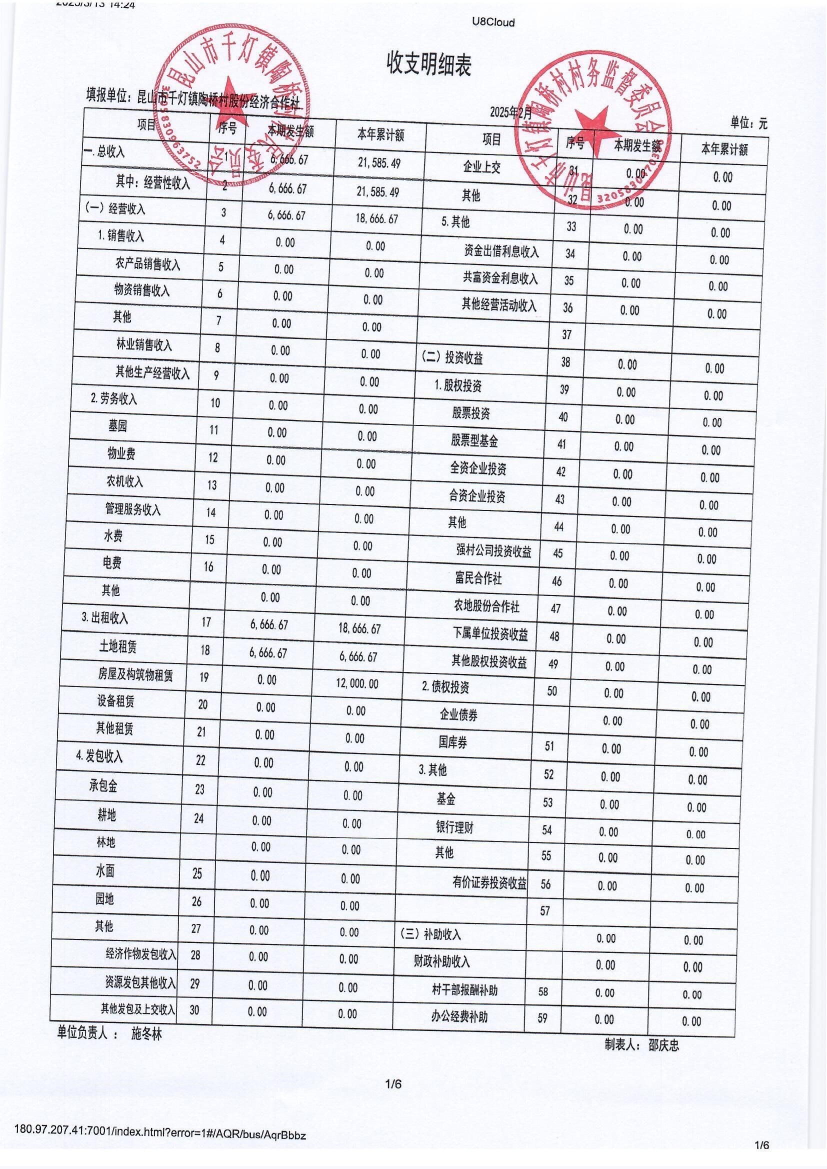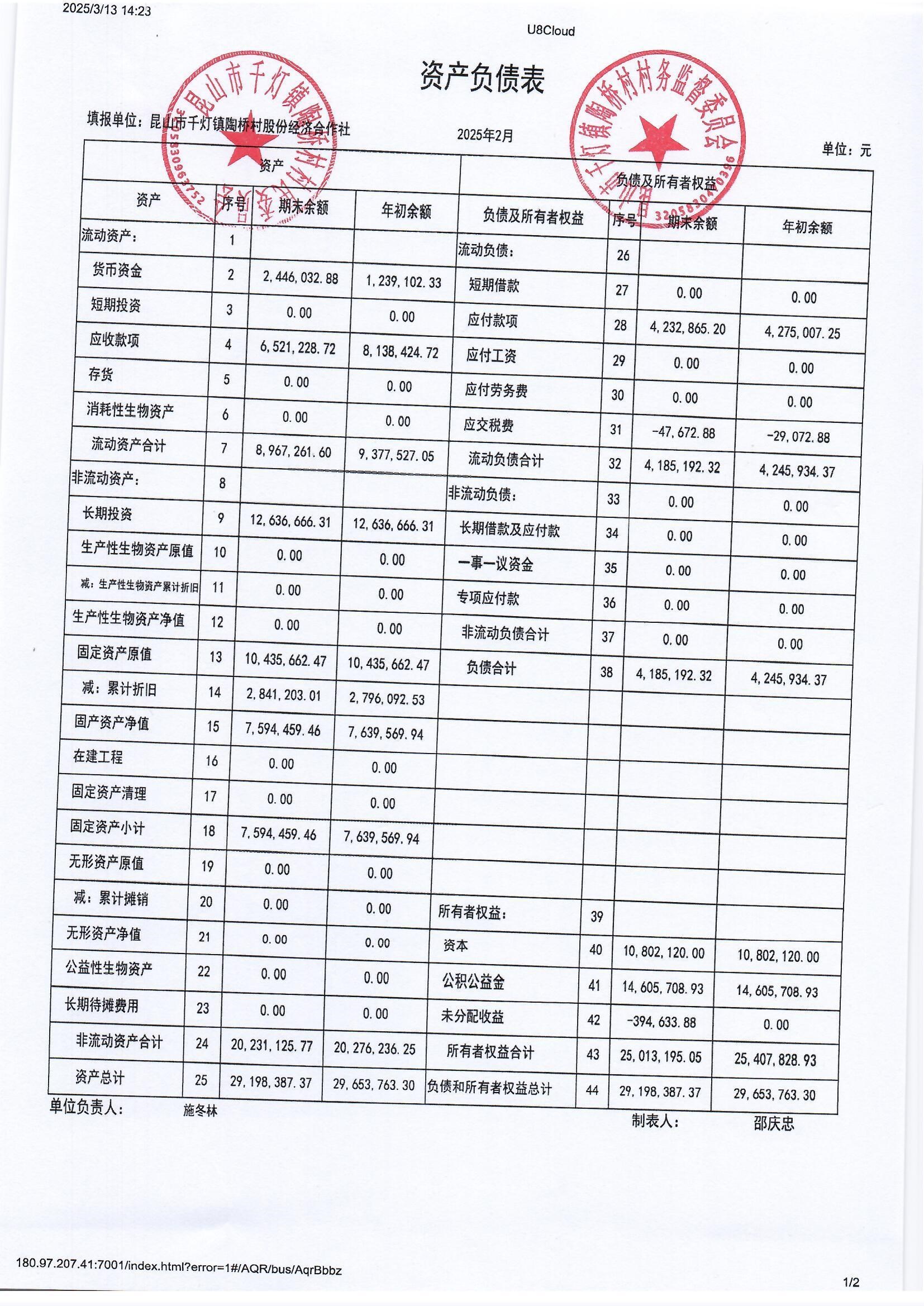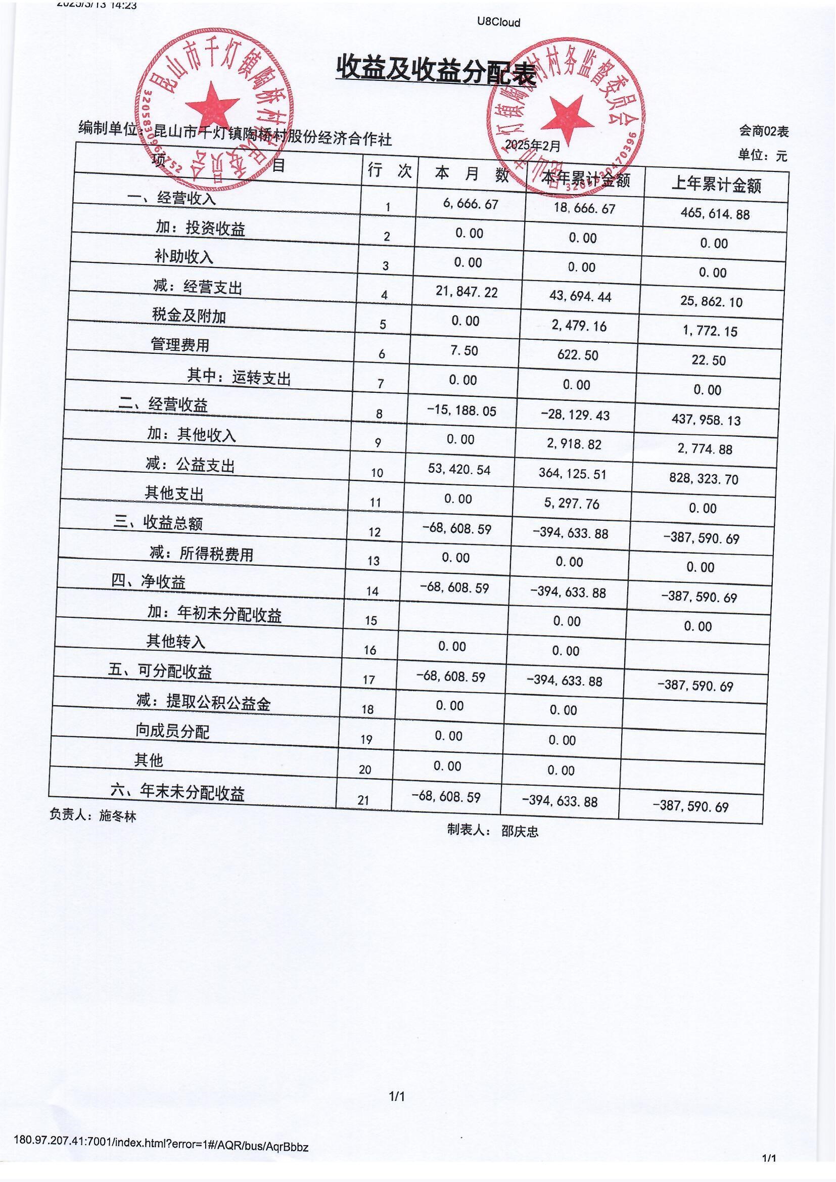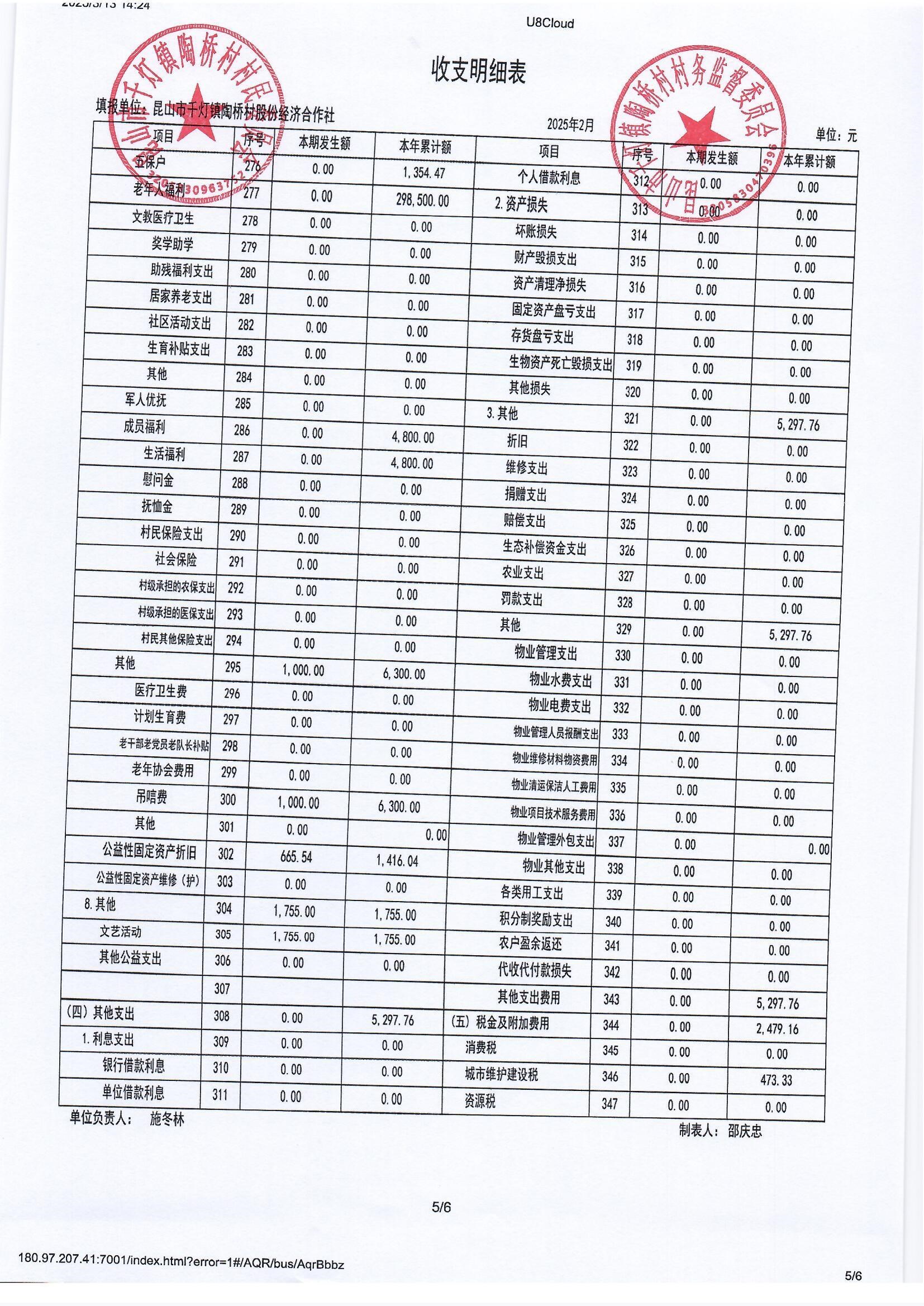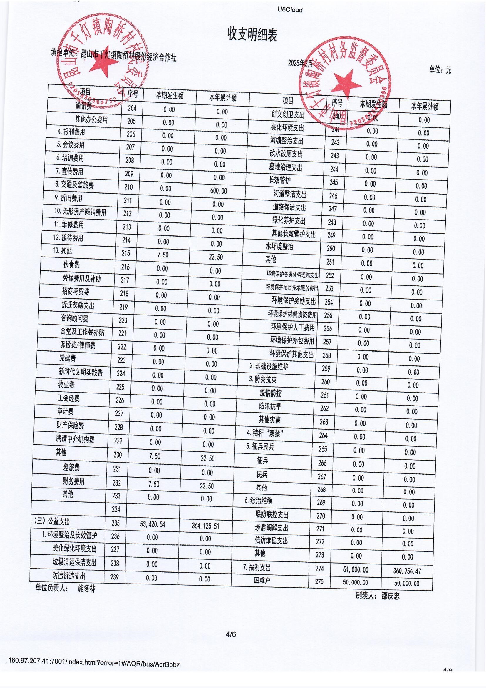 2025年2月份陶桥村股份经济合作社财务公开内容: