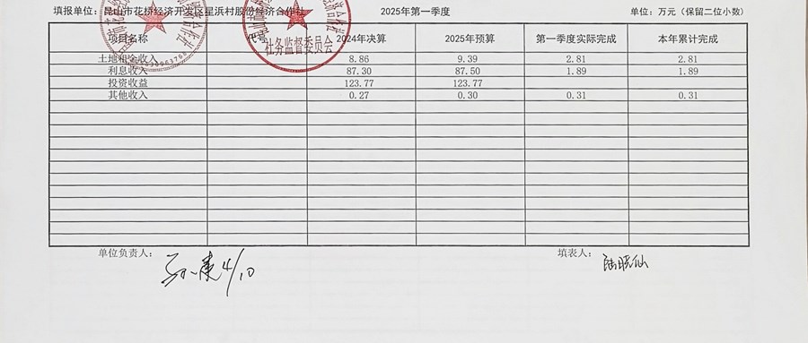 2025年星浜村股份经济合作社3月份定期财务公示