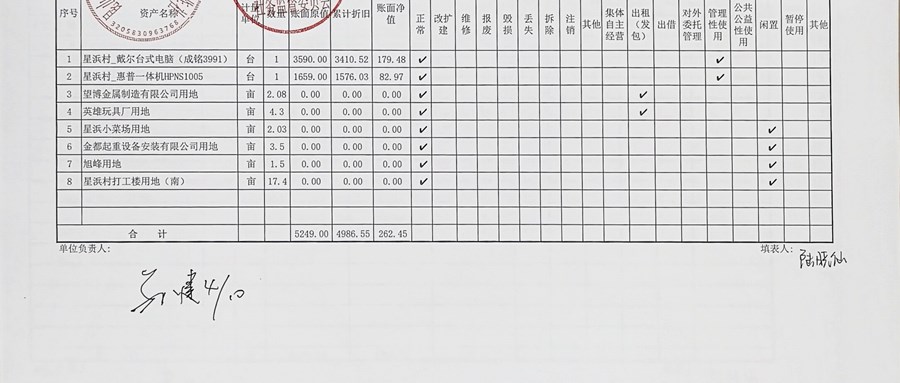 村盖章事项名录