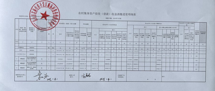 2025年顺扬村股份经济合作社第一季度清缴欠租公示