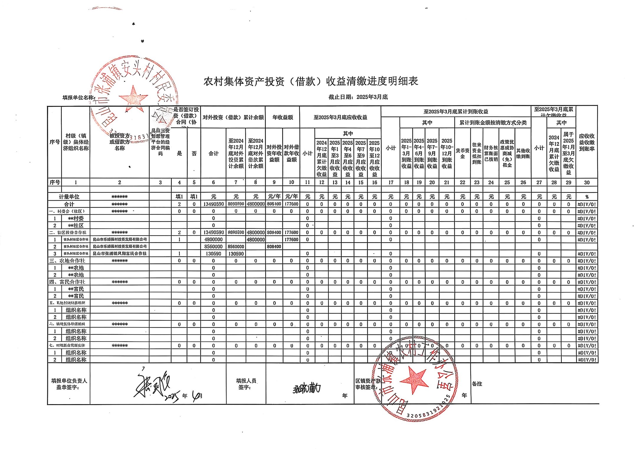 安头村2025年3月集体资产、资源租赁发包经济合同执行公开