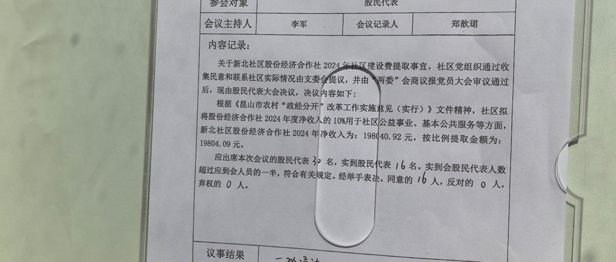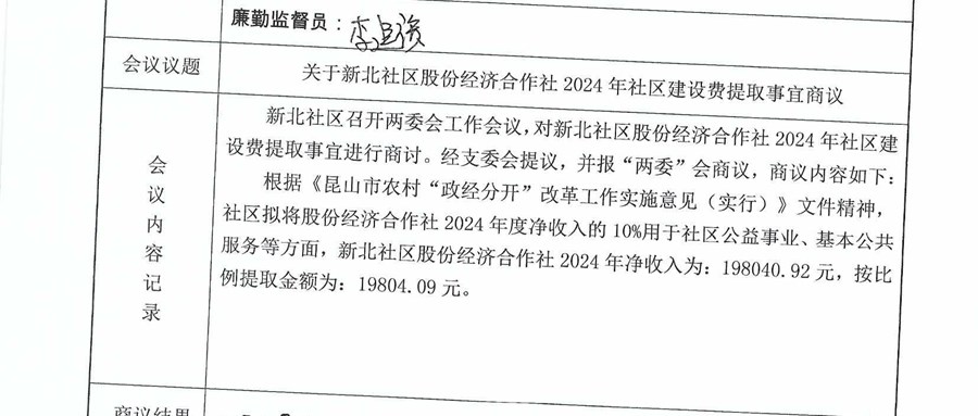 关于新北社区股份经济合作社2024年度社区建设资金提取事宜公示