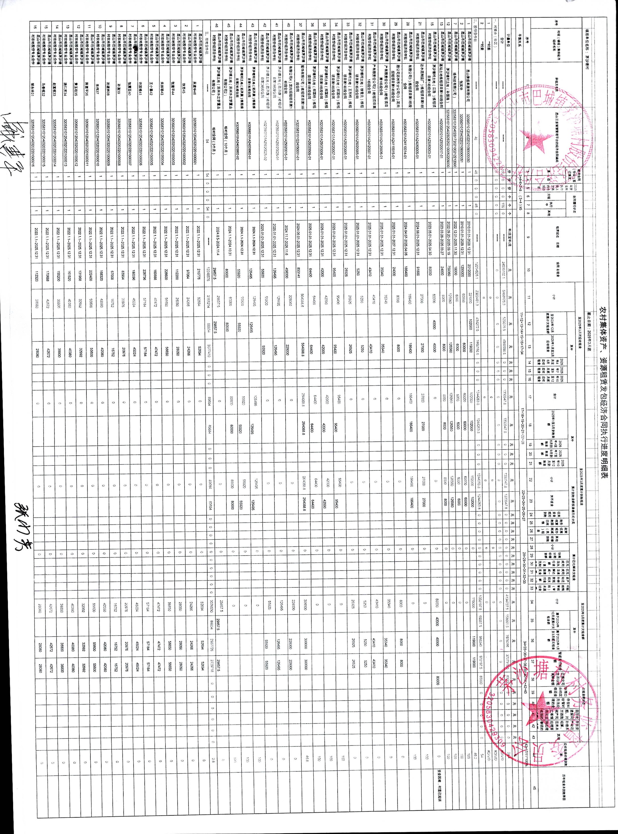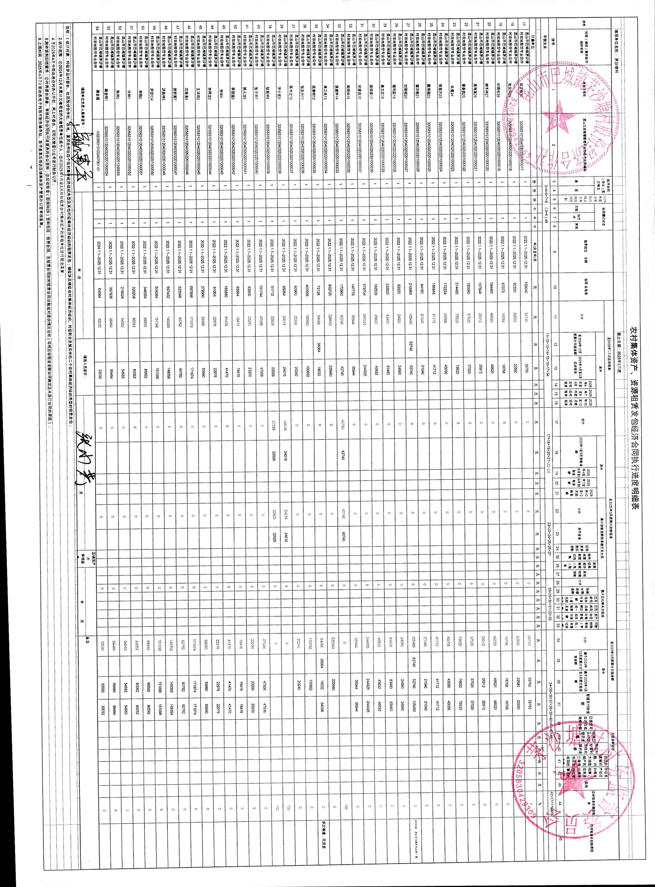 农村集体资产、资源租赁发包经济合同执行进度明细表(第一季度)