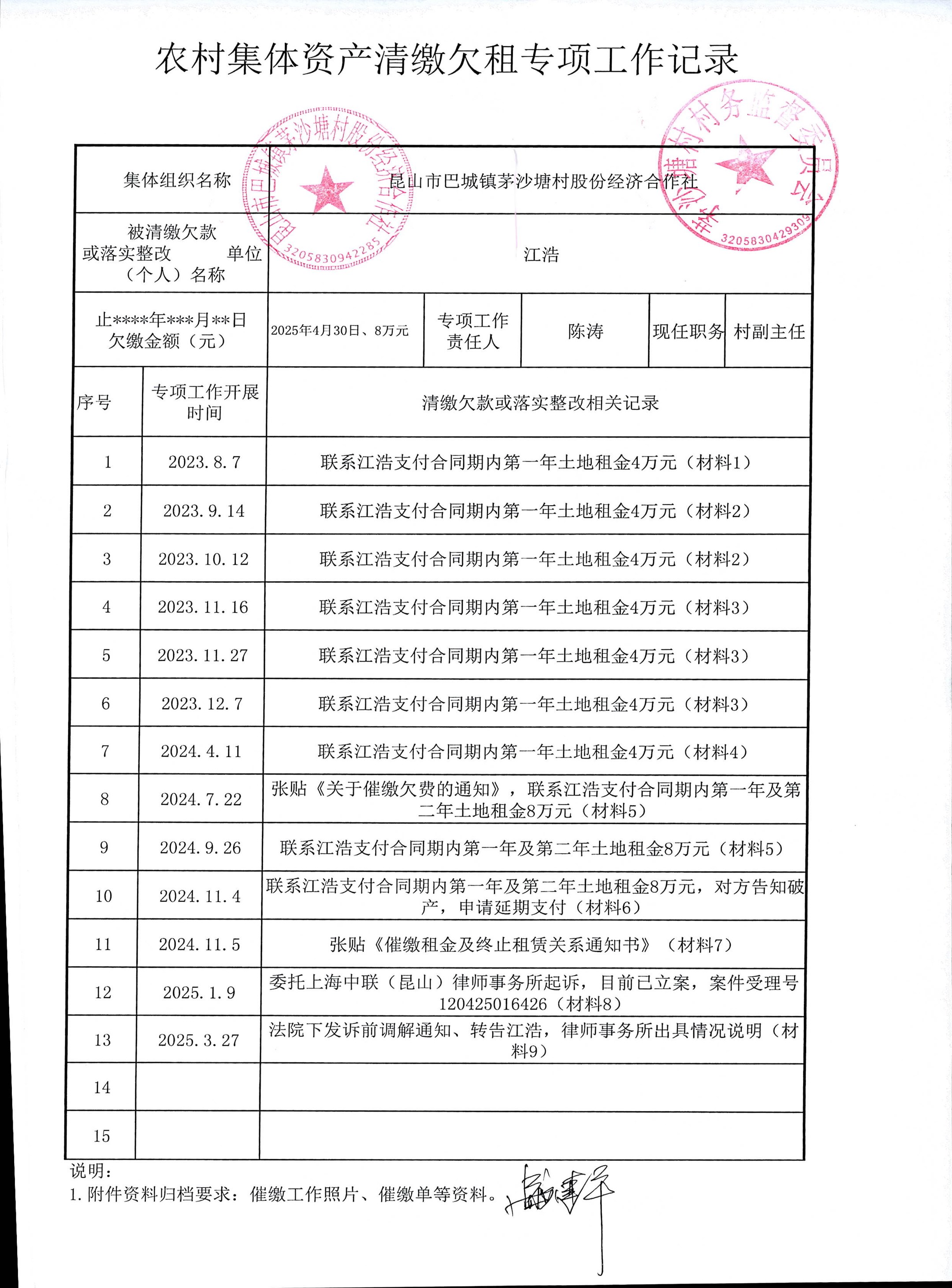 村盖章事项名录