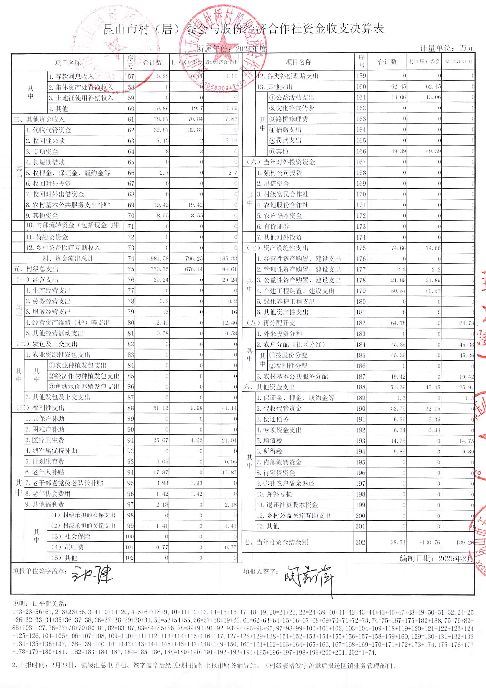 杜桥村委会与股份经济合作社2024年度资金收支决算表