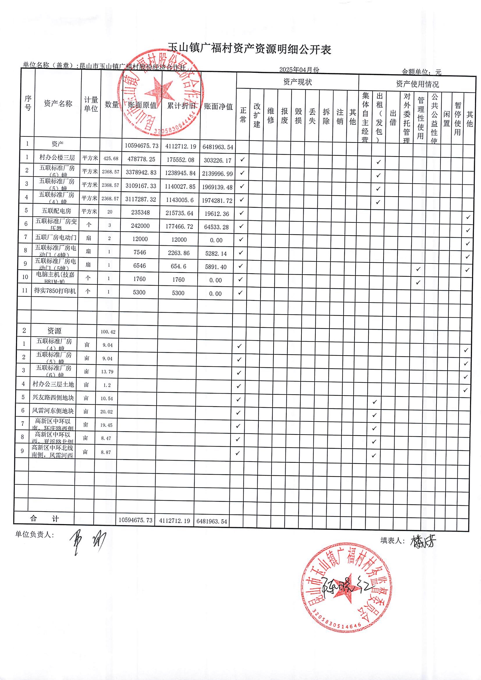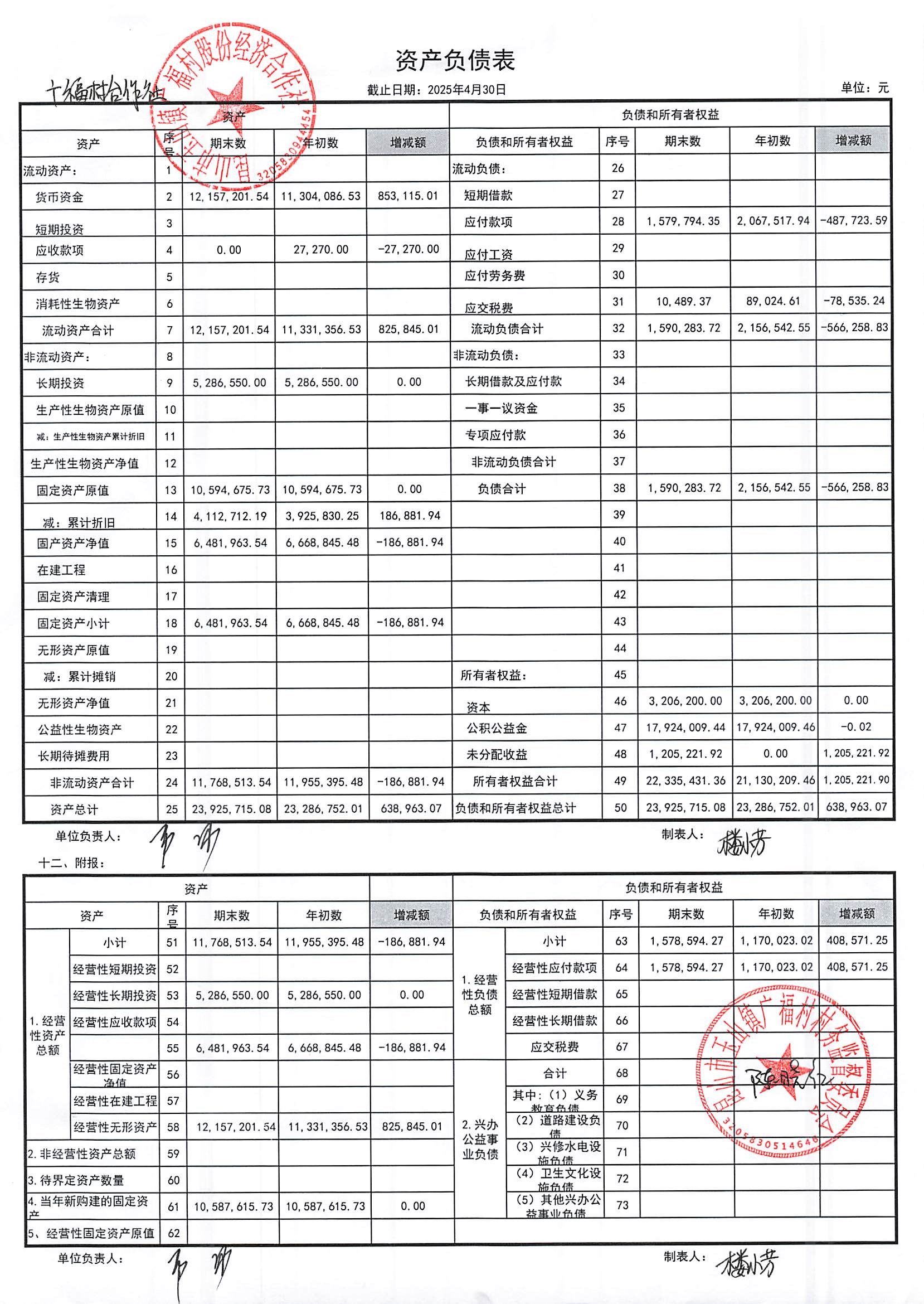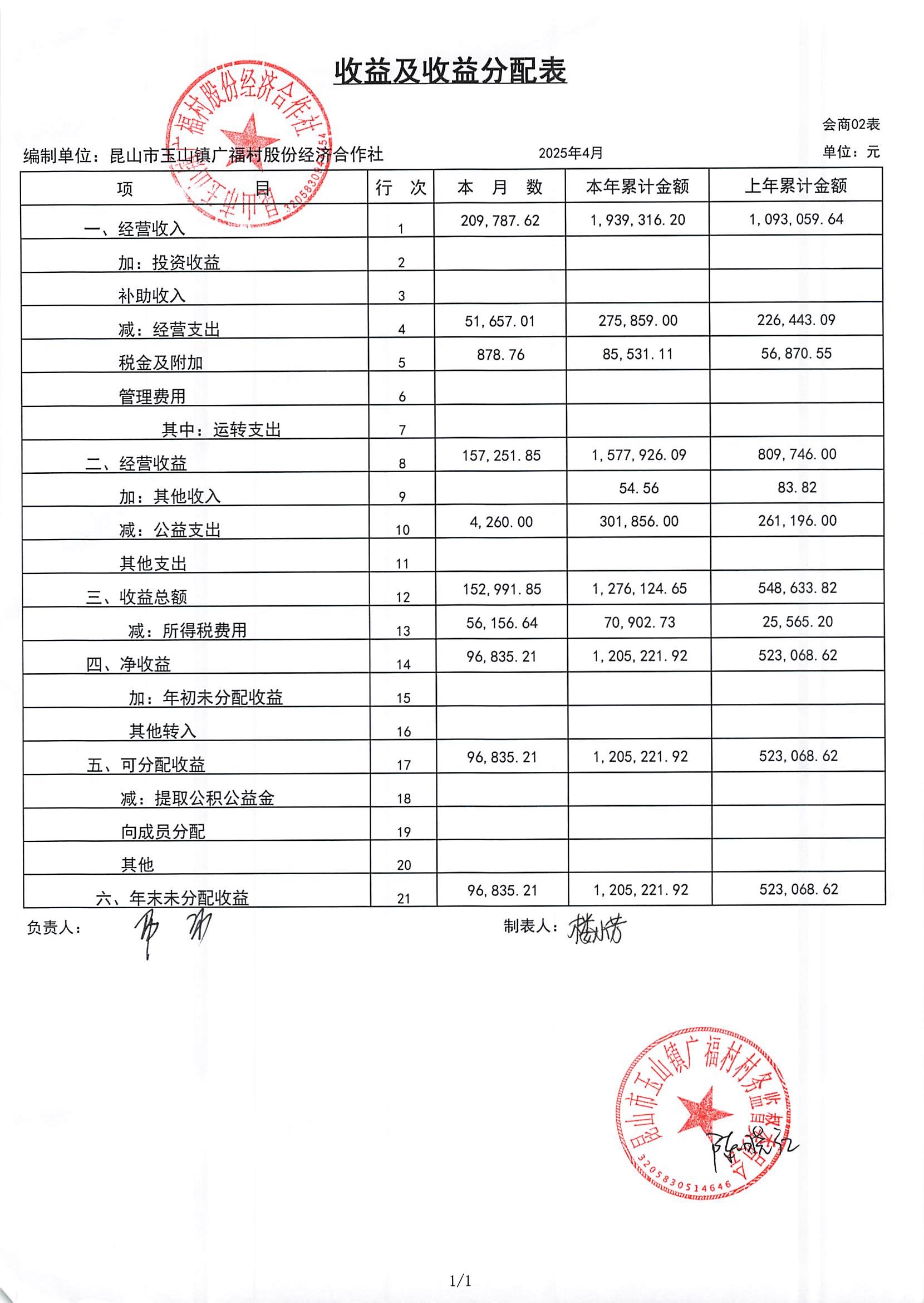 2025年广福村股份合作社5月份财务公开内容