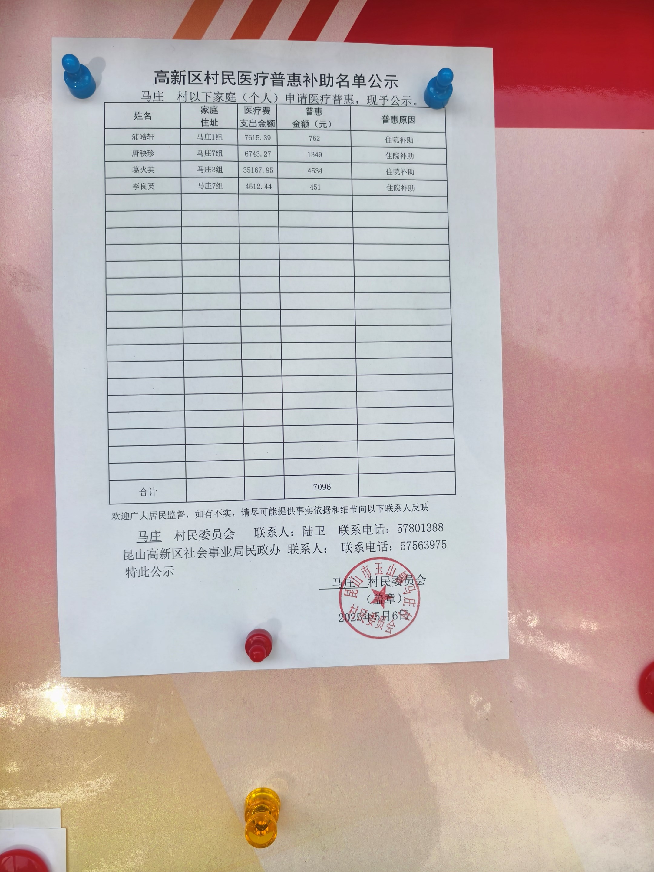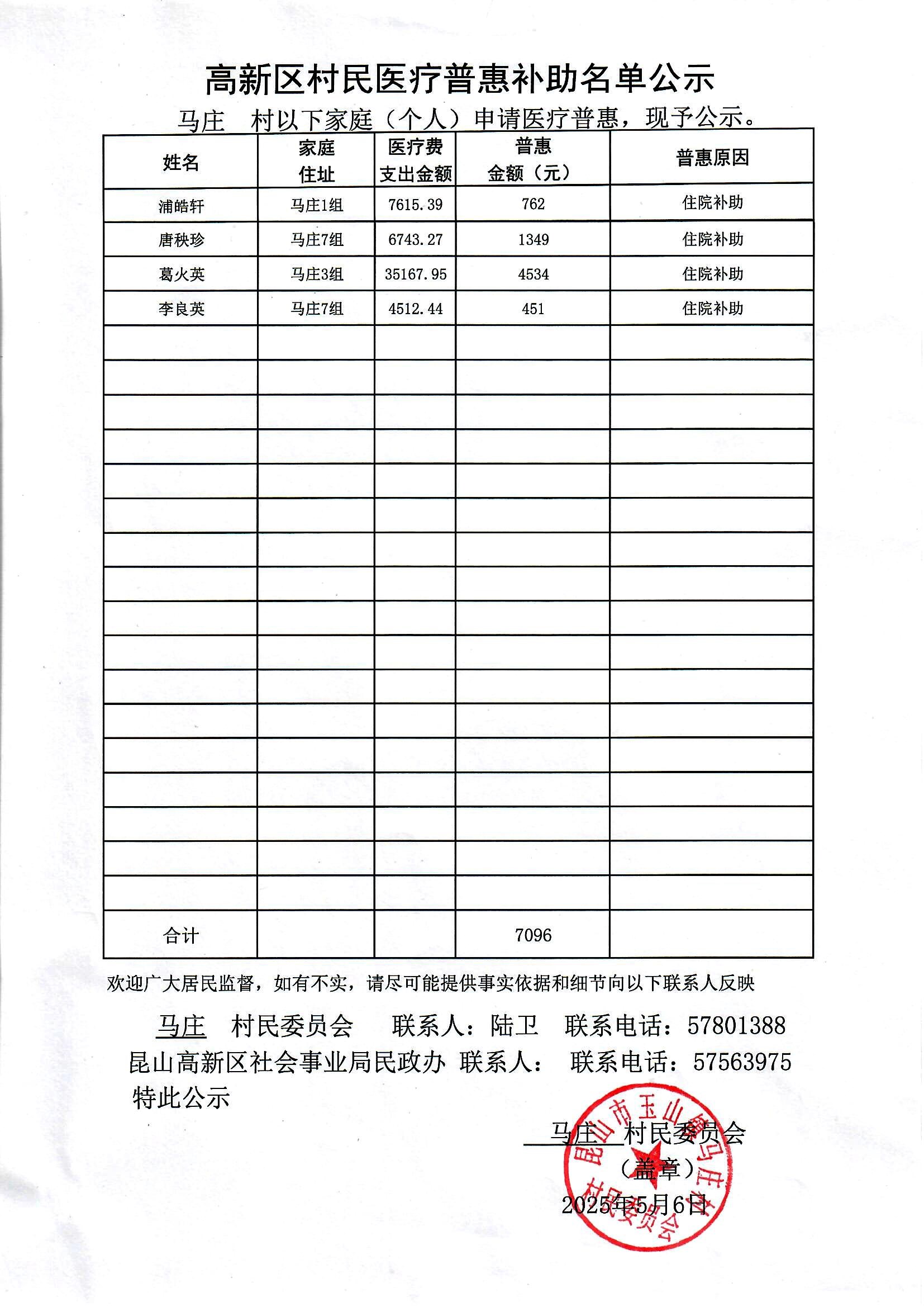 2025年5月村民医疗普惠补助名单
