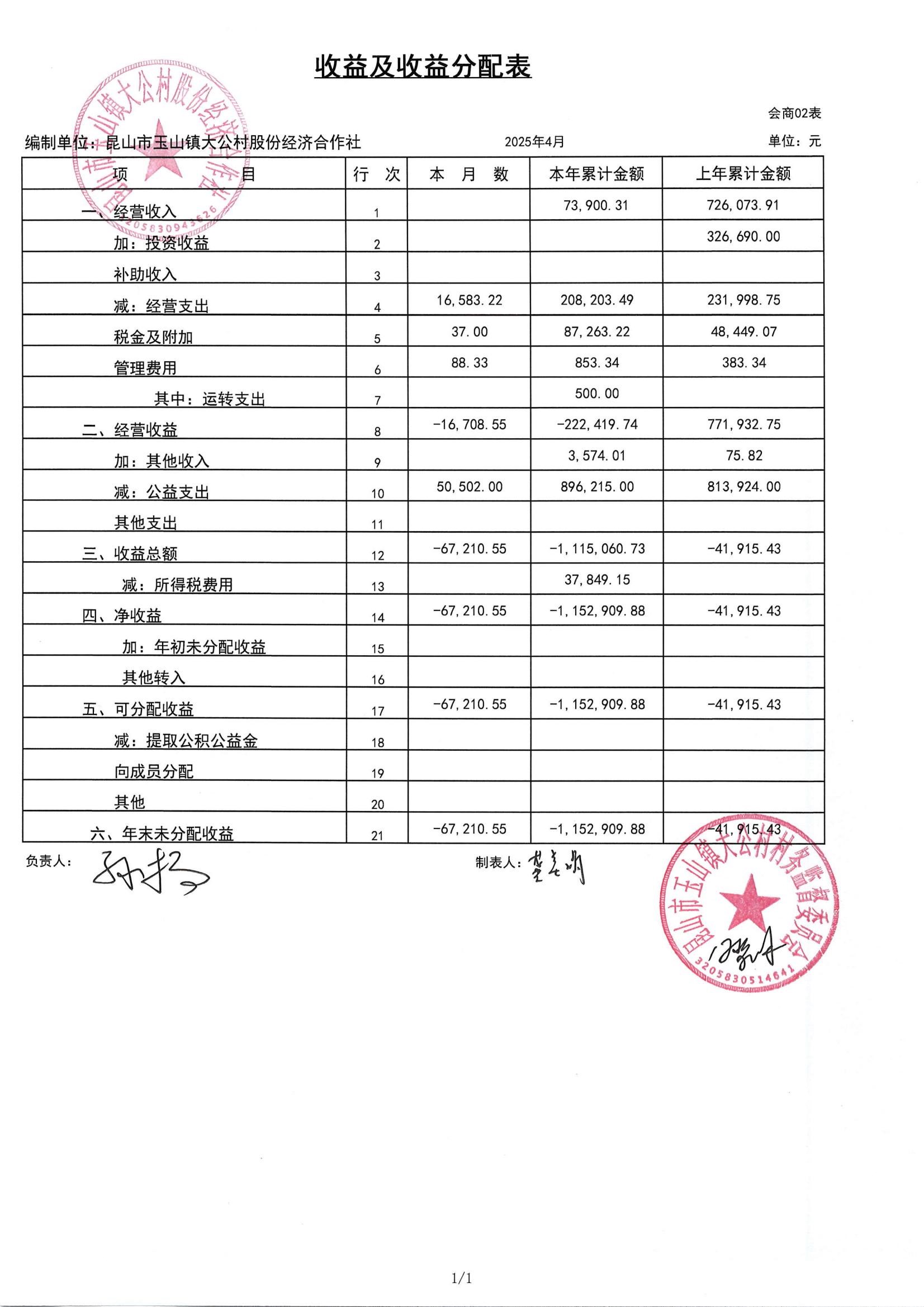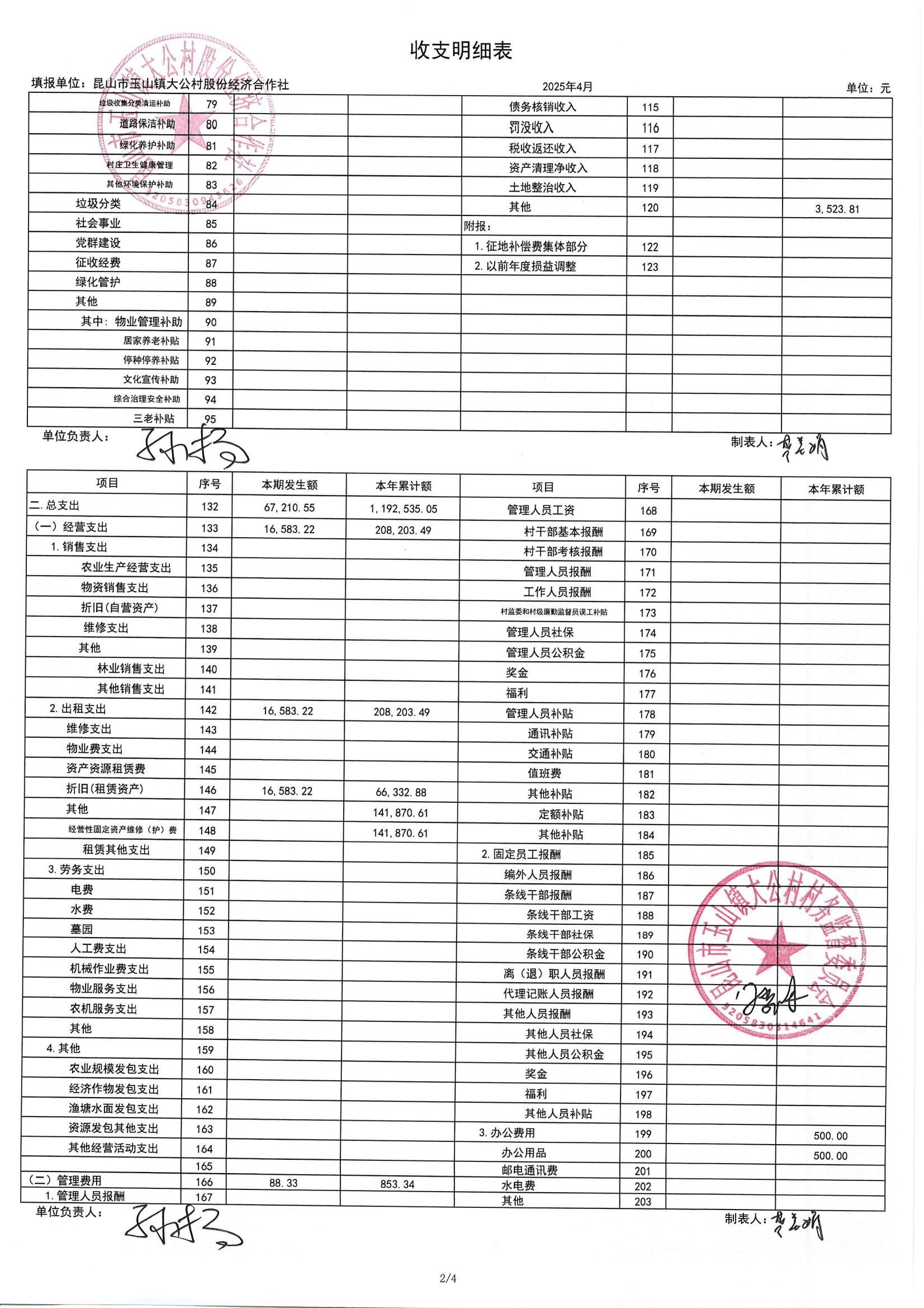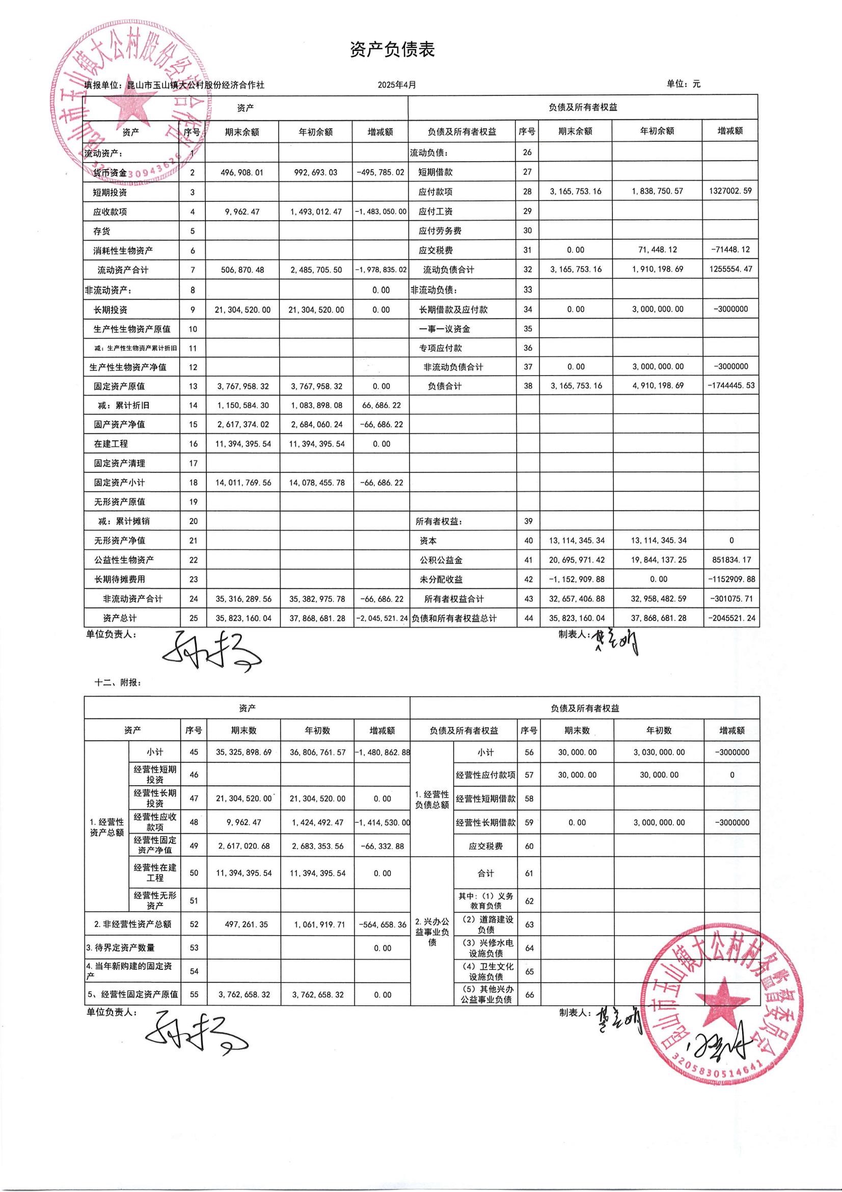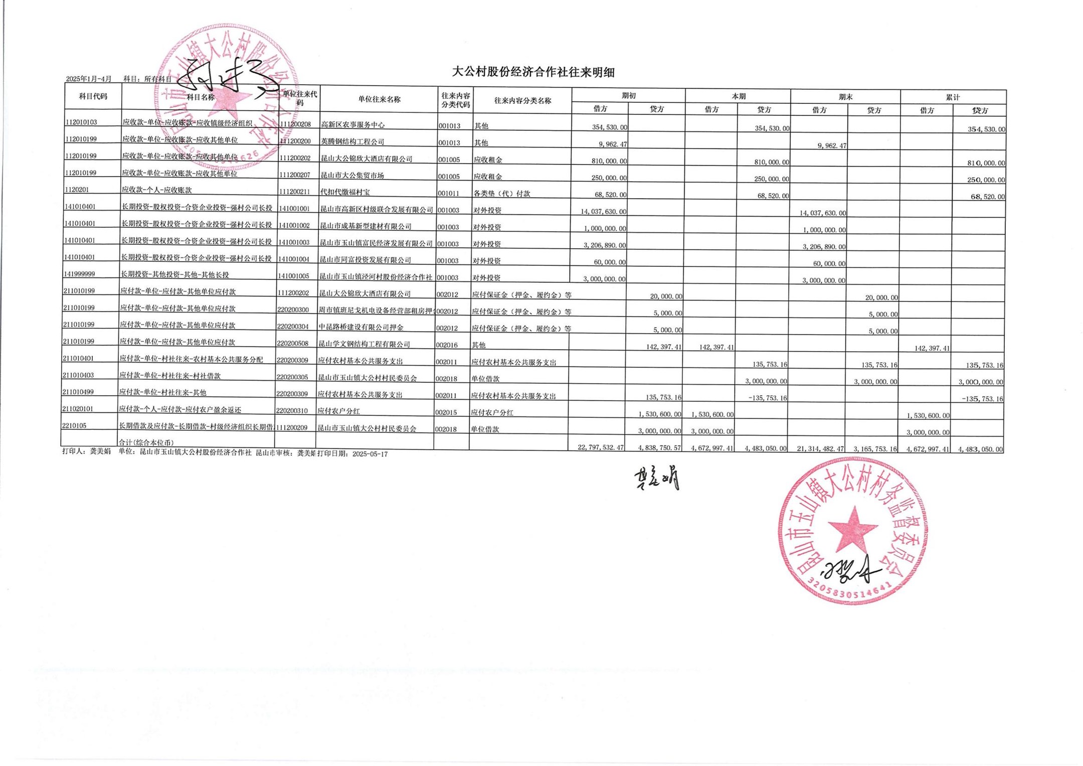 高新区大公村股份经济合作社2025年5月财务公开