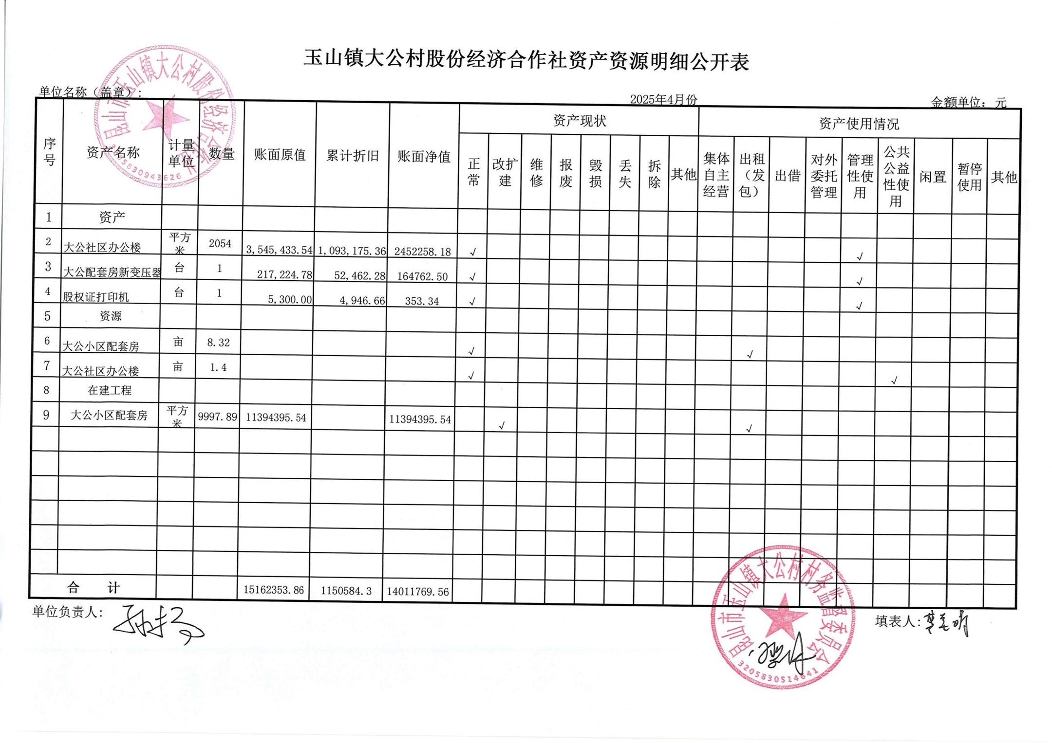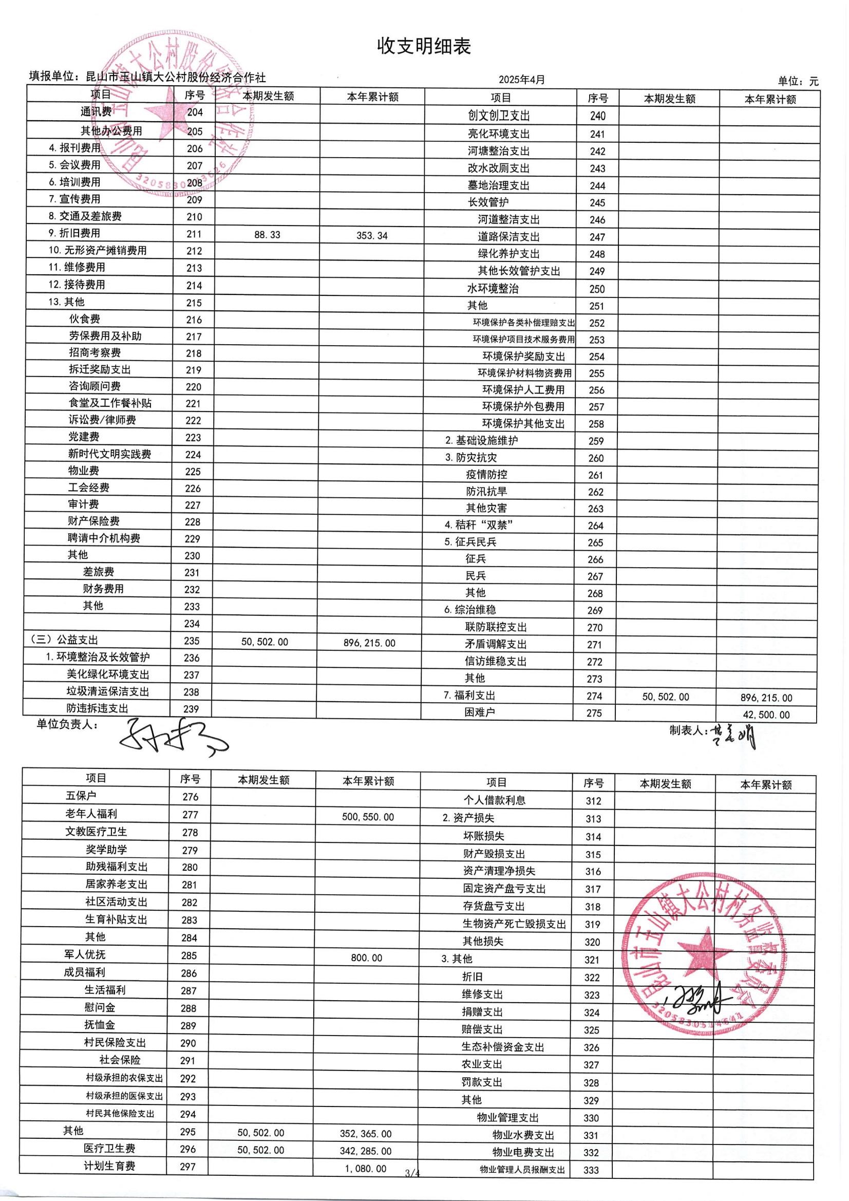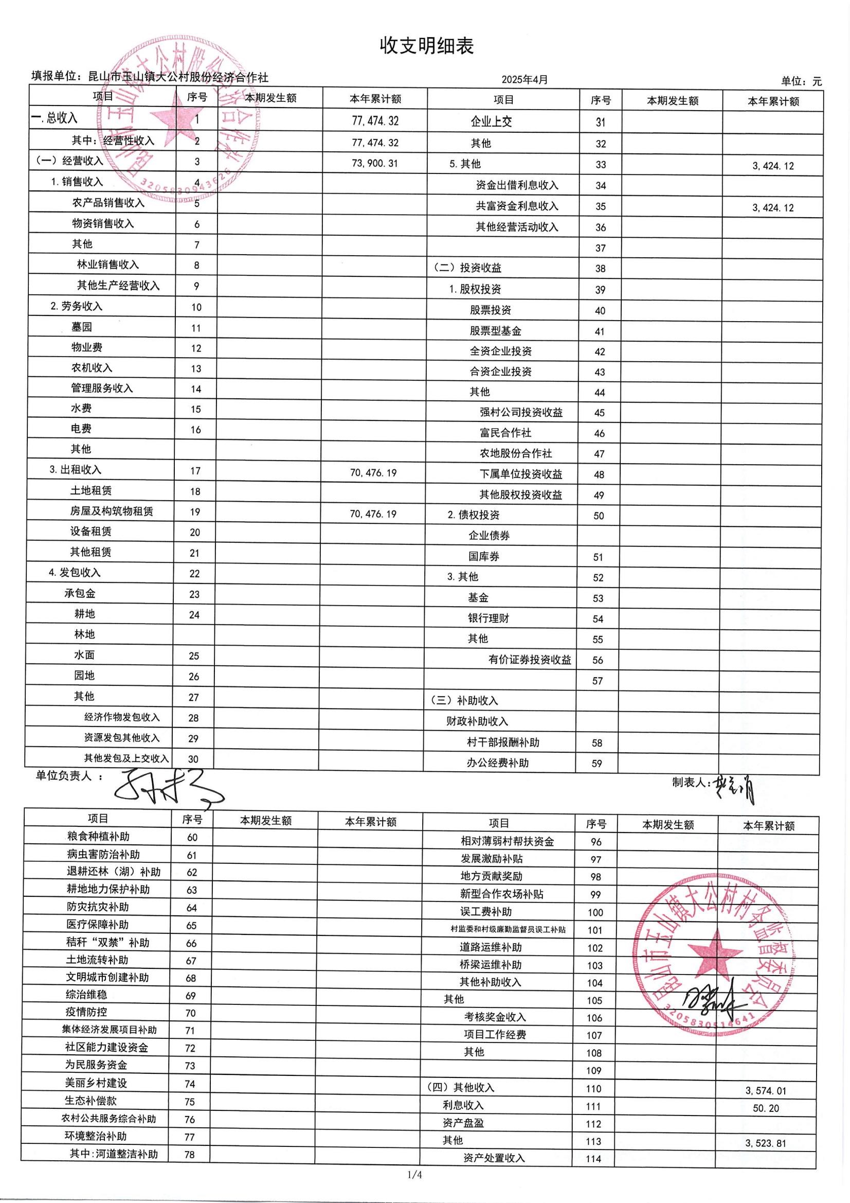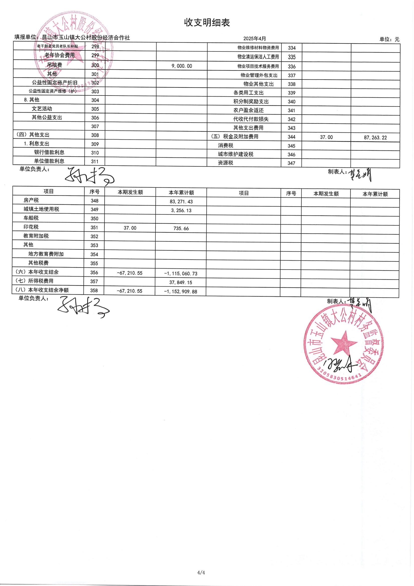 高新区大公村股份经济合作社2025年5月财务公开