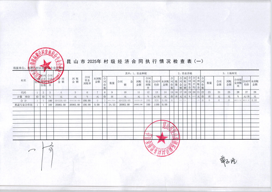 2025年杨湘农地专业合作社第一季度经济合同执行情况