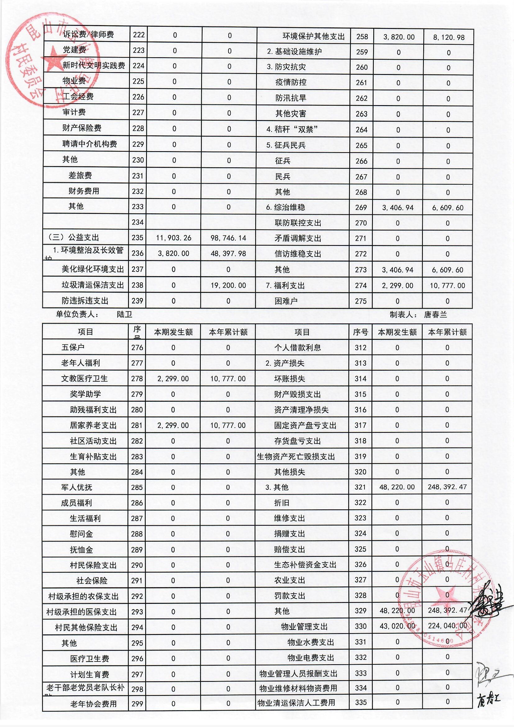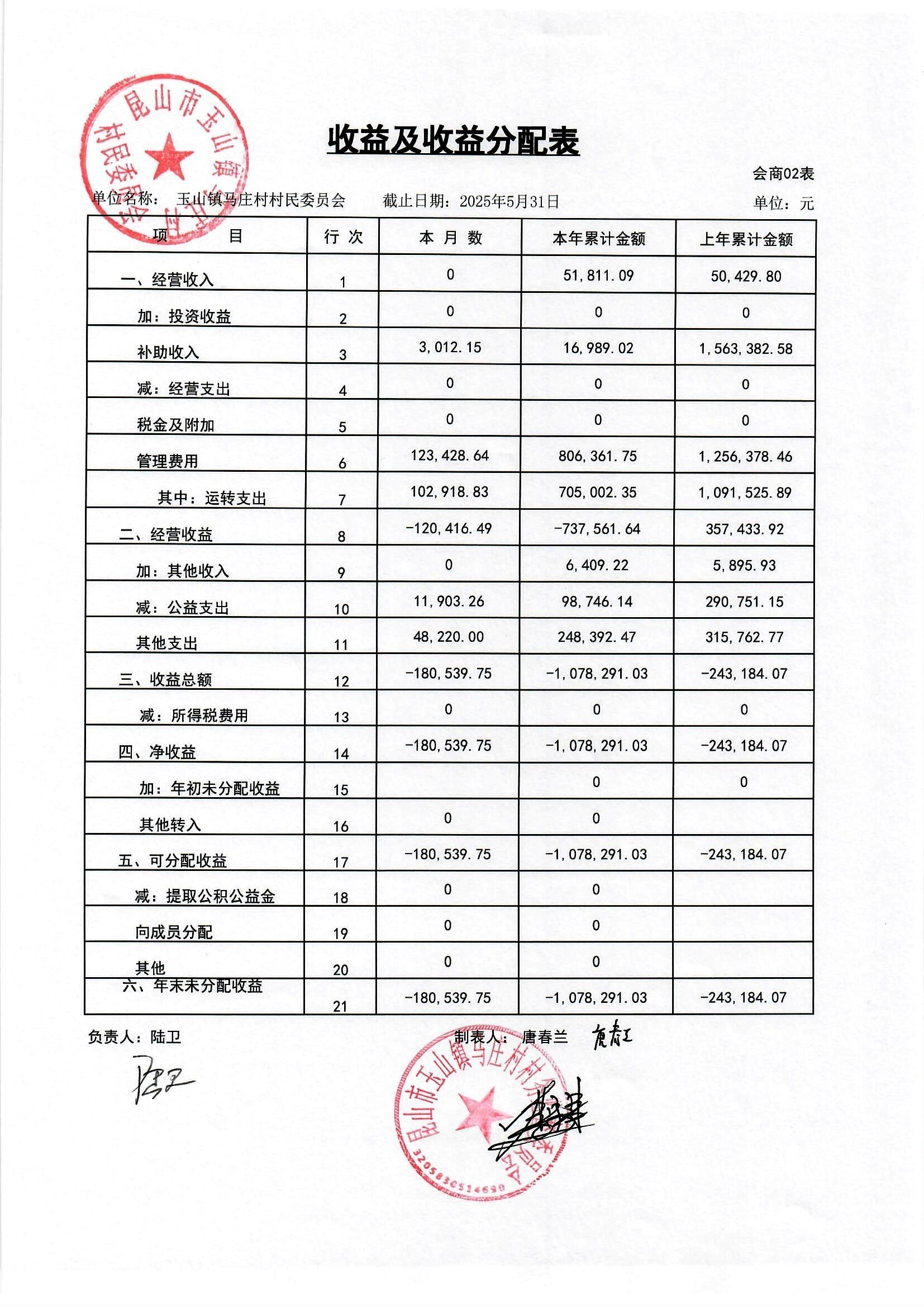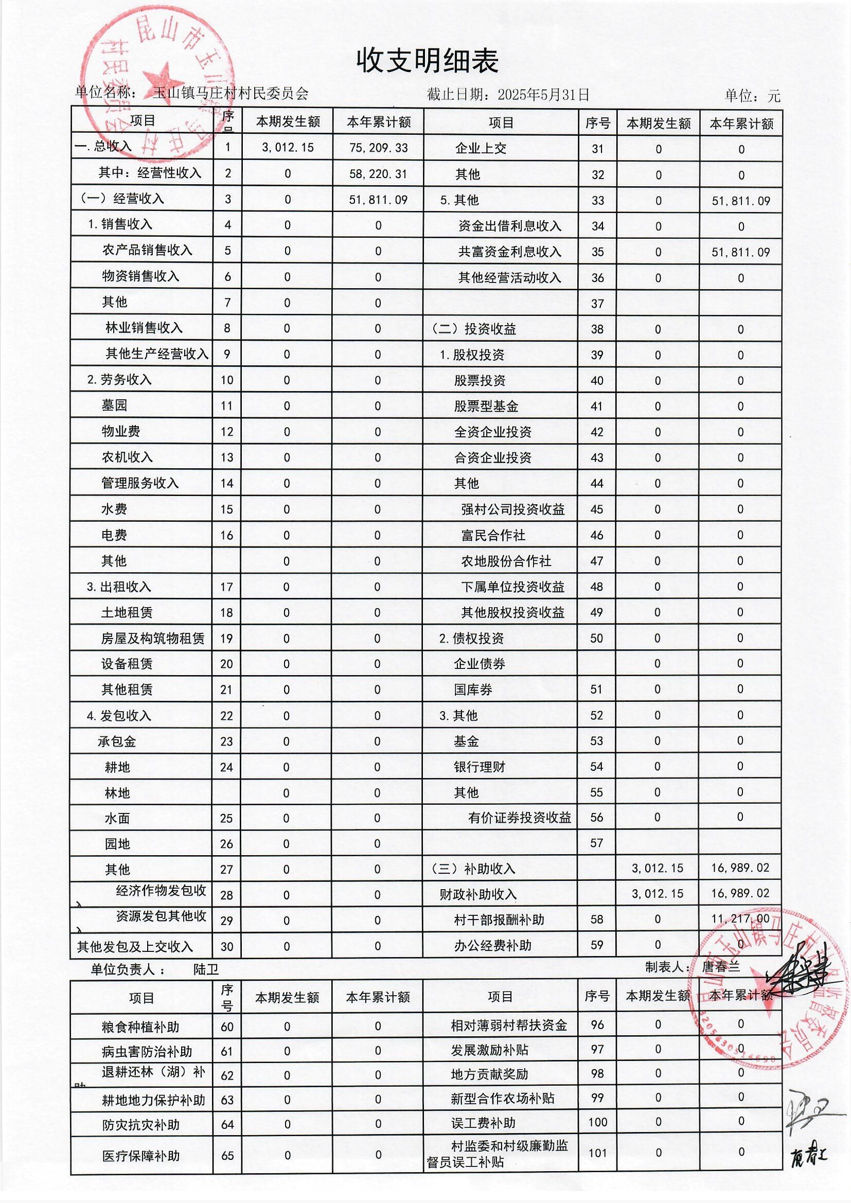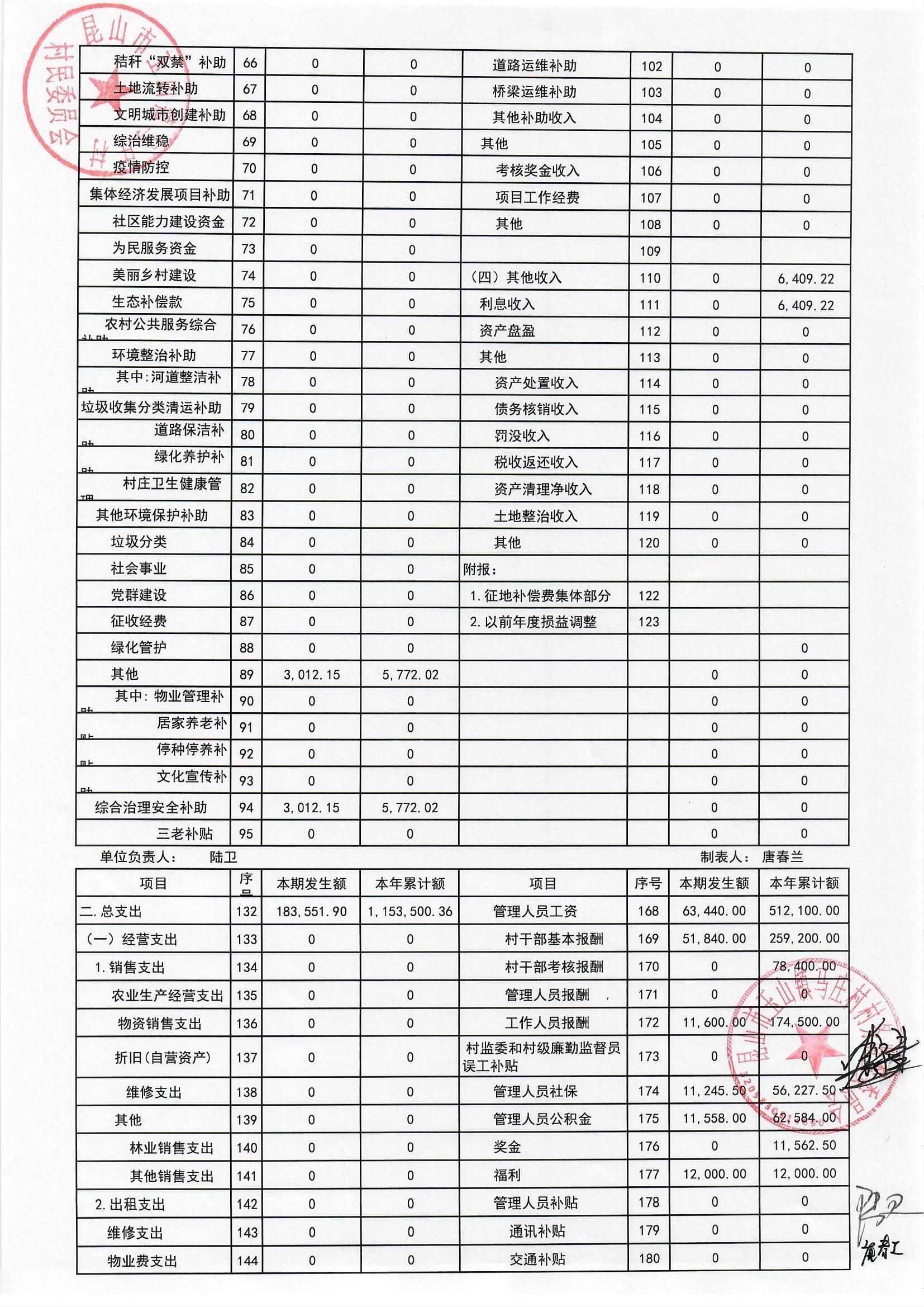 高新区马庄村村民委员会2025年6月财务公开