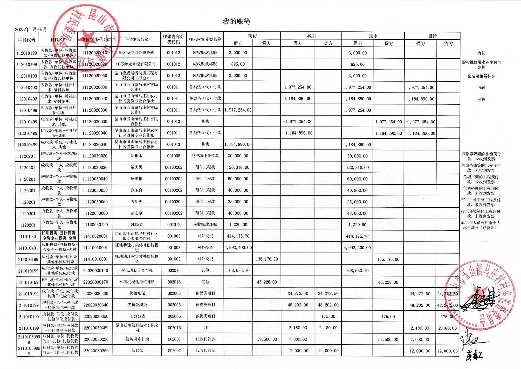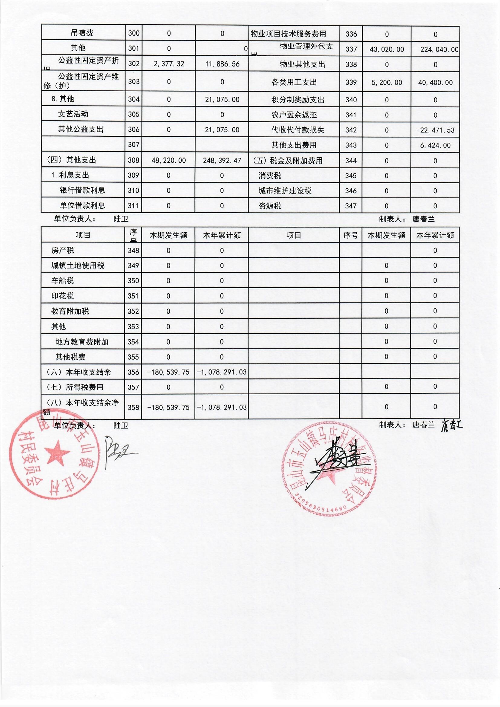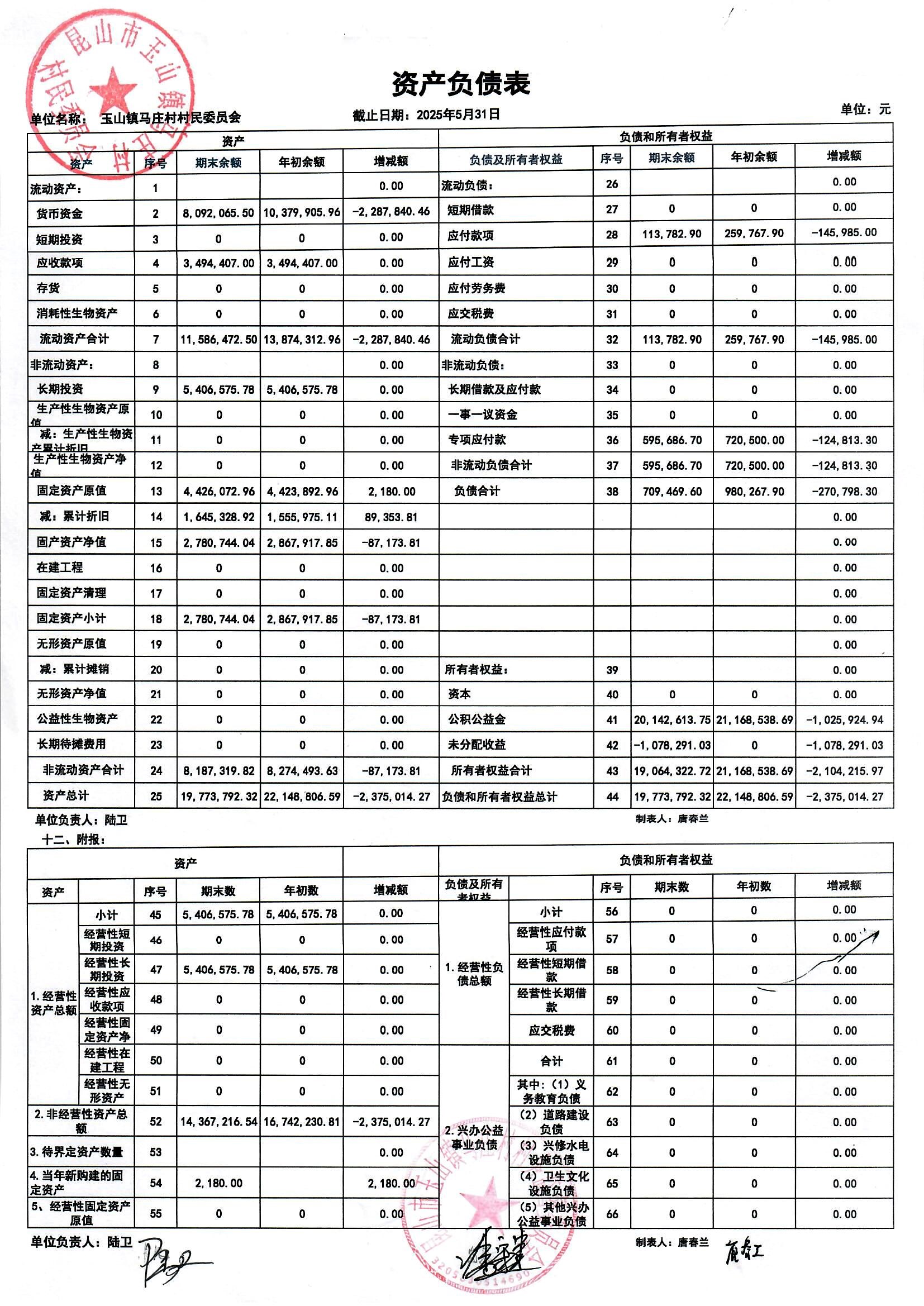 高新区马庄村村民委员会2025年6月财务公开