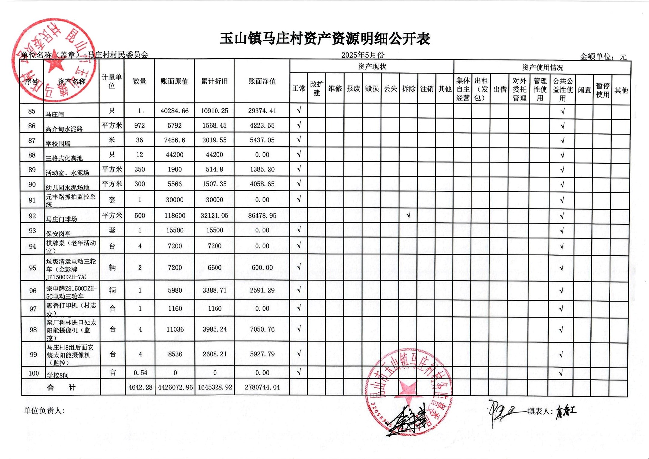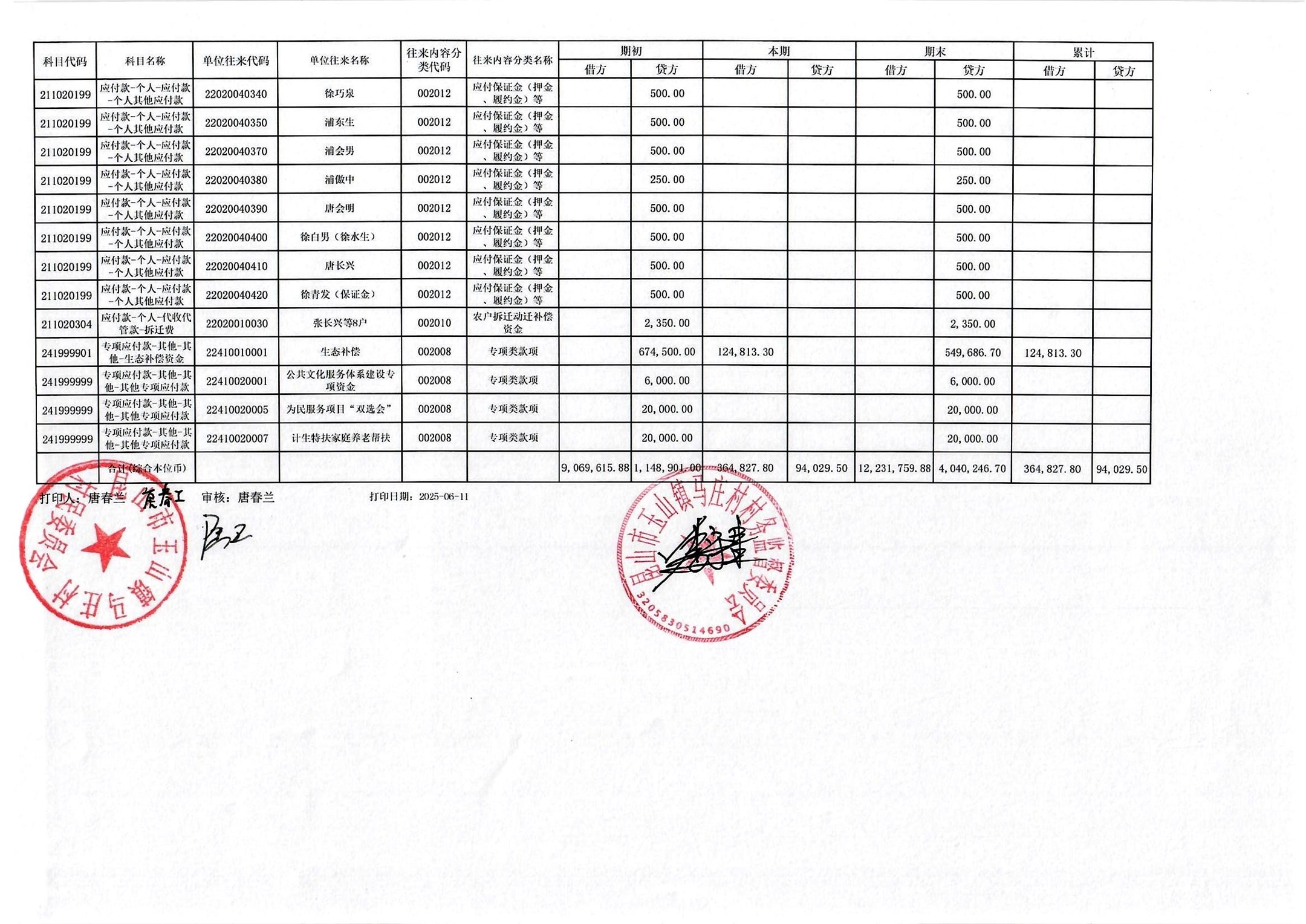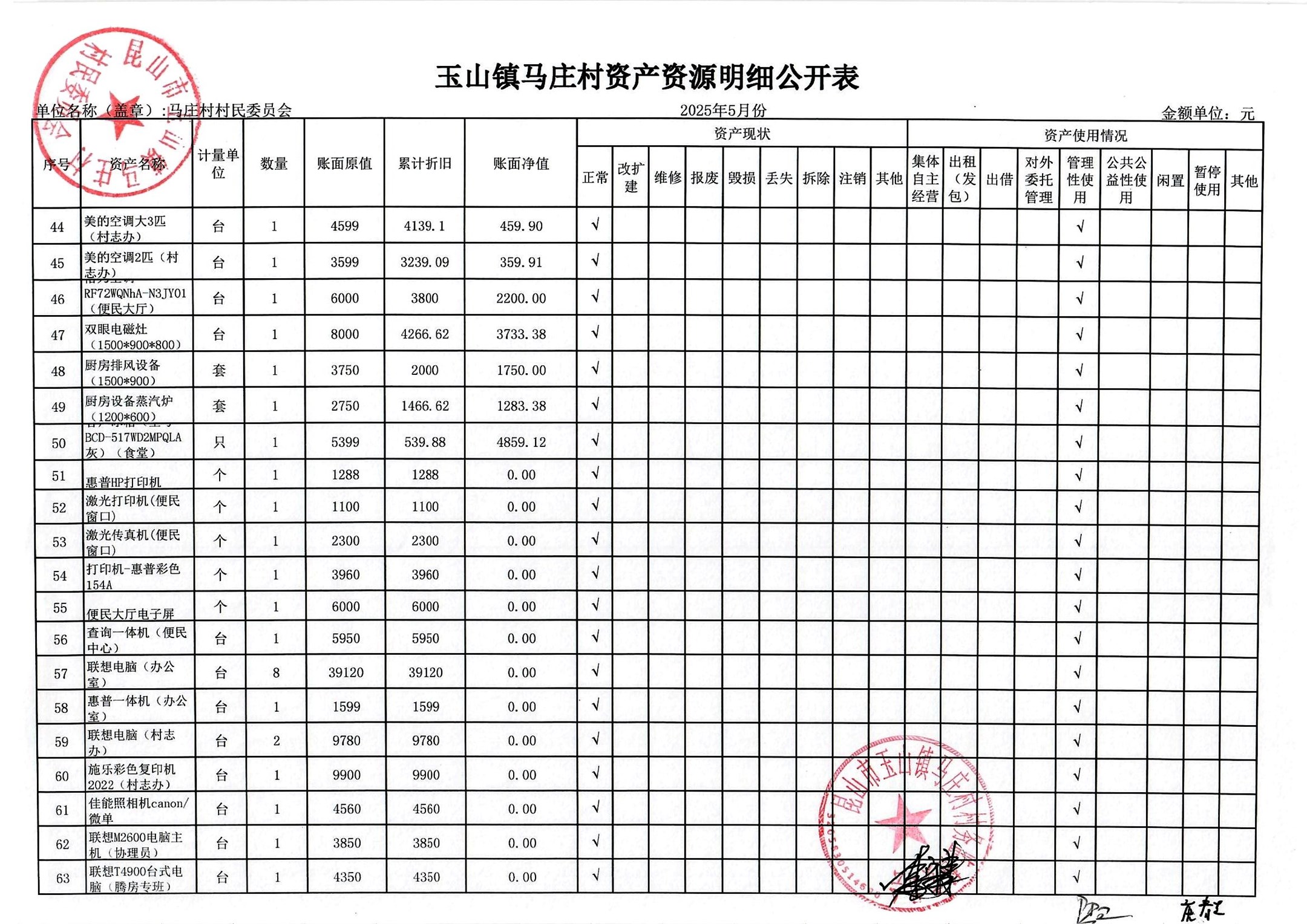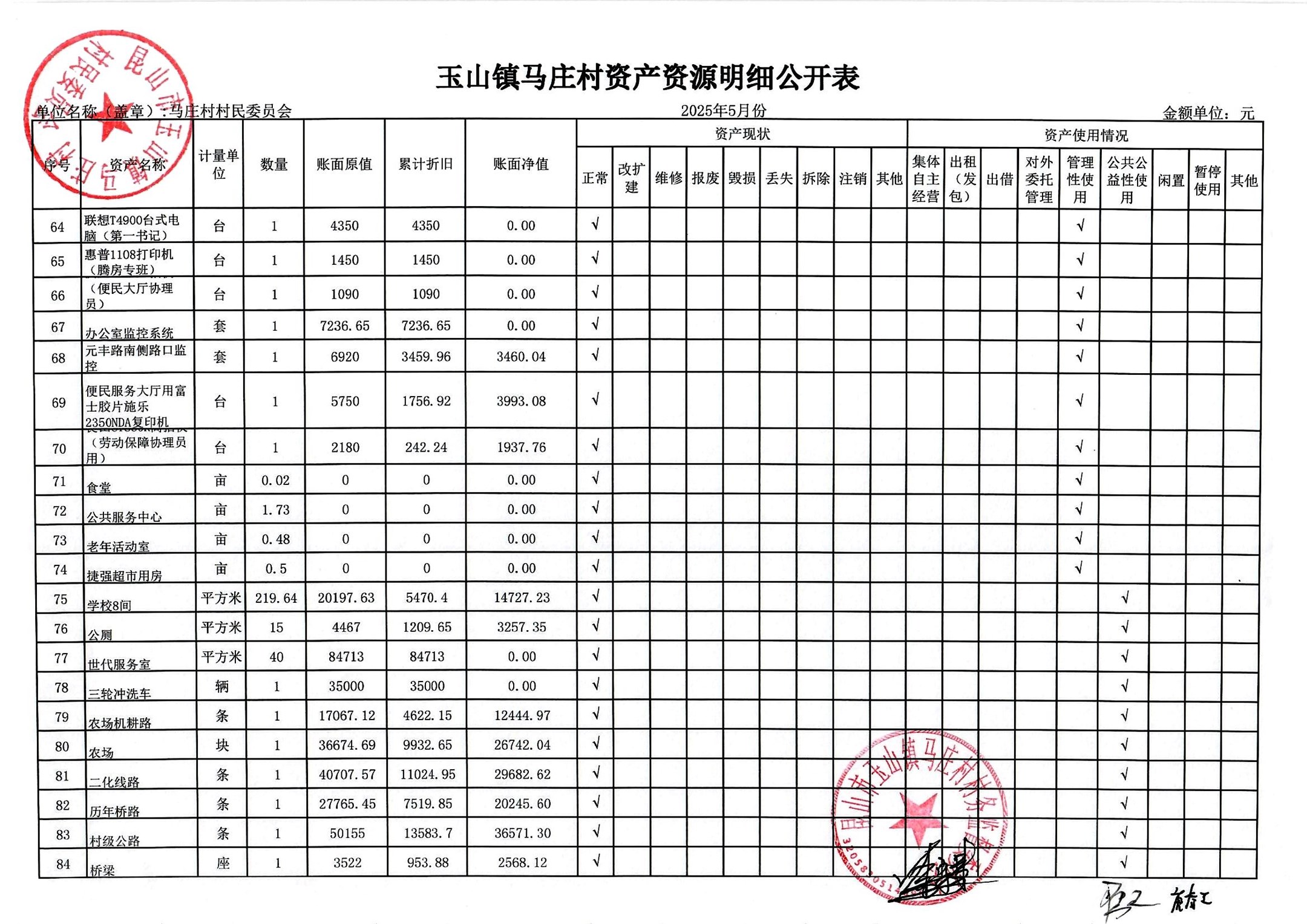 高新区马庄村村民委员会2025年6月财务公开