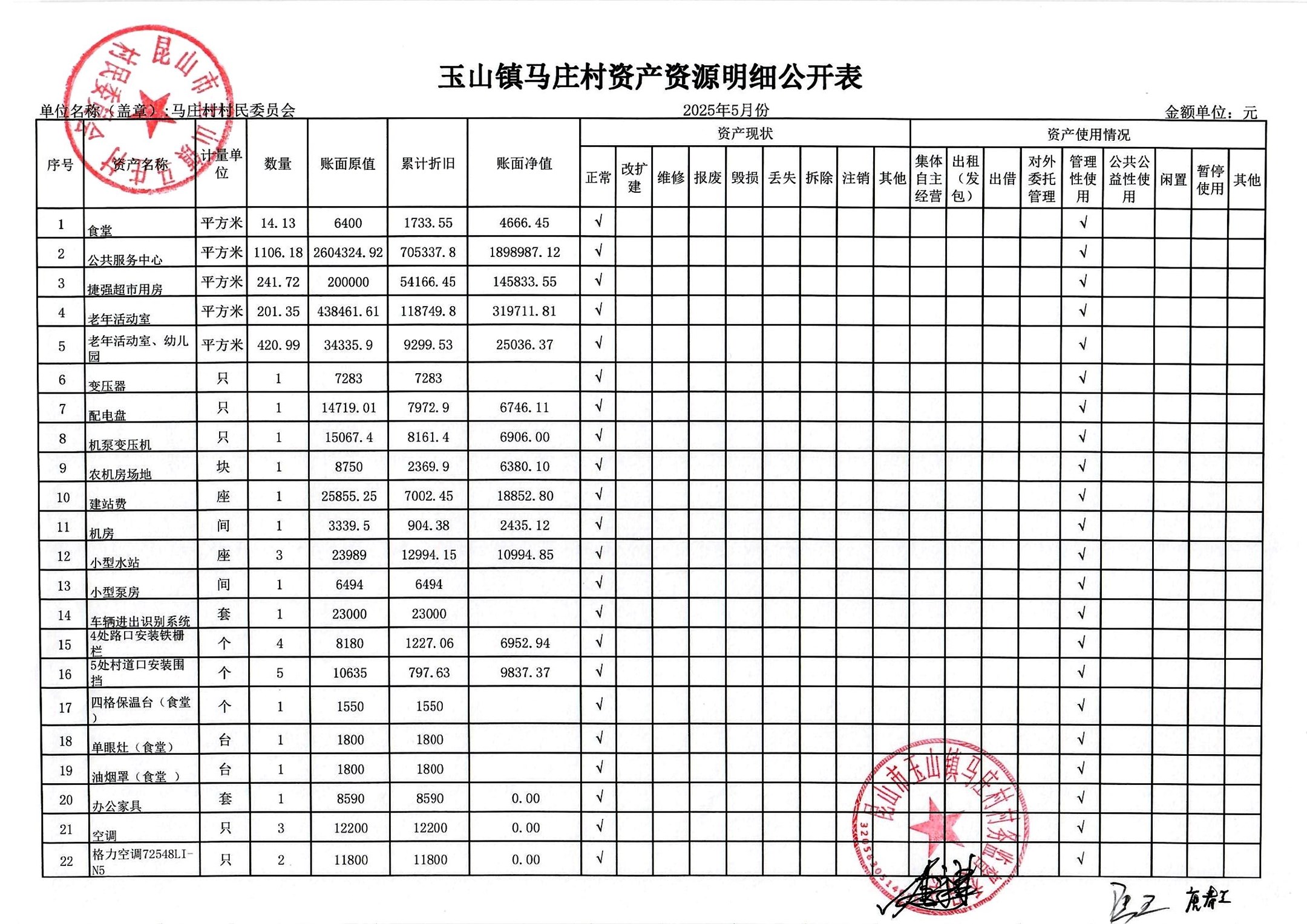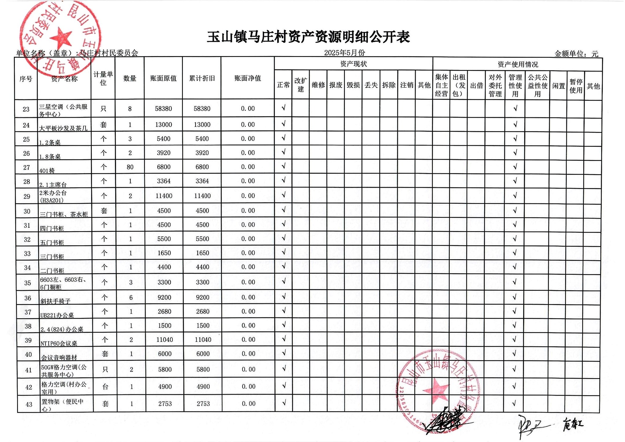 村盖章事项名录