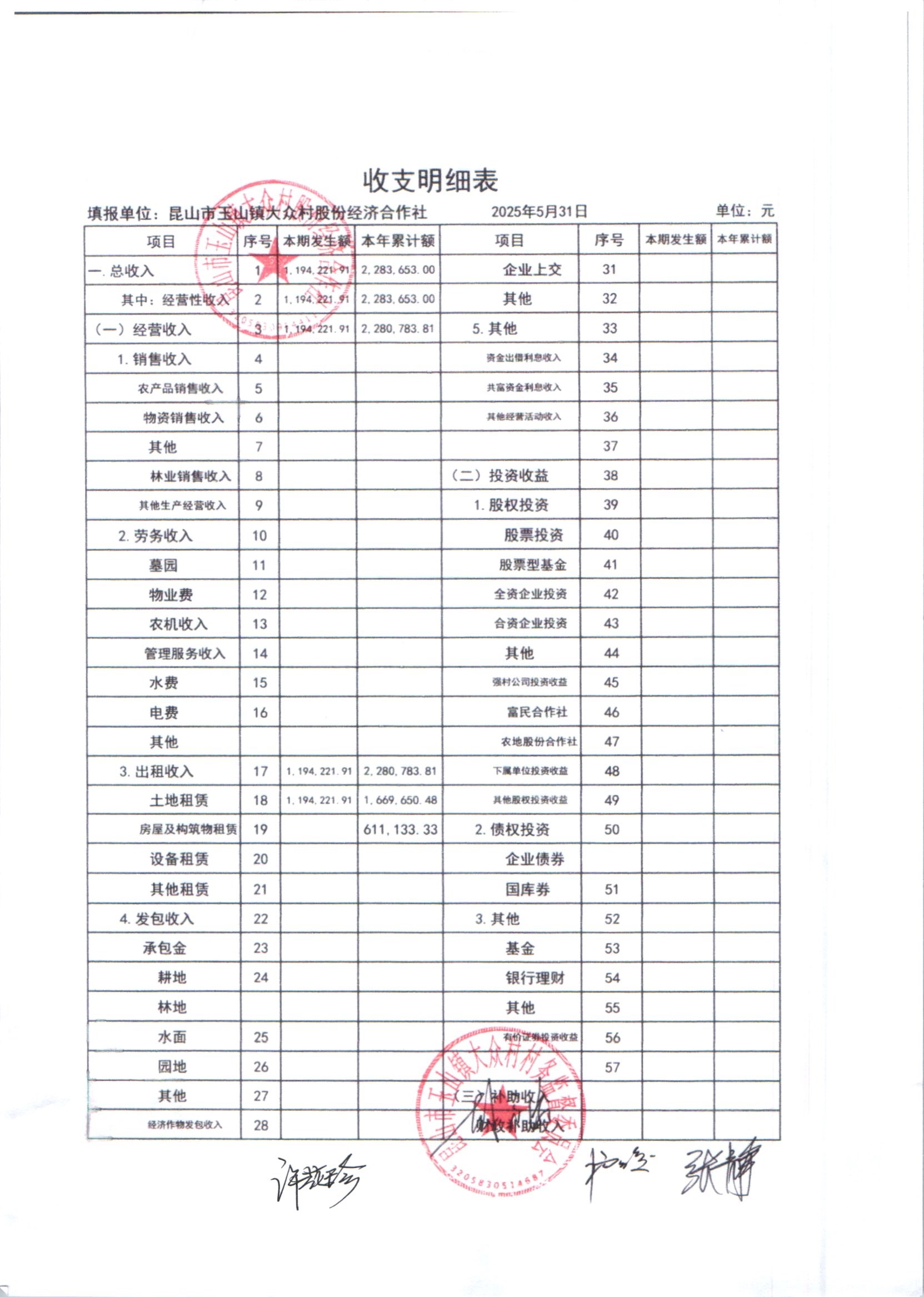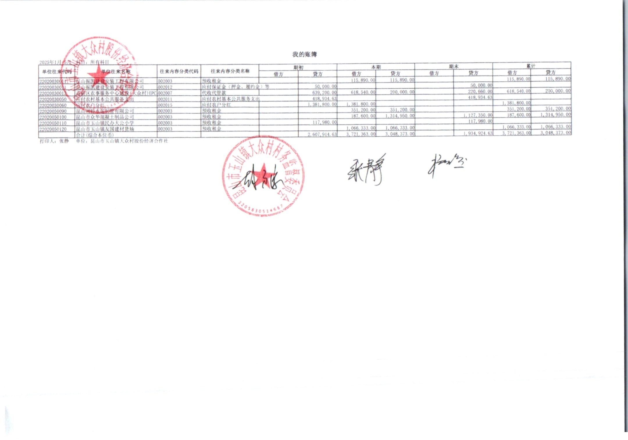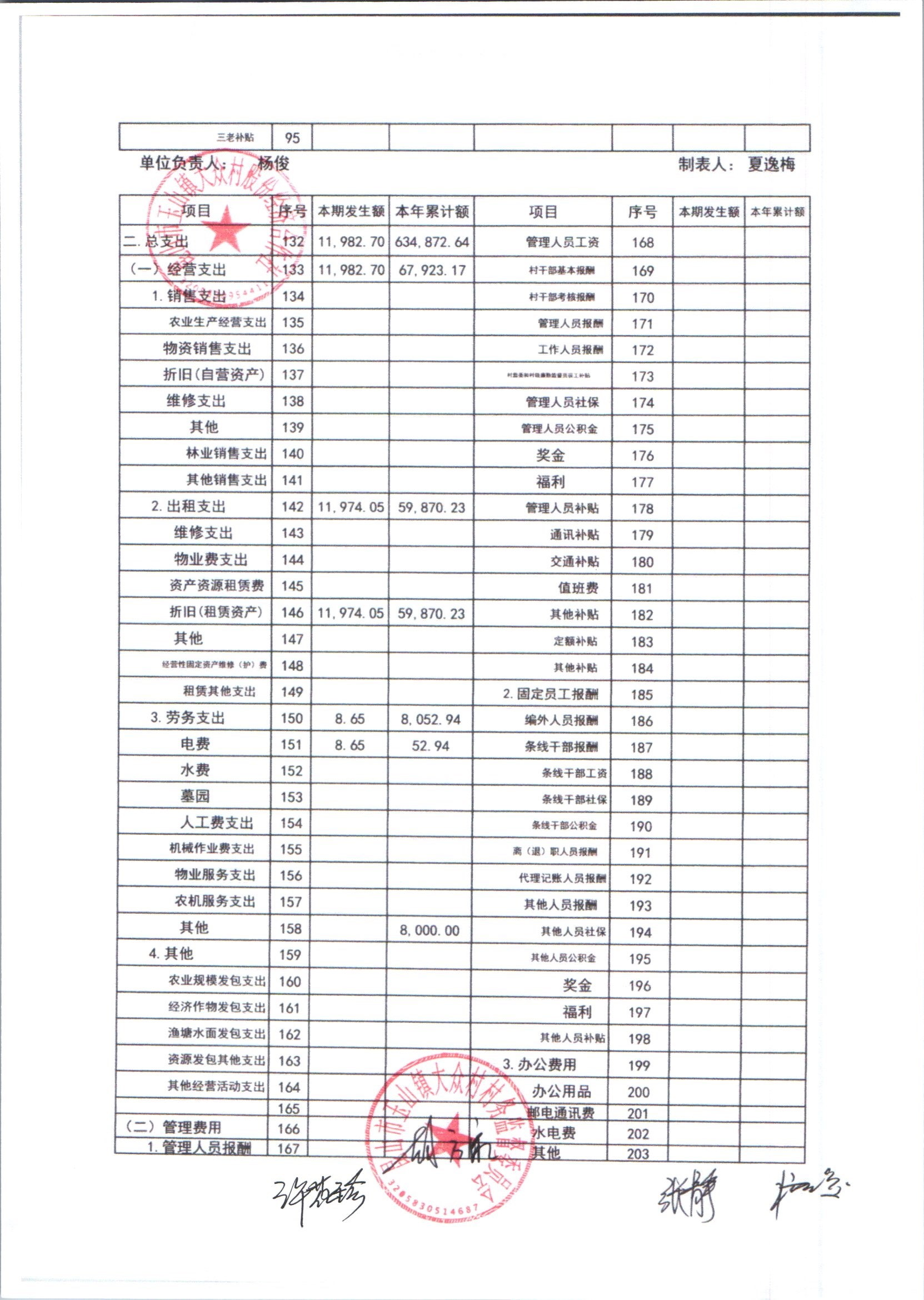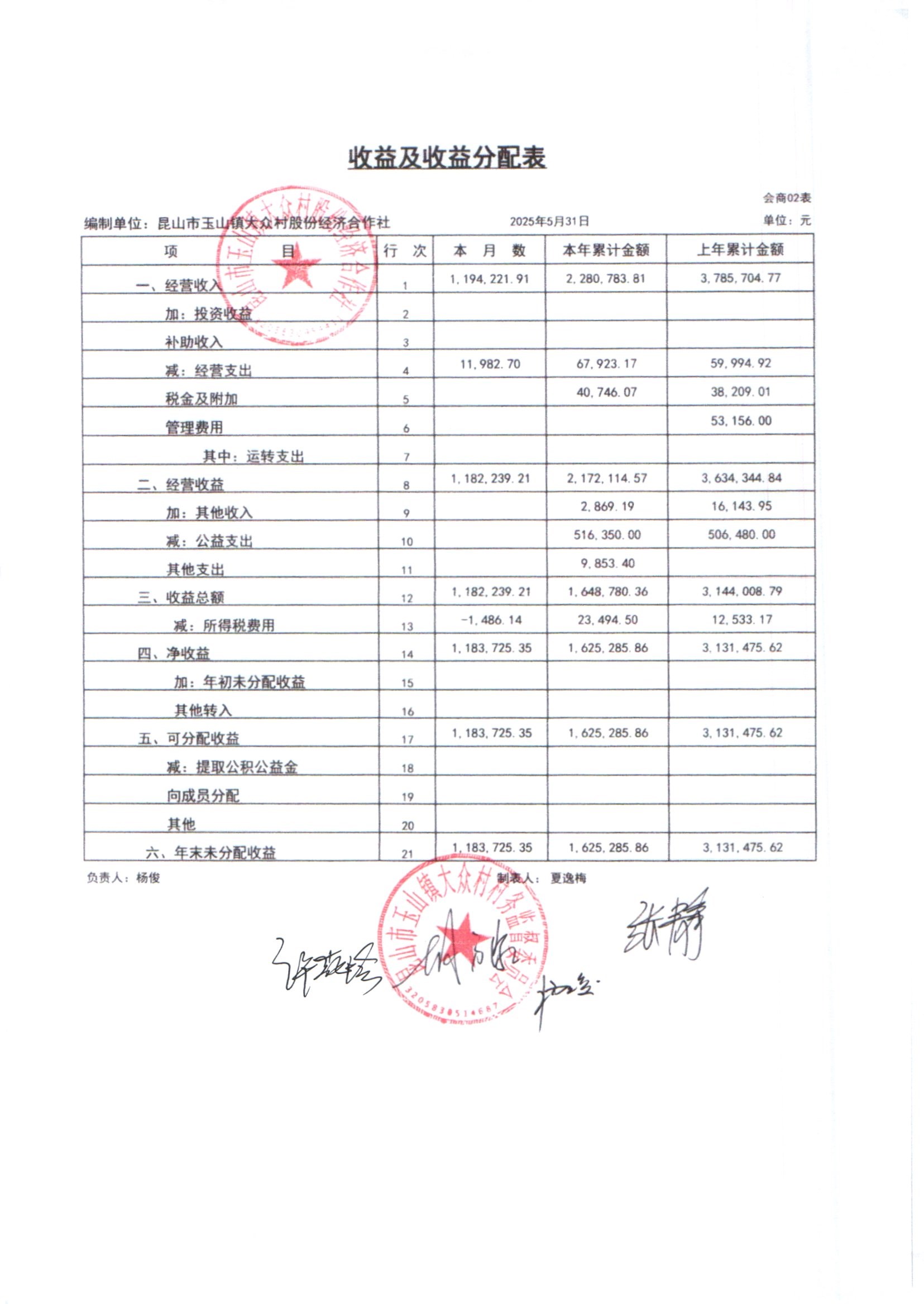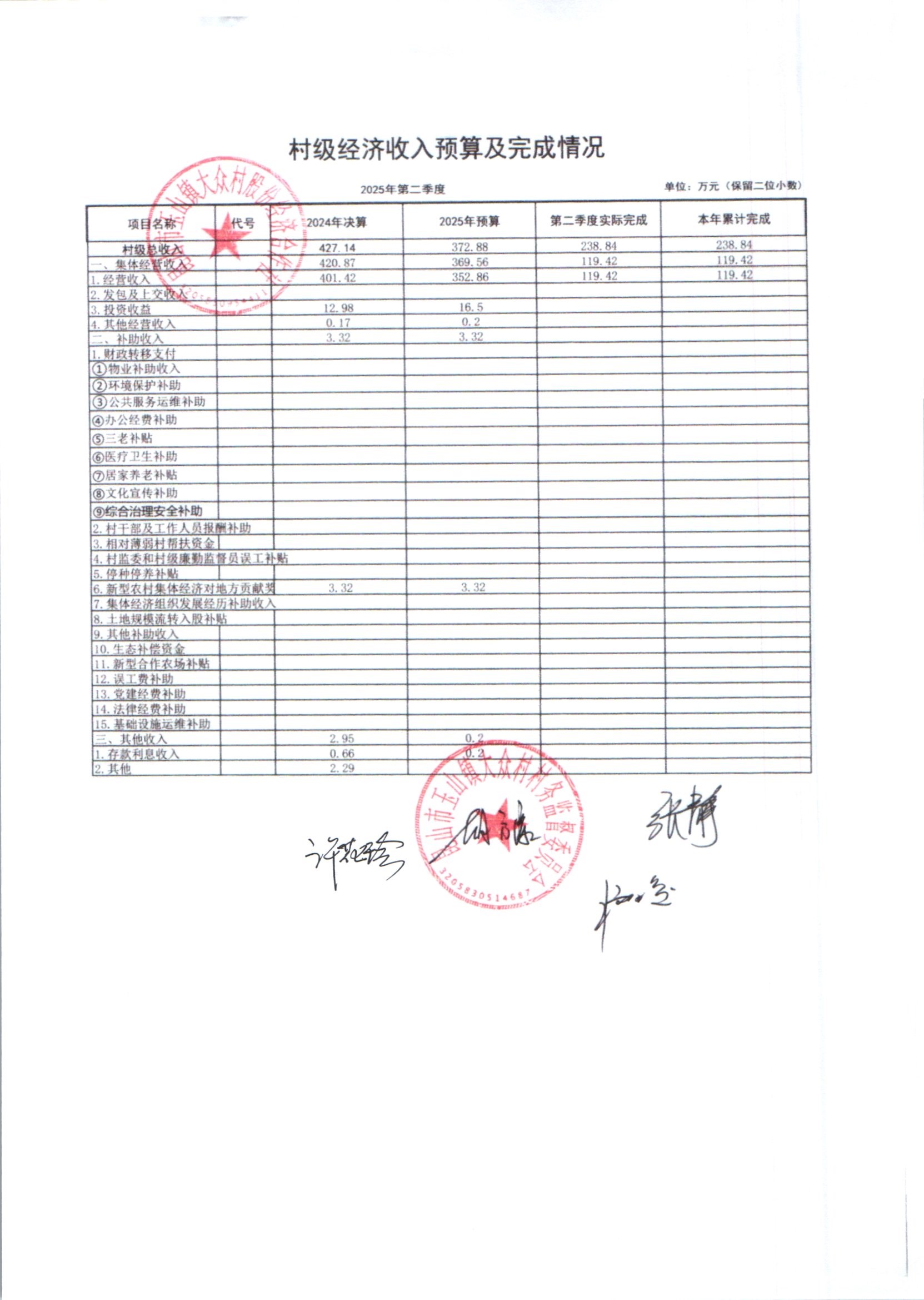 大众村2025年6月份股份经济合作社财务公开
