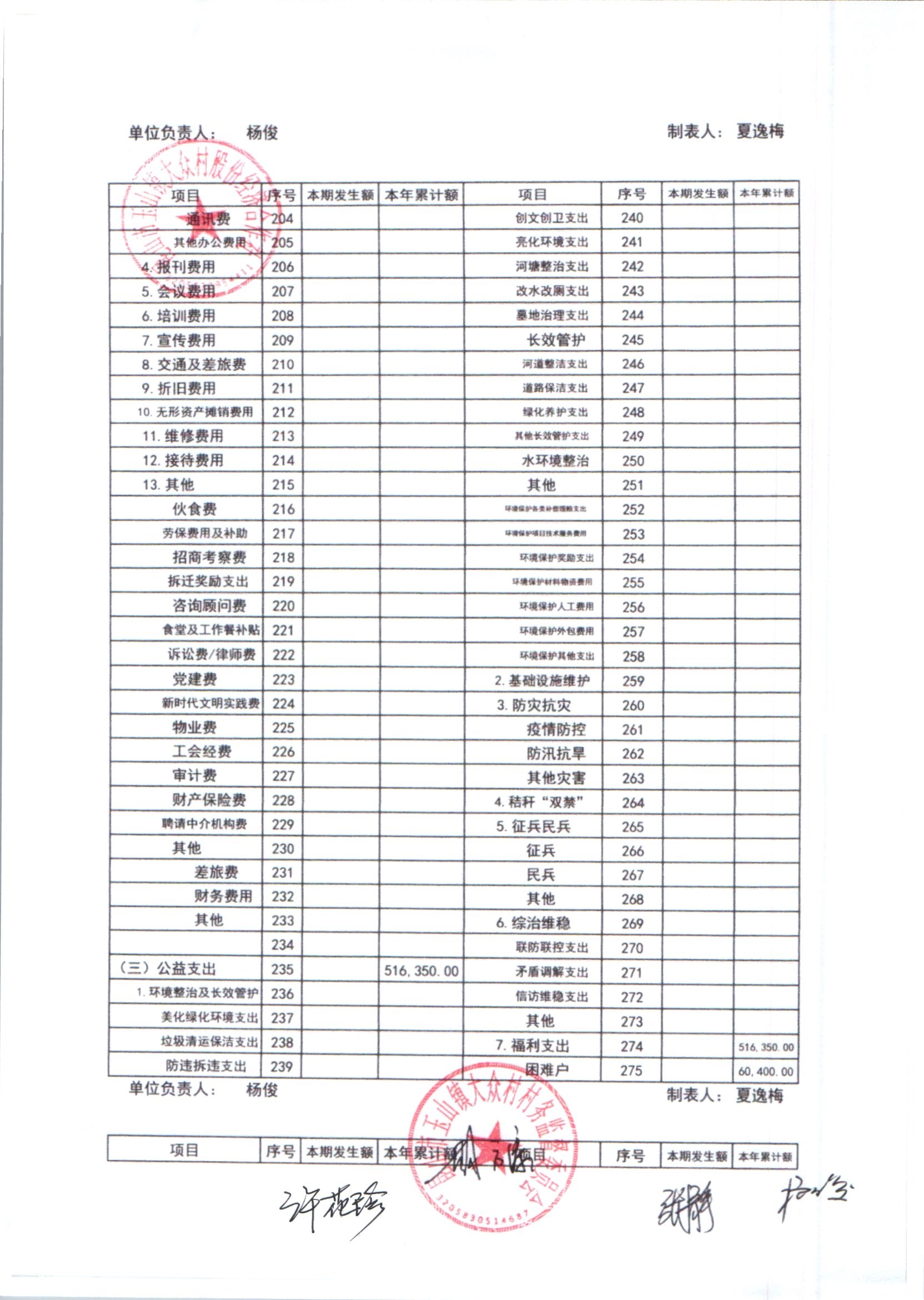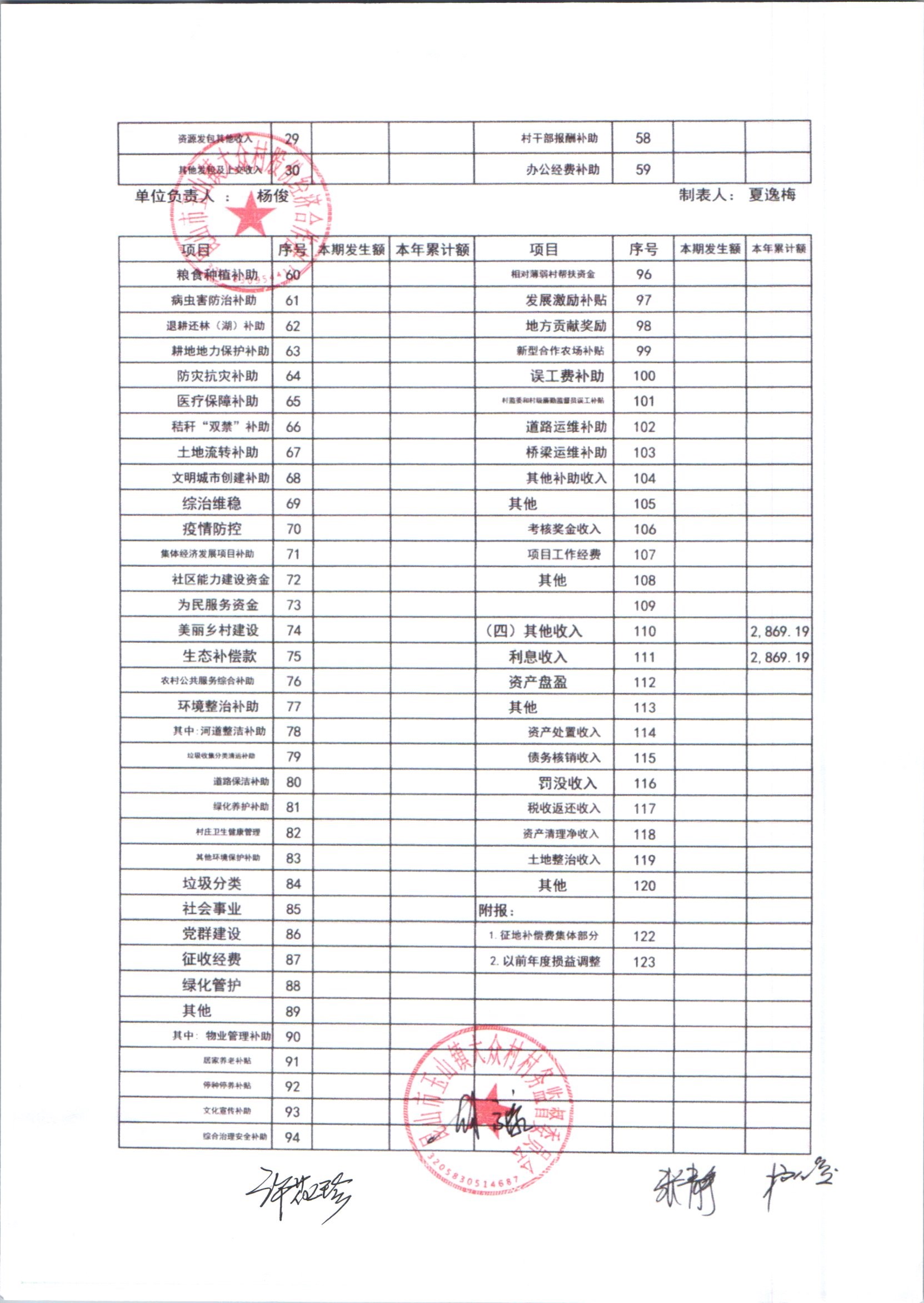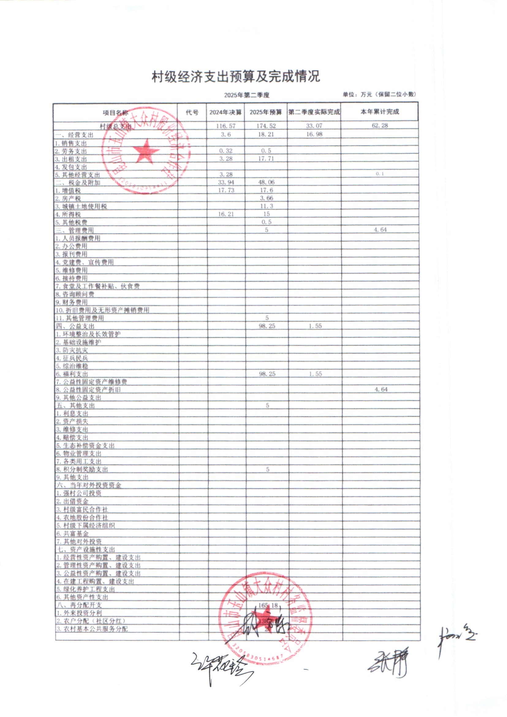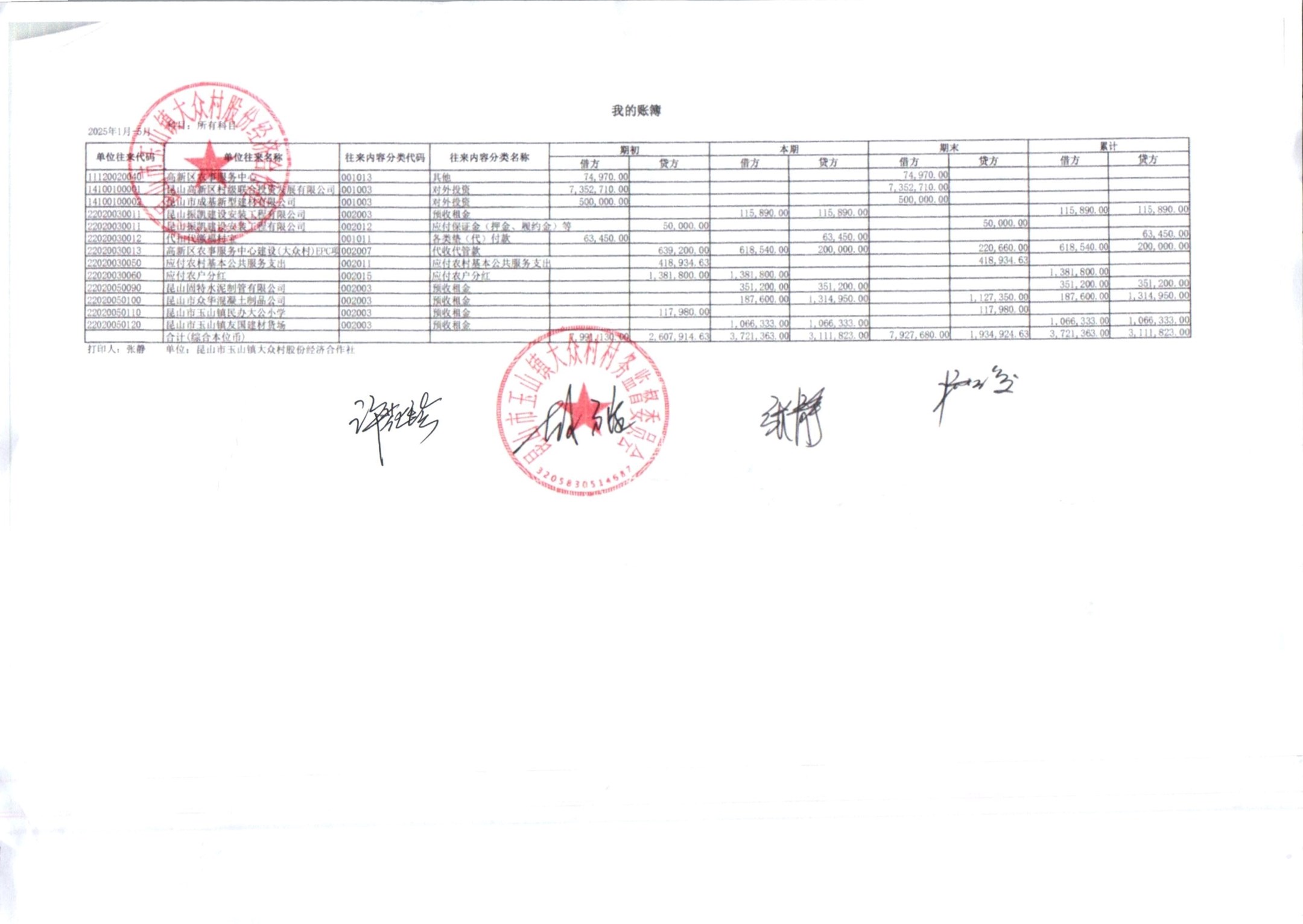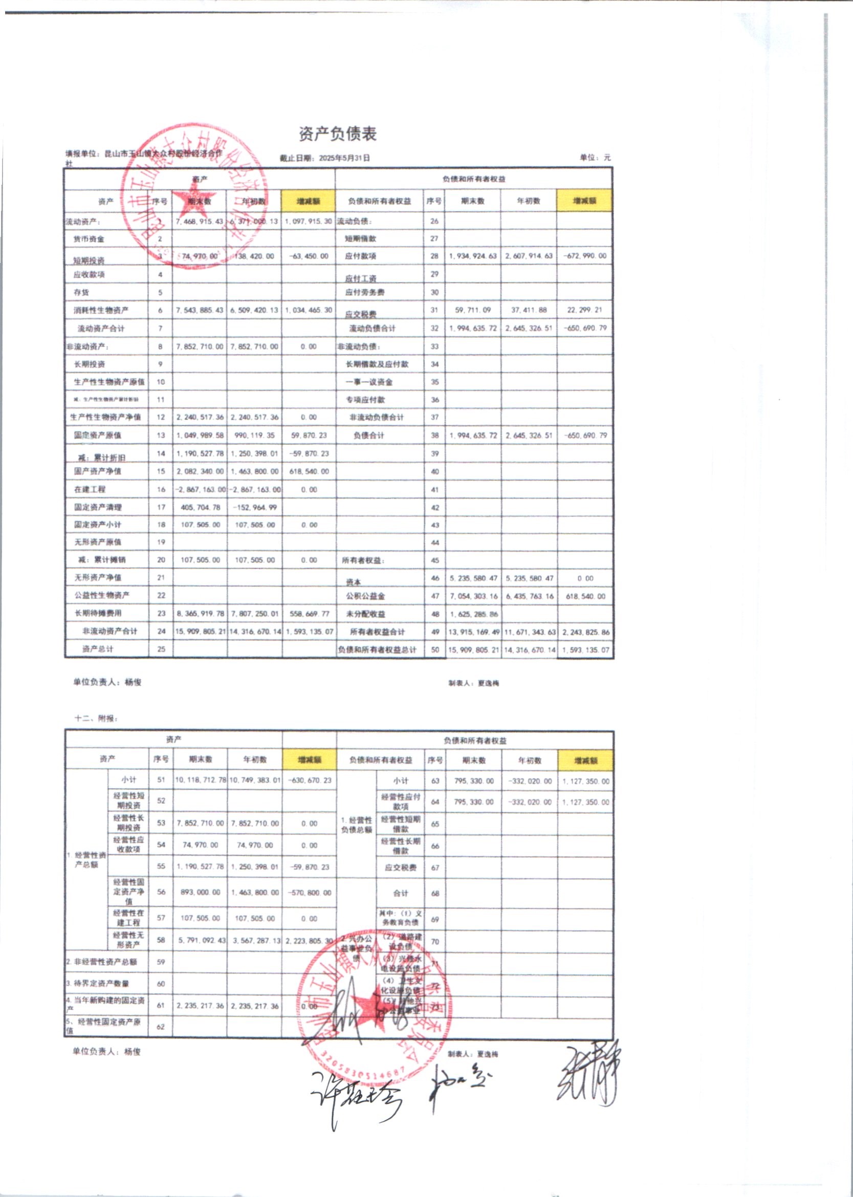 大众村2025年6月份股份经济合作社财务公开