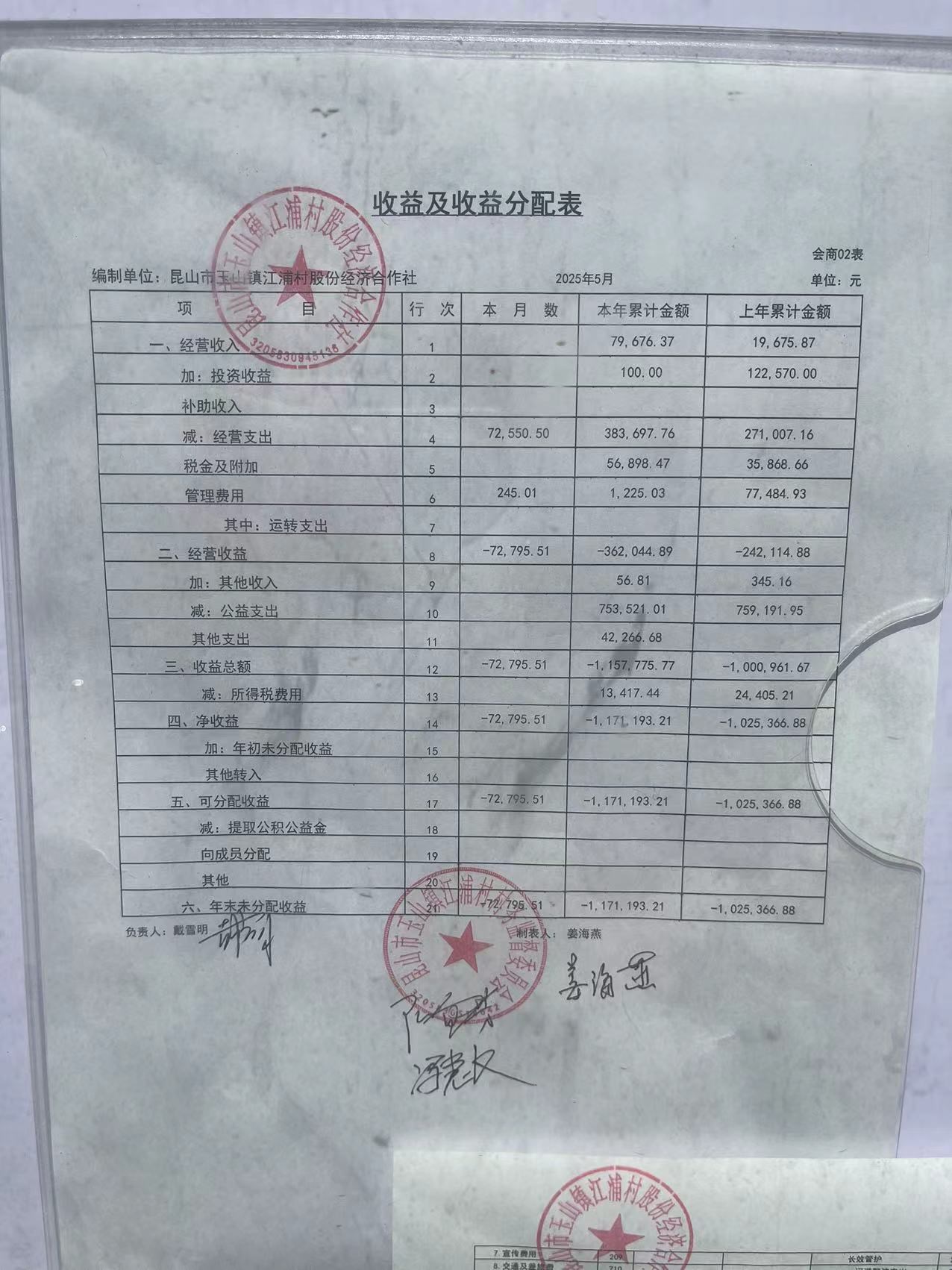 2025年江浦村股份经济合作社6月份财务公开及公示照片