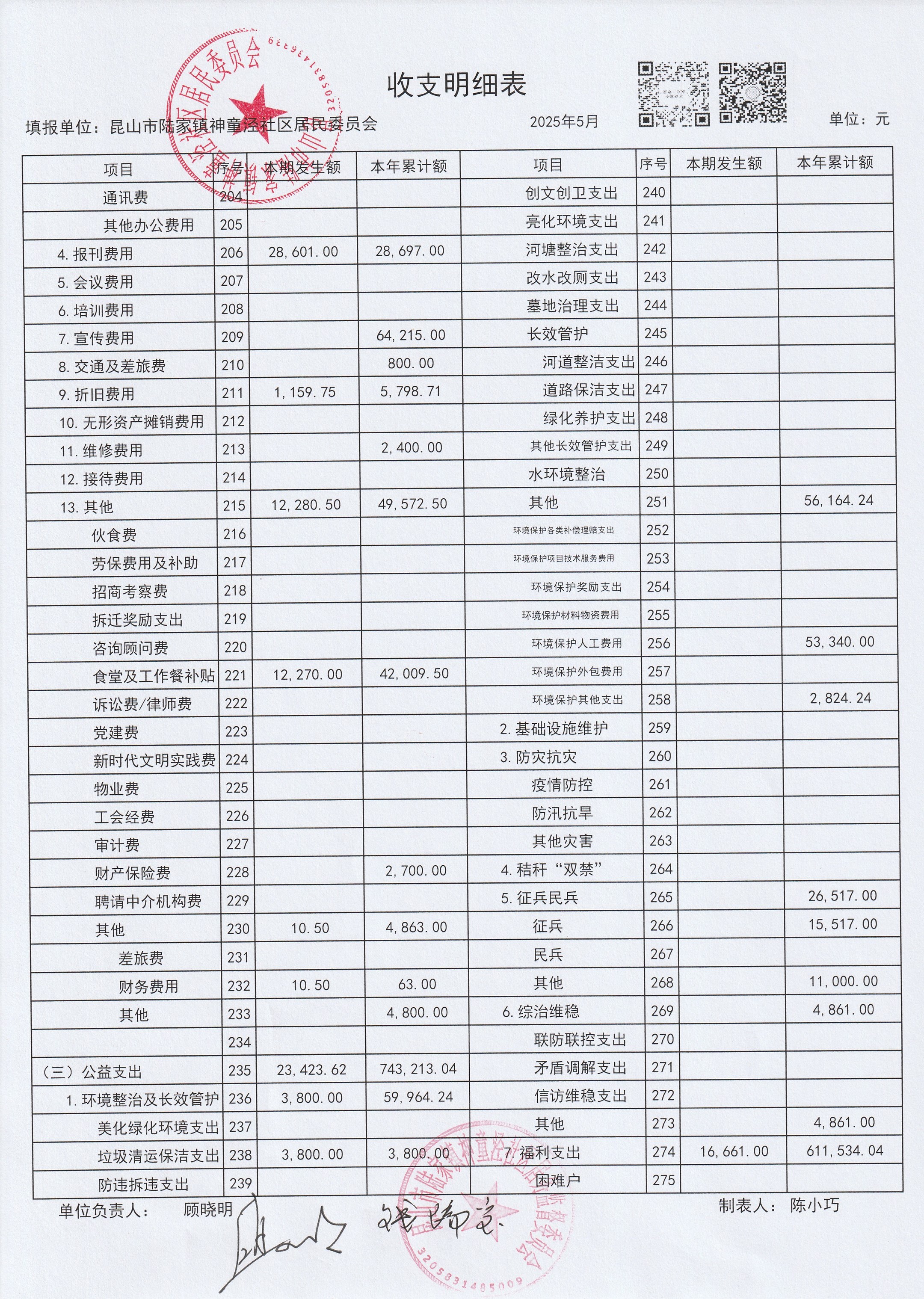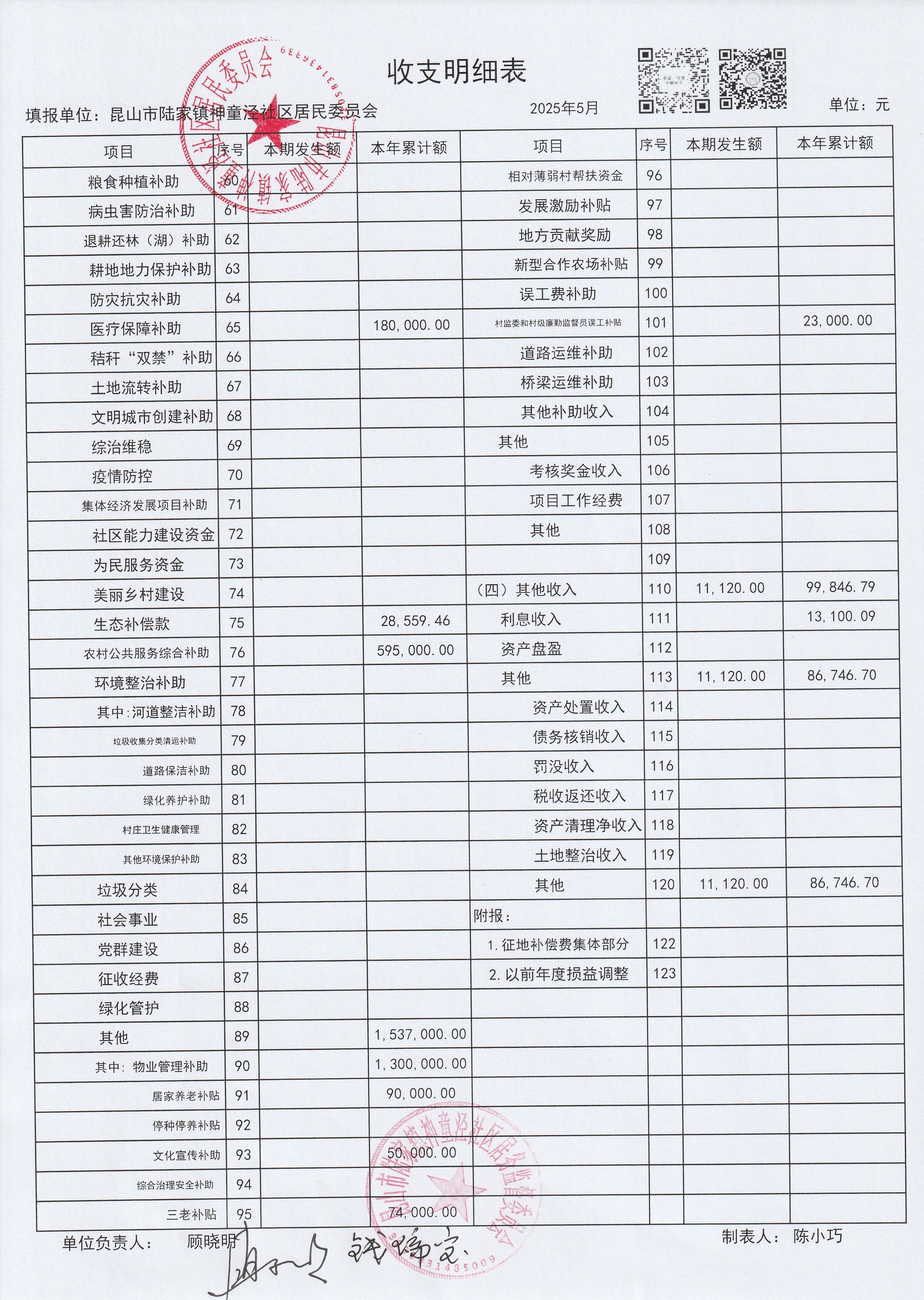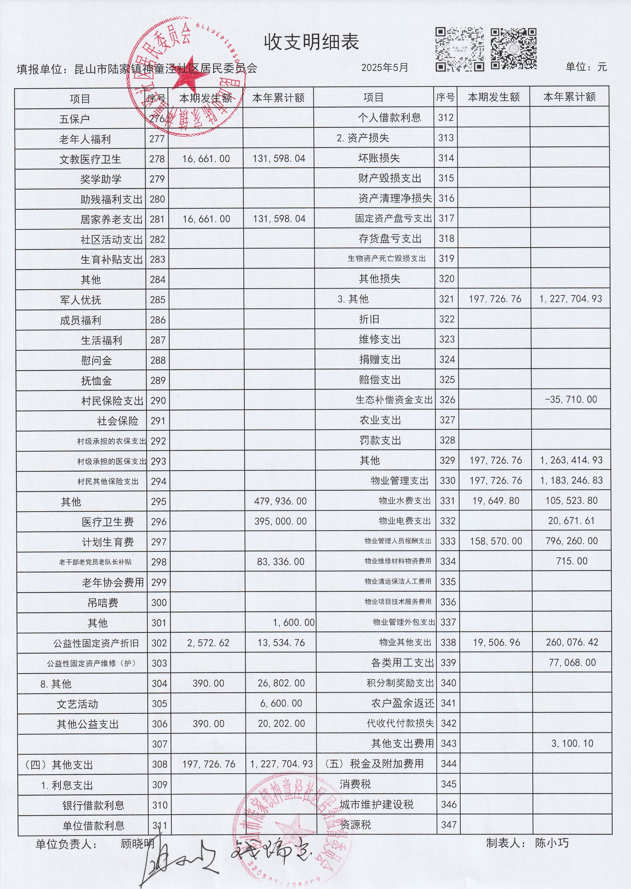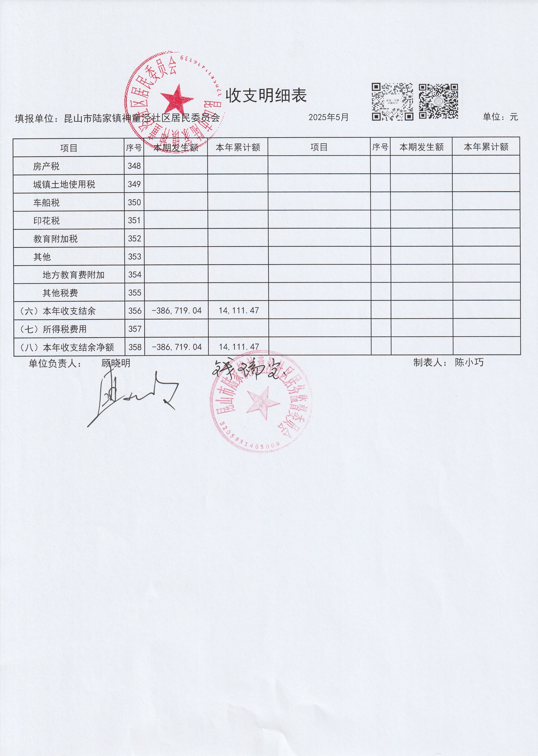 神童泾社区居民委员会财务公开(2025年5月)