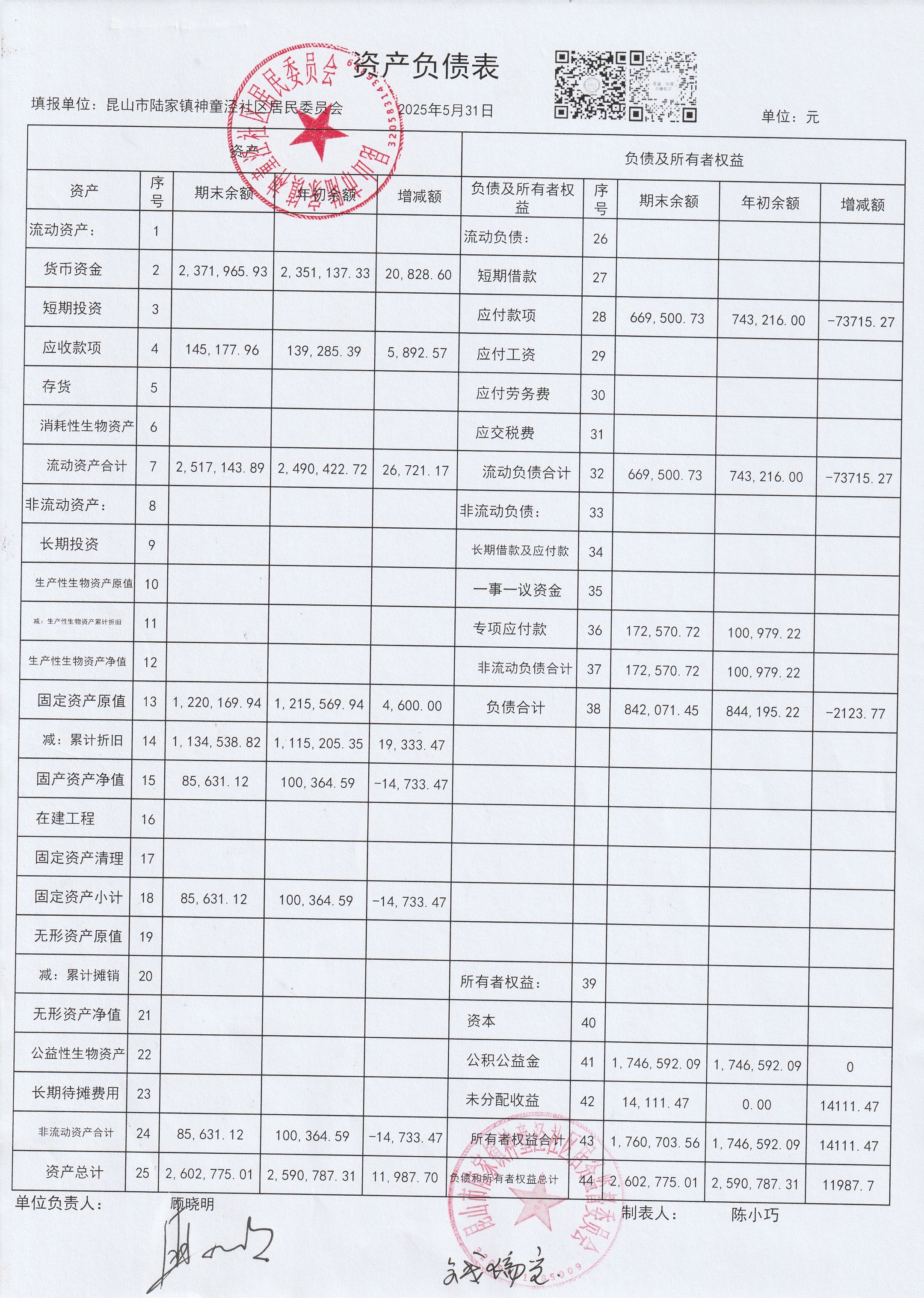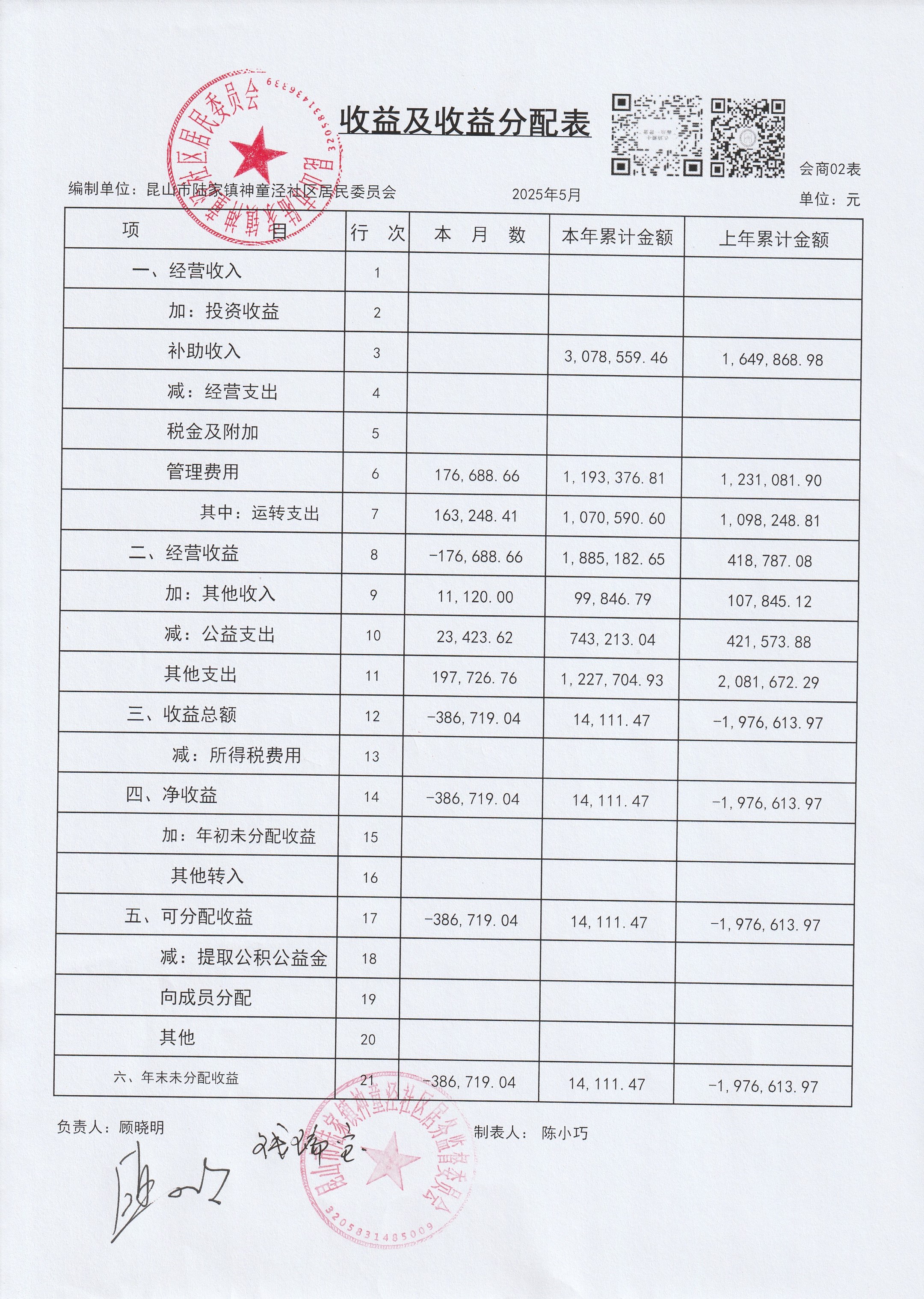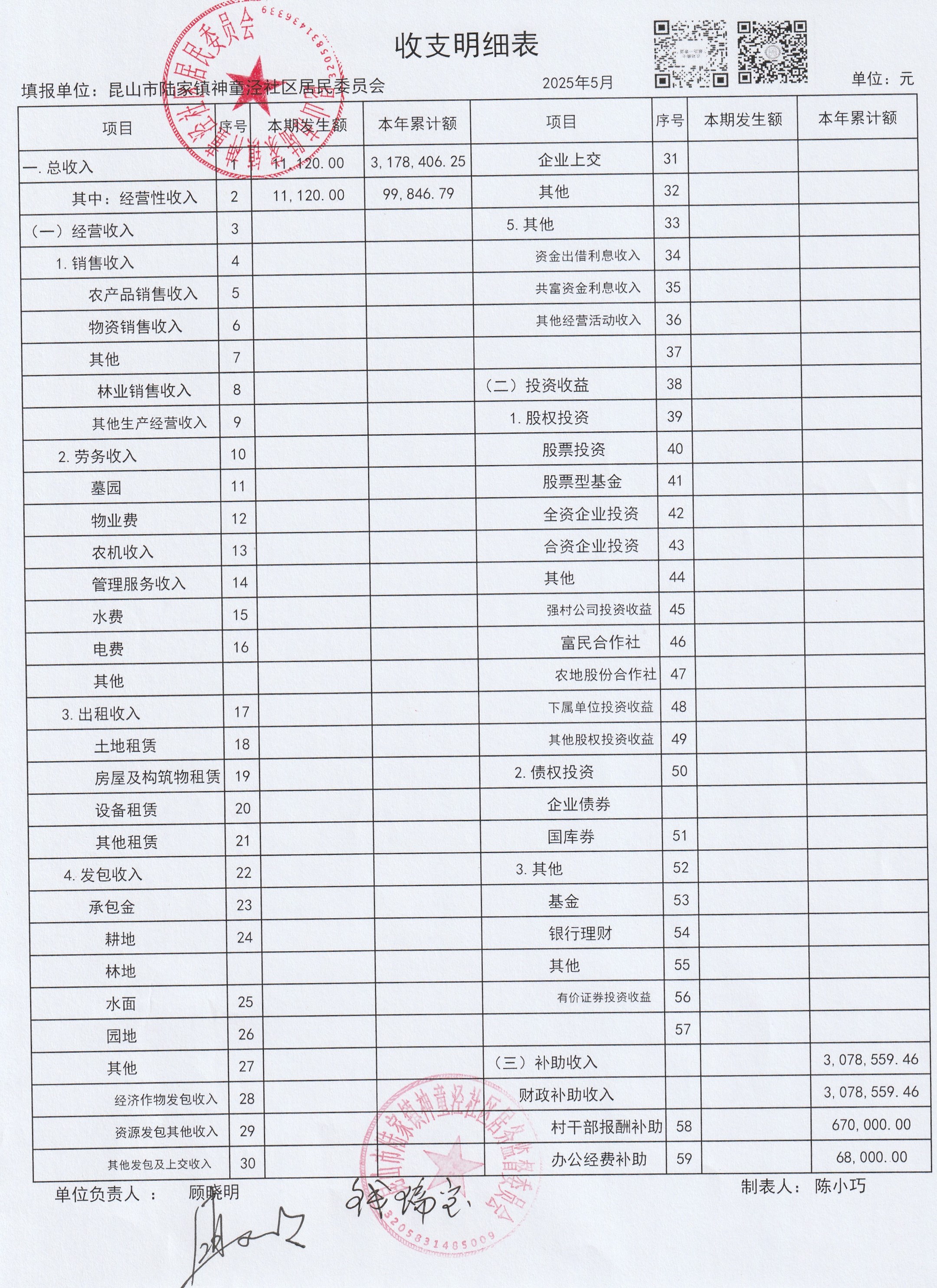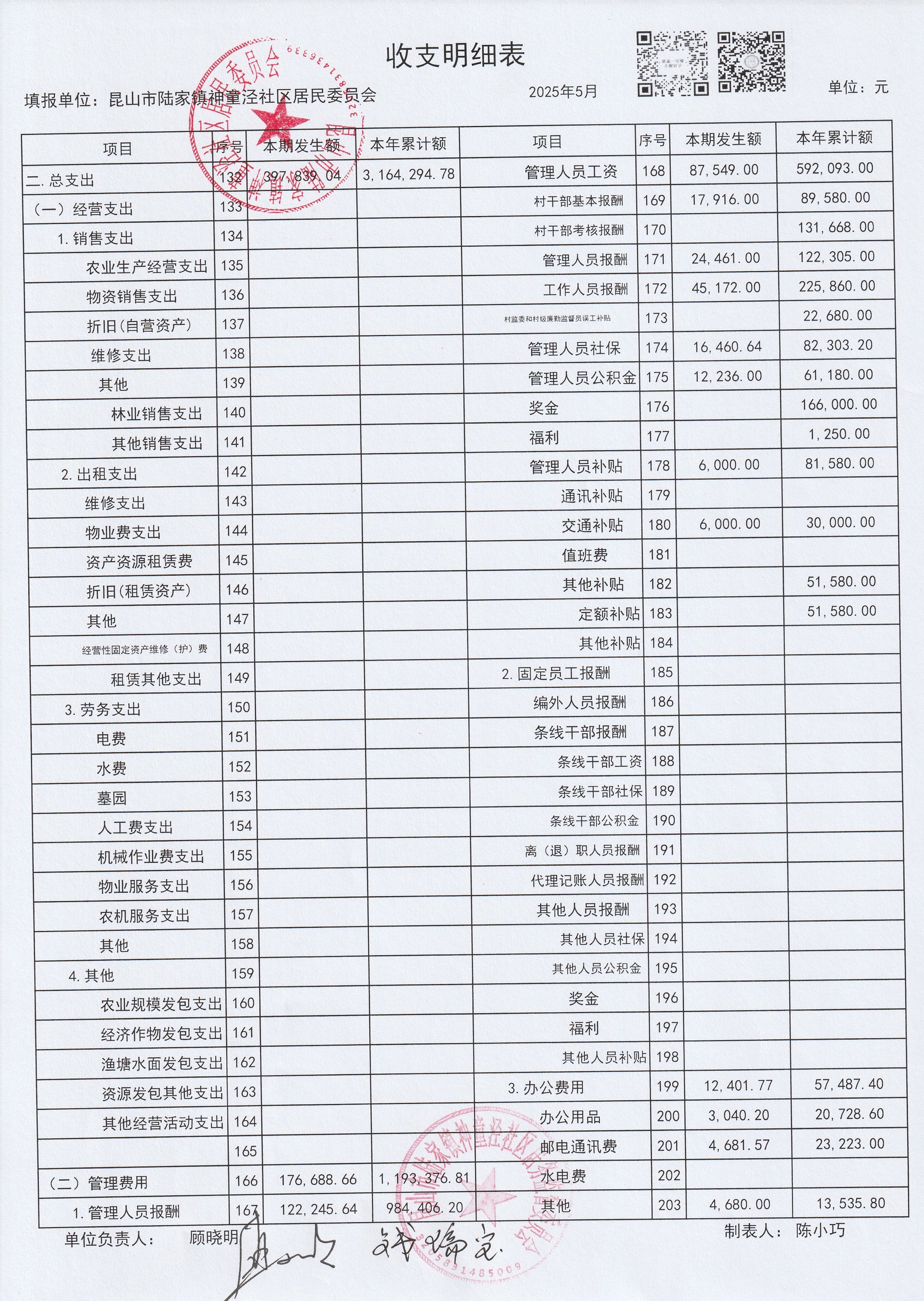 神童泾社区居民委员会财务公开(2025年5月)