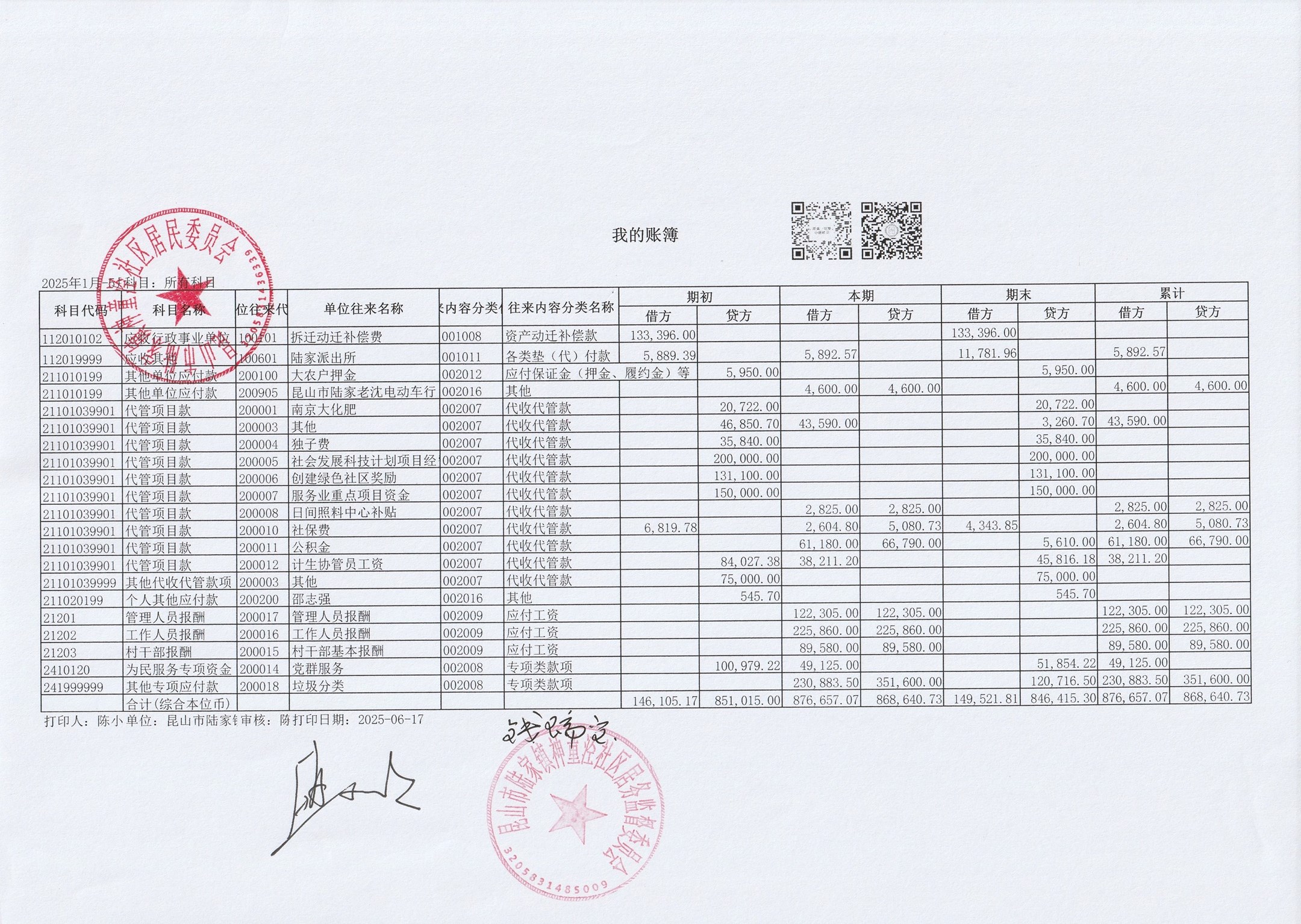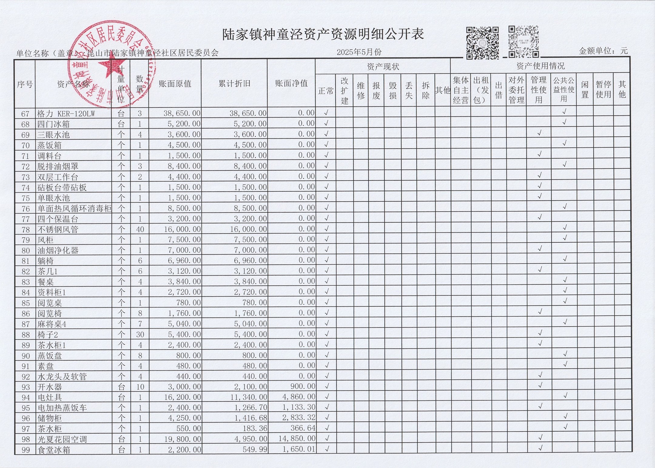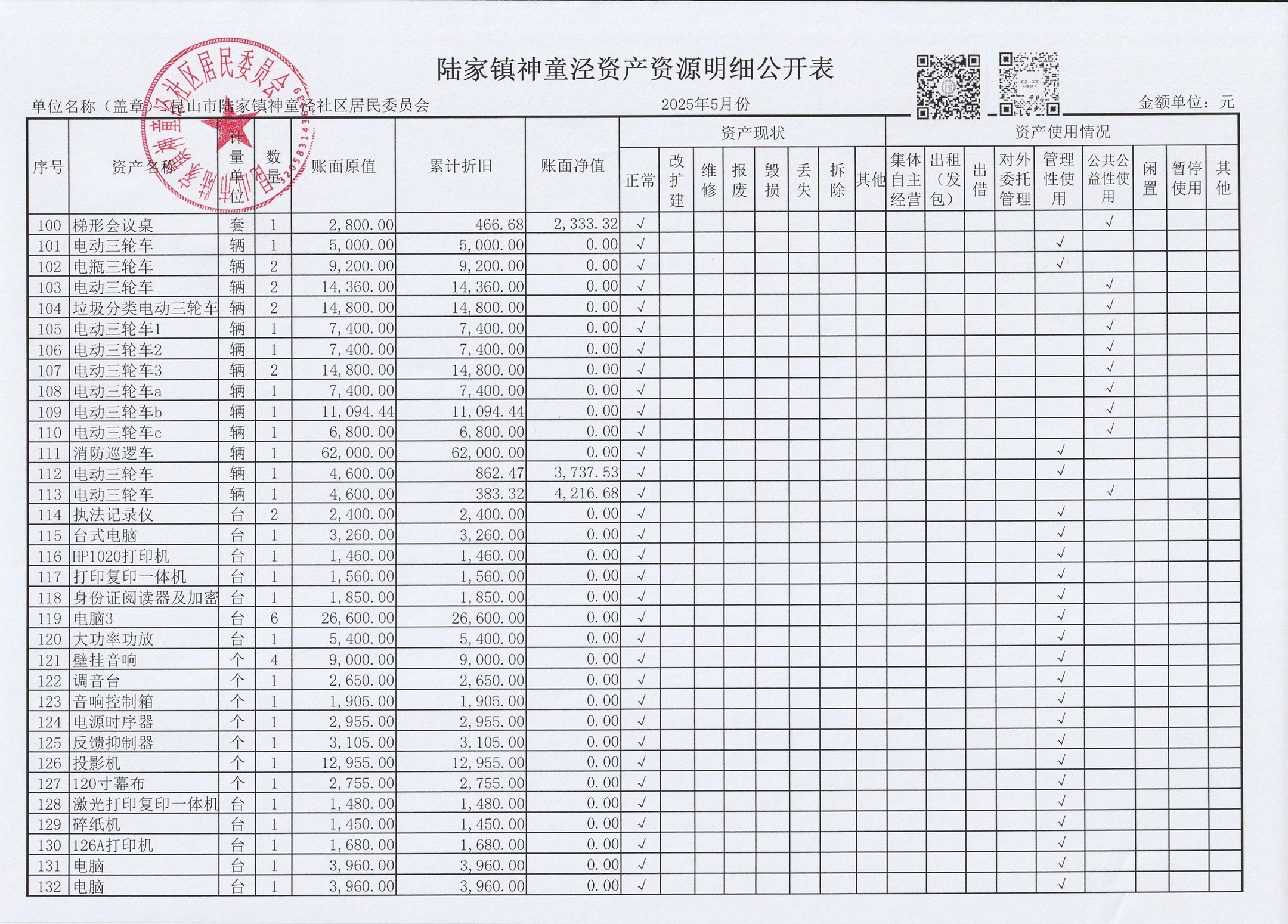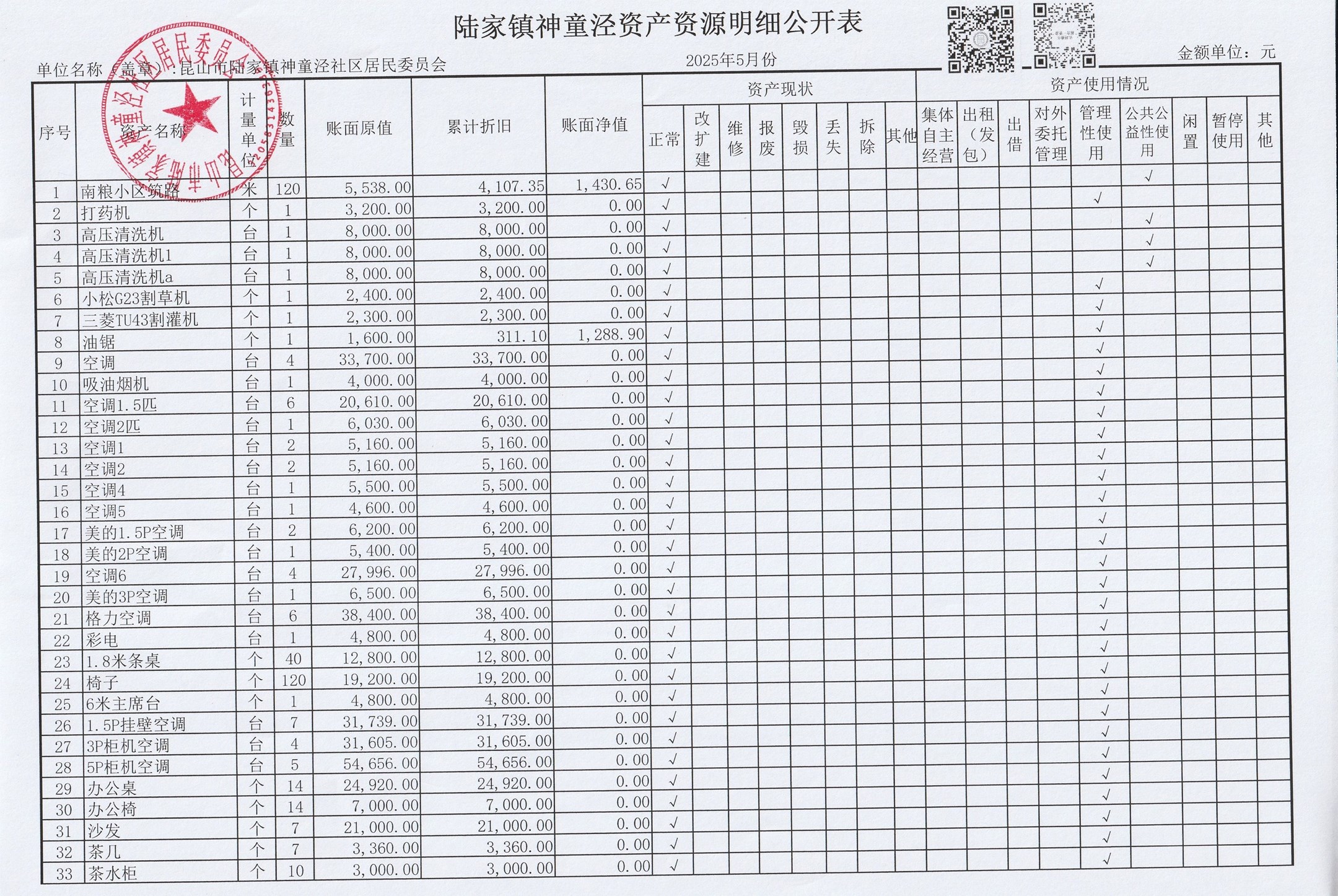 神童泾社区居民委员会财务公开(2025年5月)