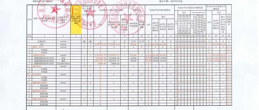 2025年联湖村6月份财务公开(农村集体资产经济合同收缴进度调查表)