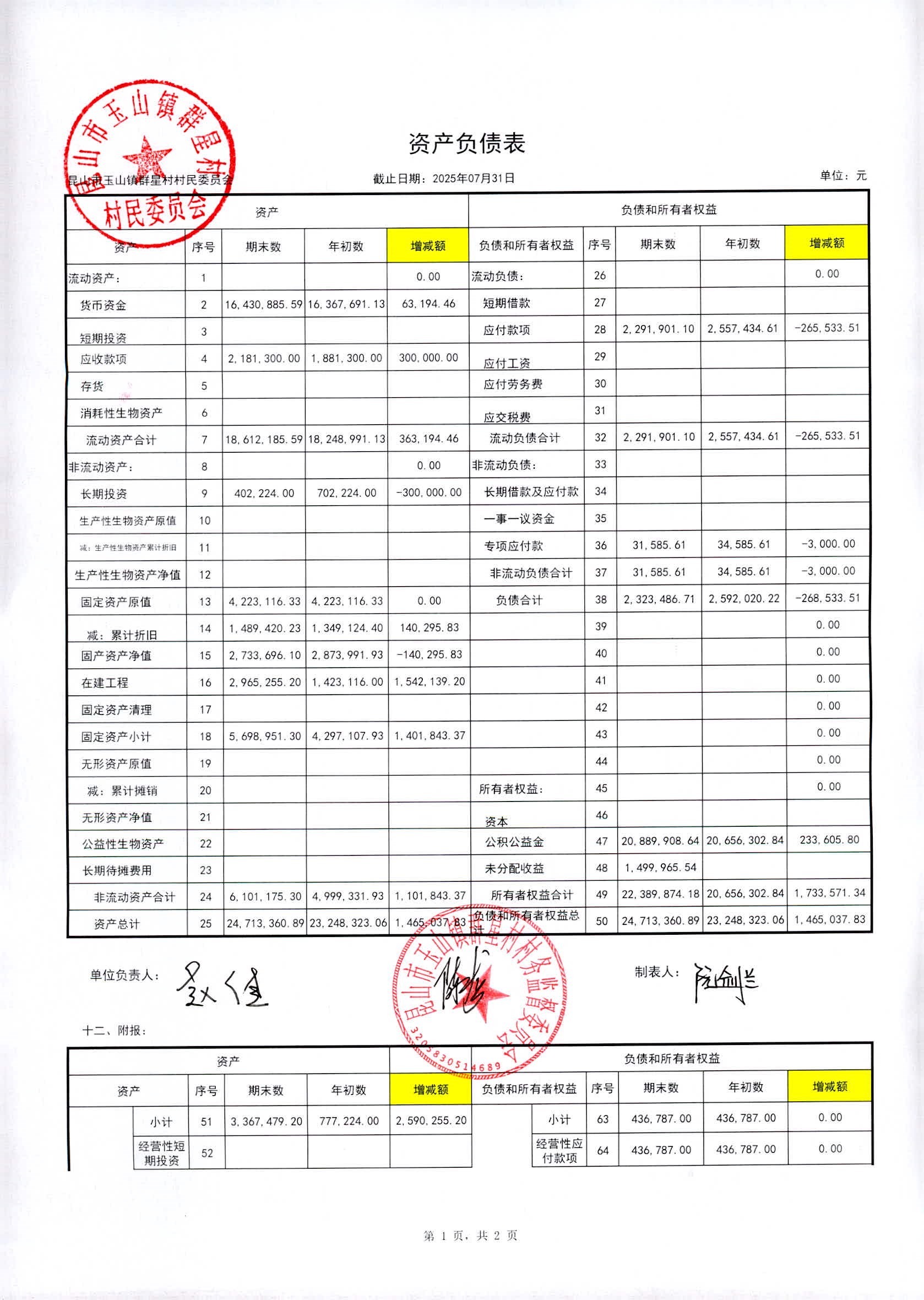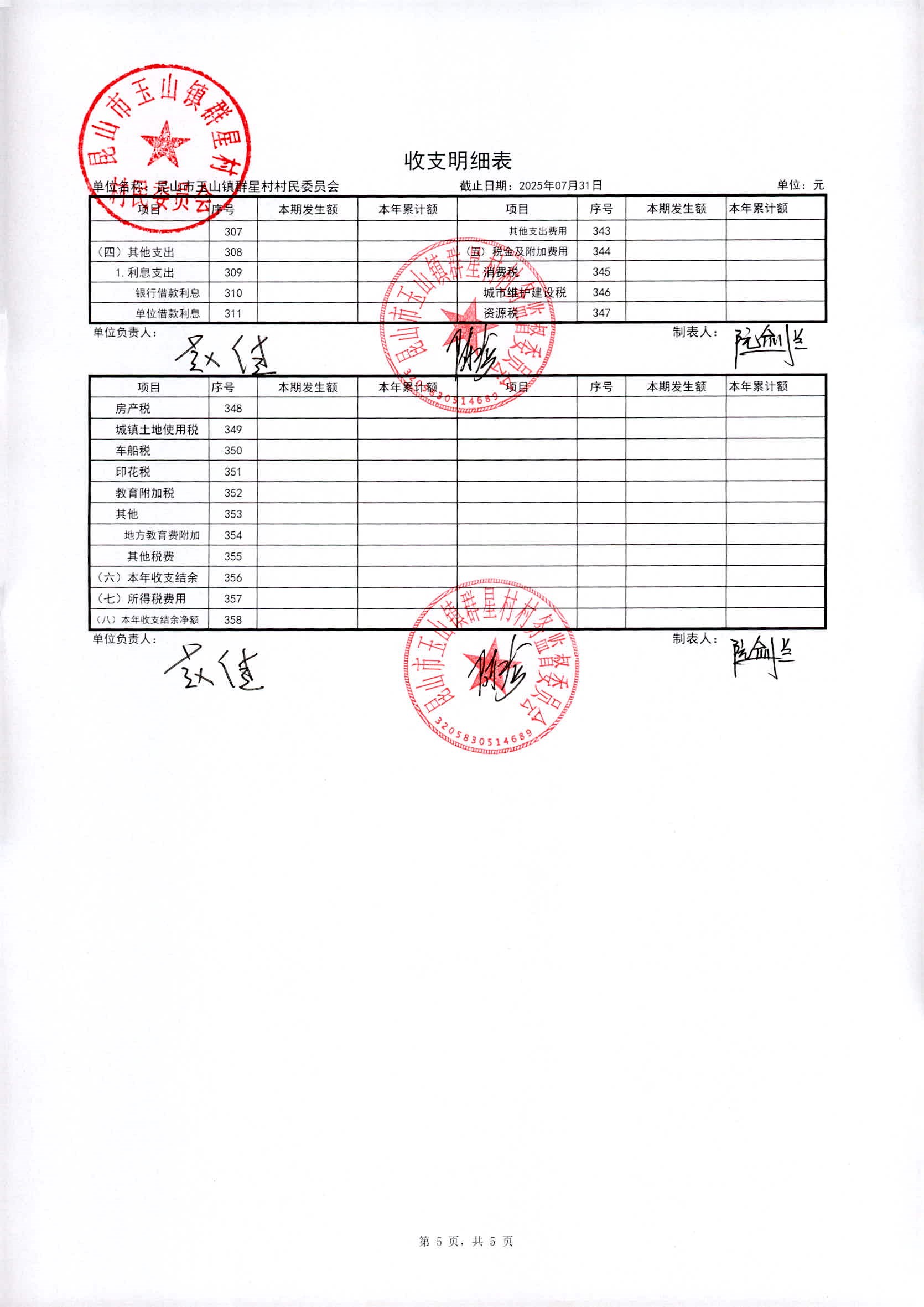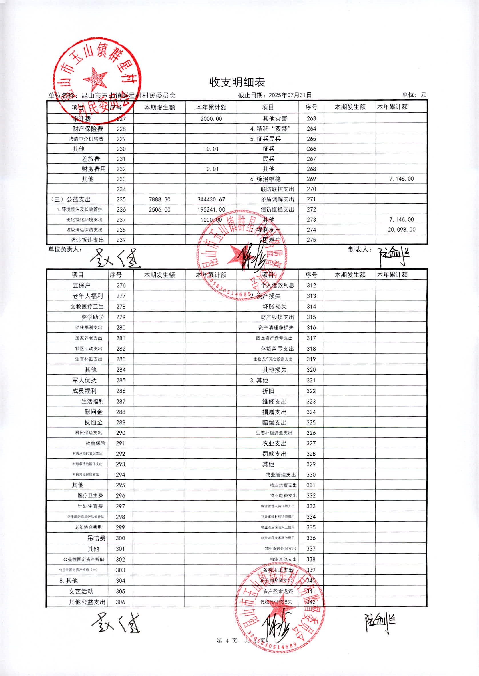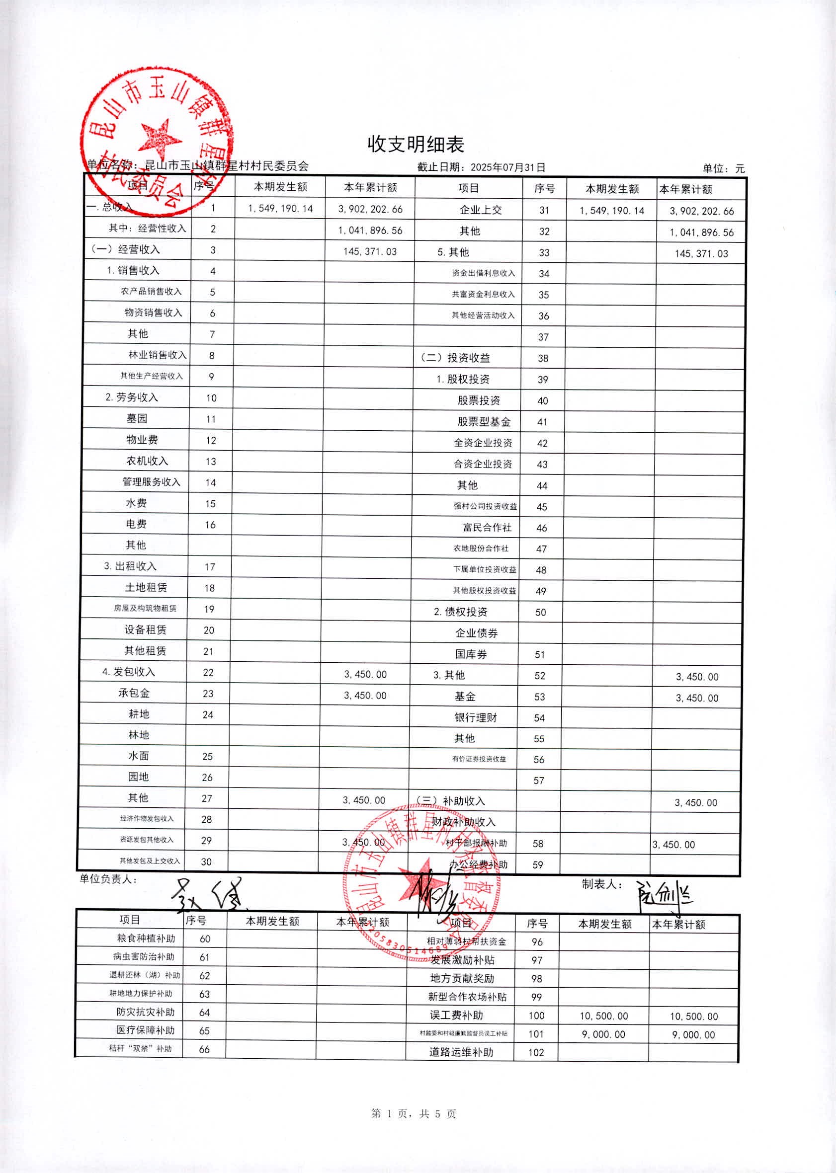 昆山高新区群星村2025年08月份公开村民委员会07月财务信息