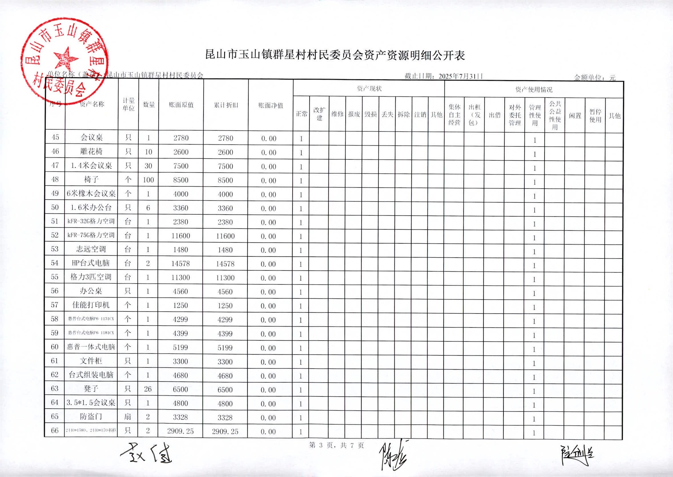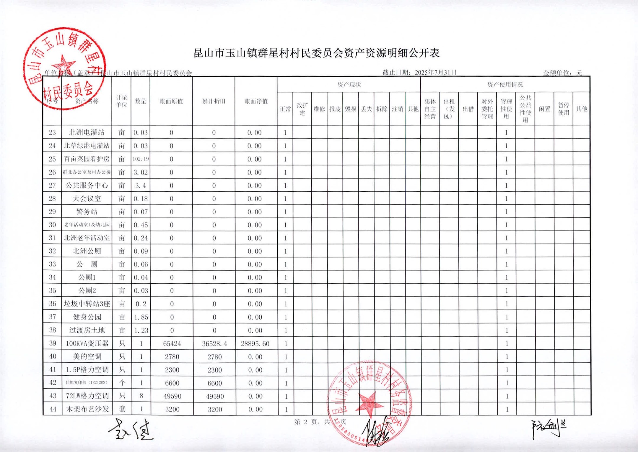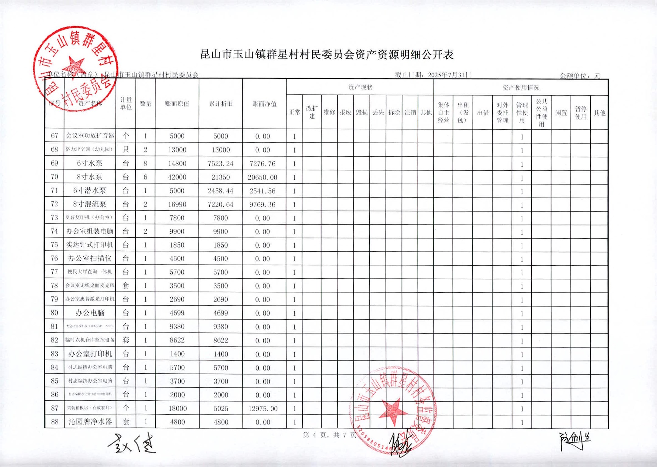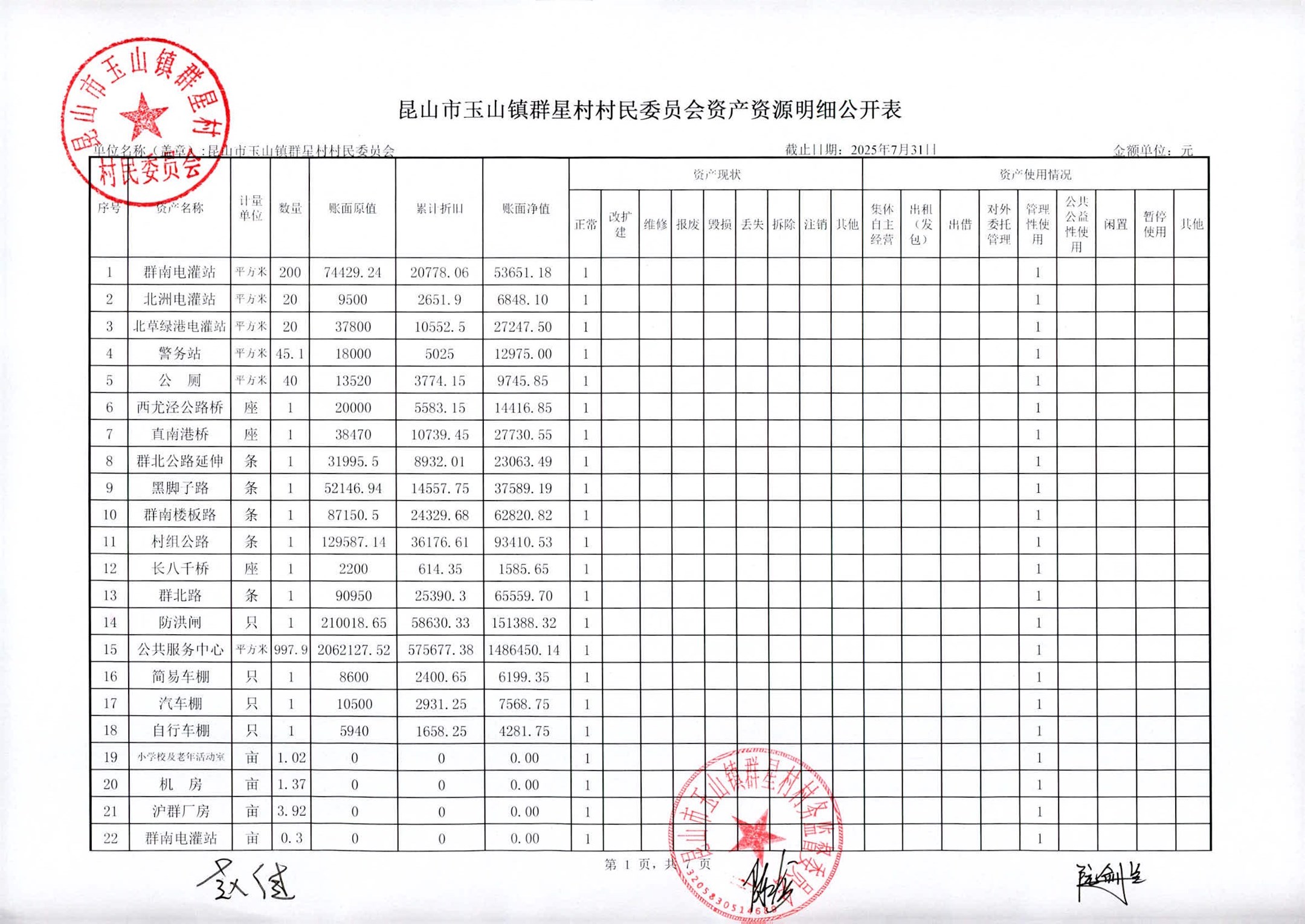 昆山高新区群星村2025年08月份公开村民委员会07月财务信息