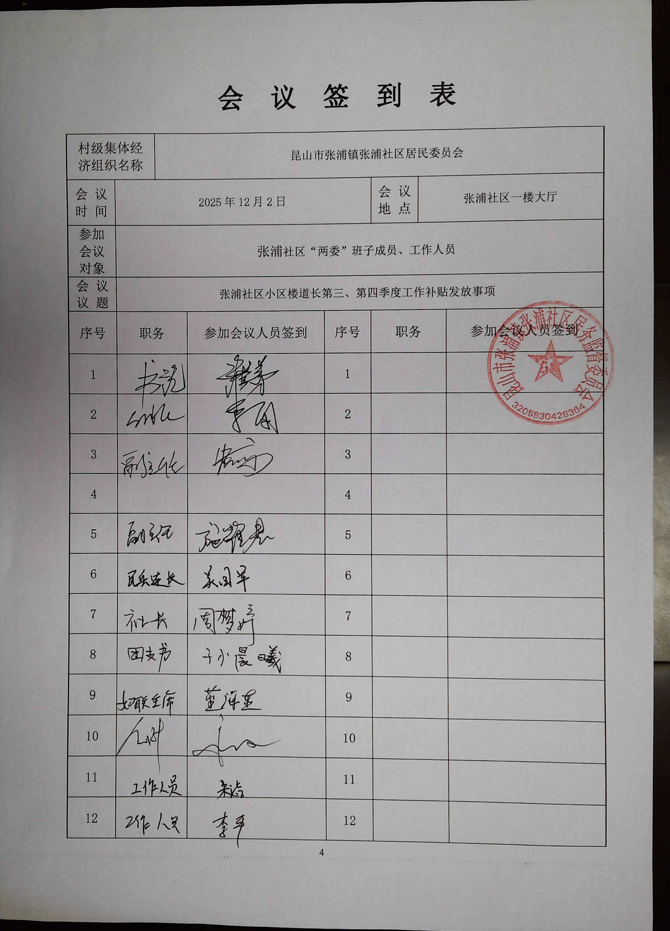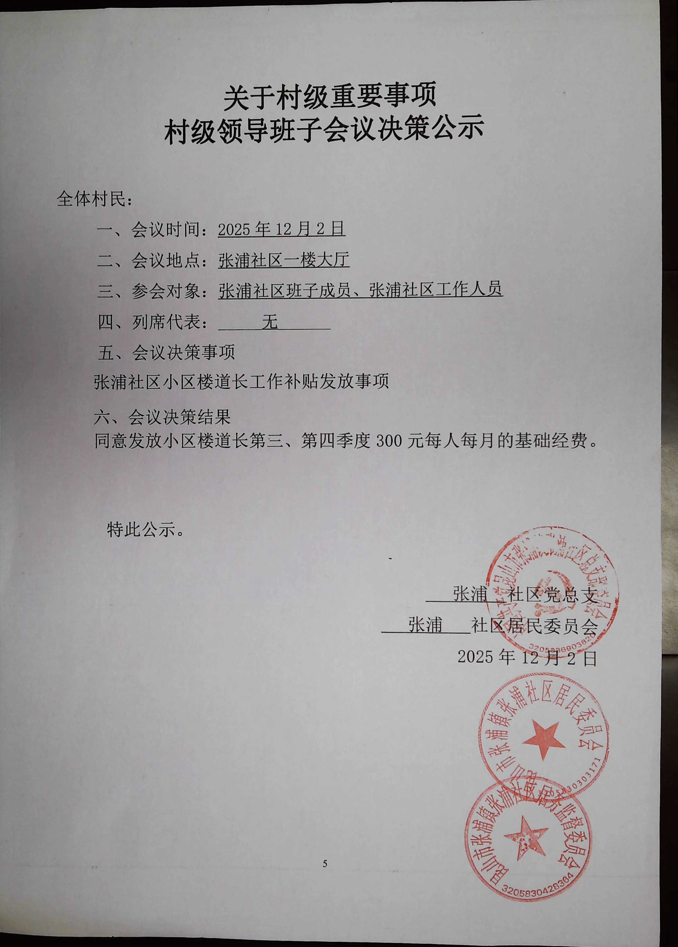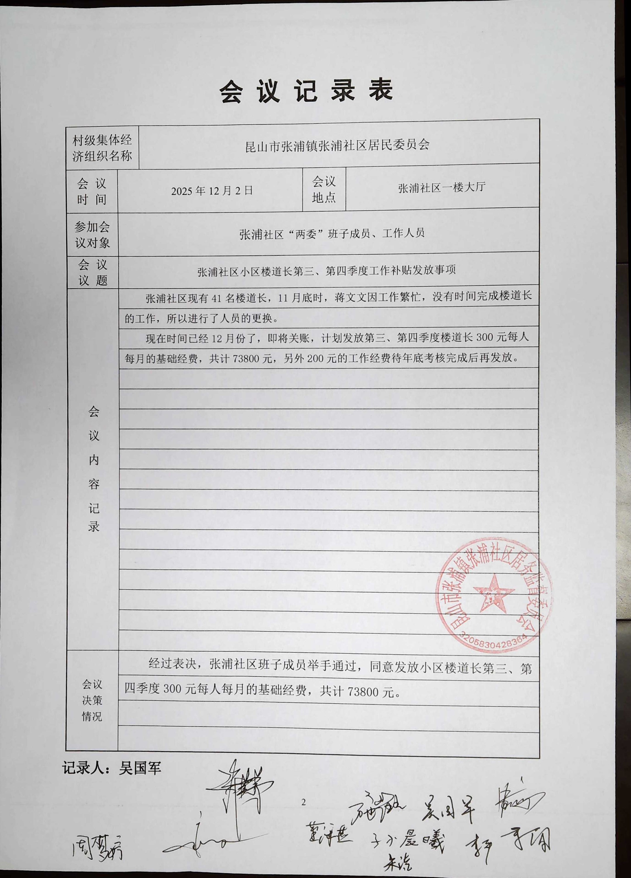 关于楼道长三、四季度工作补贴发放事项会议决策