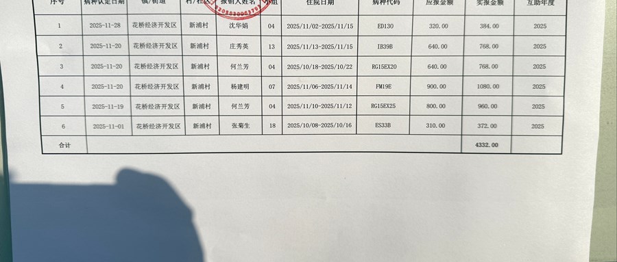 新浦村股份经济合作社2025年11月乡村医疗互助补助信息表公示