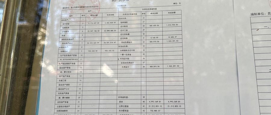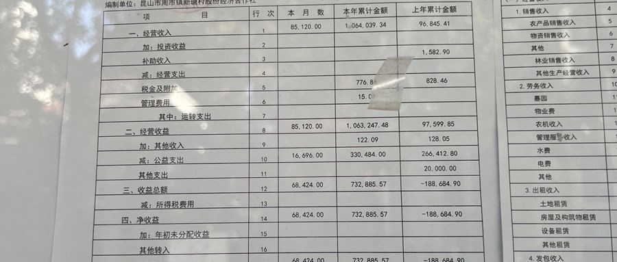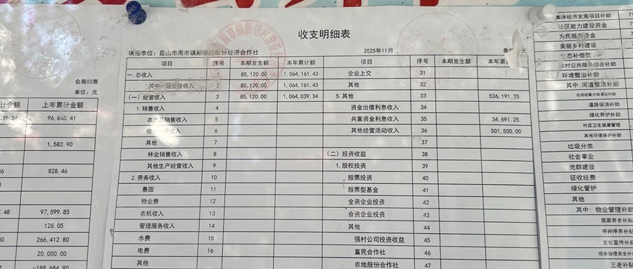 周市镇新瑭村股份经济合作社2025年11月财务定期公示