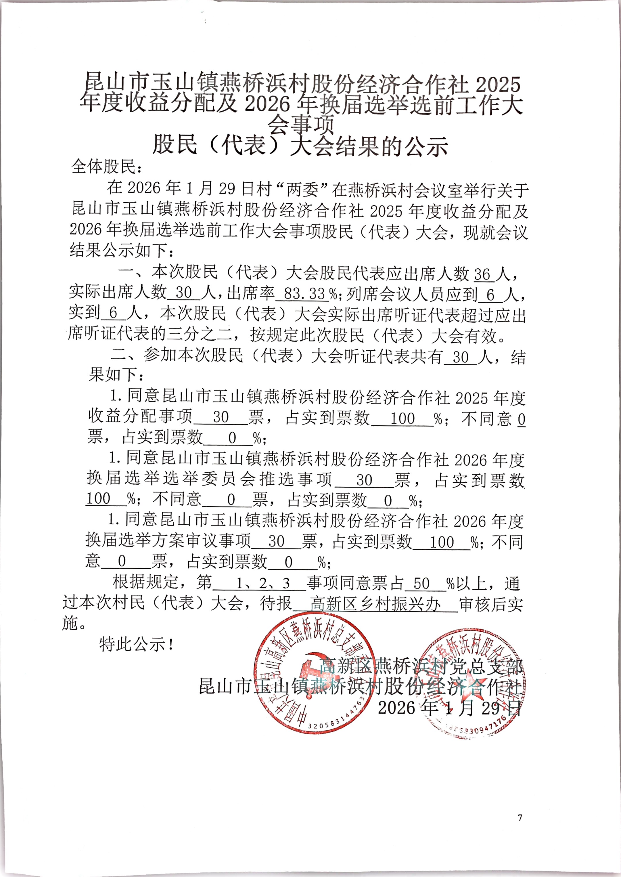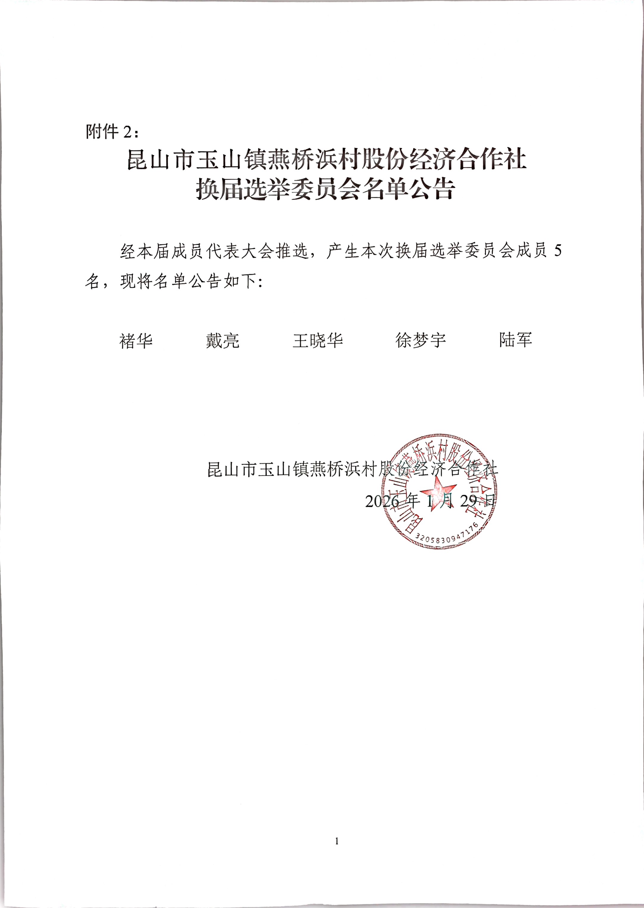 燕桥浜村股份经济合作社换届选举选前工作大会结果公示(选举委员会名单、选举方案)
