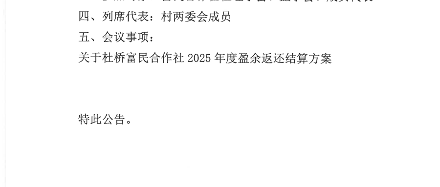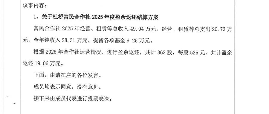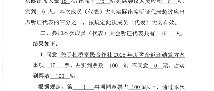 杜桥村富民合作成员(代表)大会结果公示