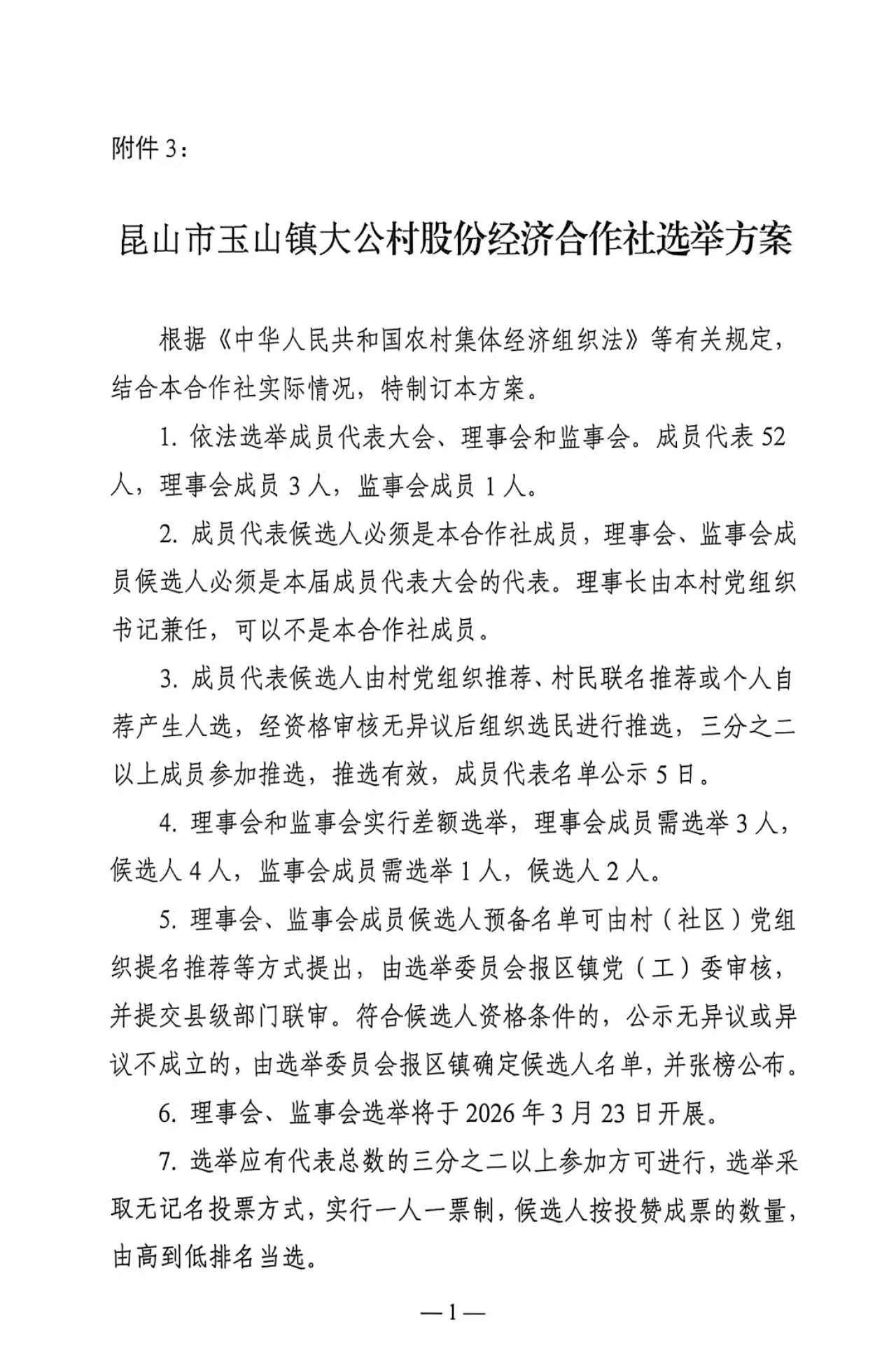 大公村股份经济合作社换届选举委员会公告及选举方案