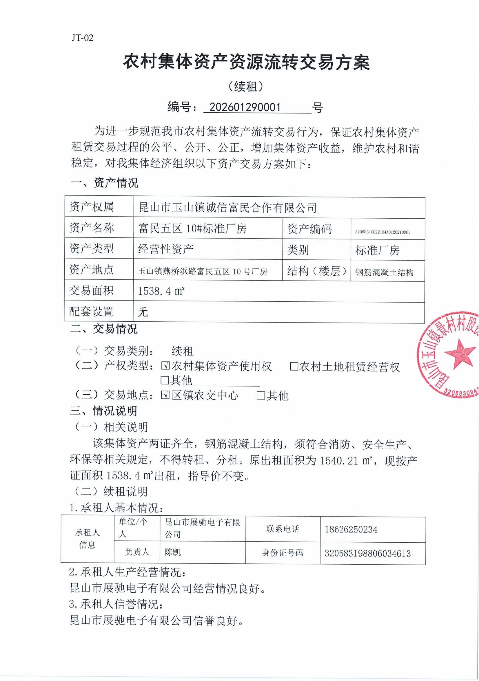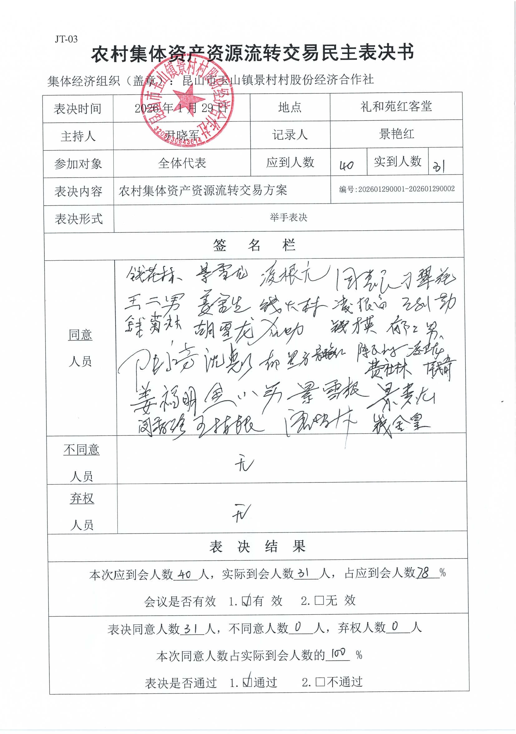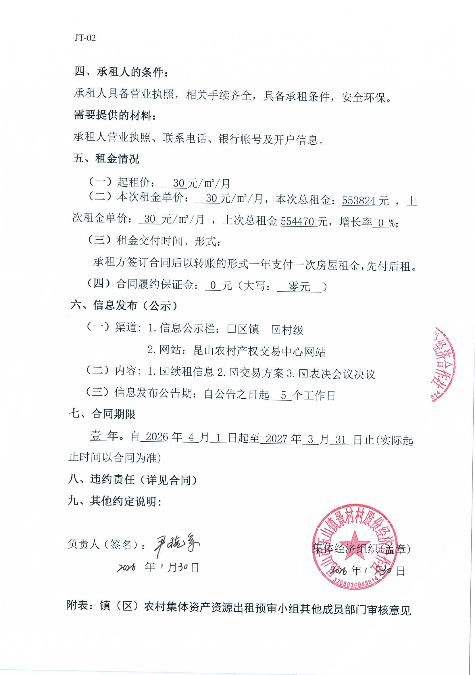 高新区景村村2026年富民五区10#标准厂房招租交易方案、会议决议公示: