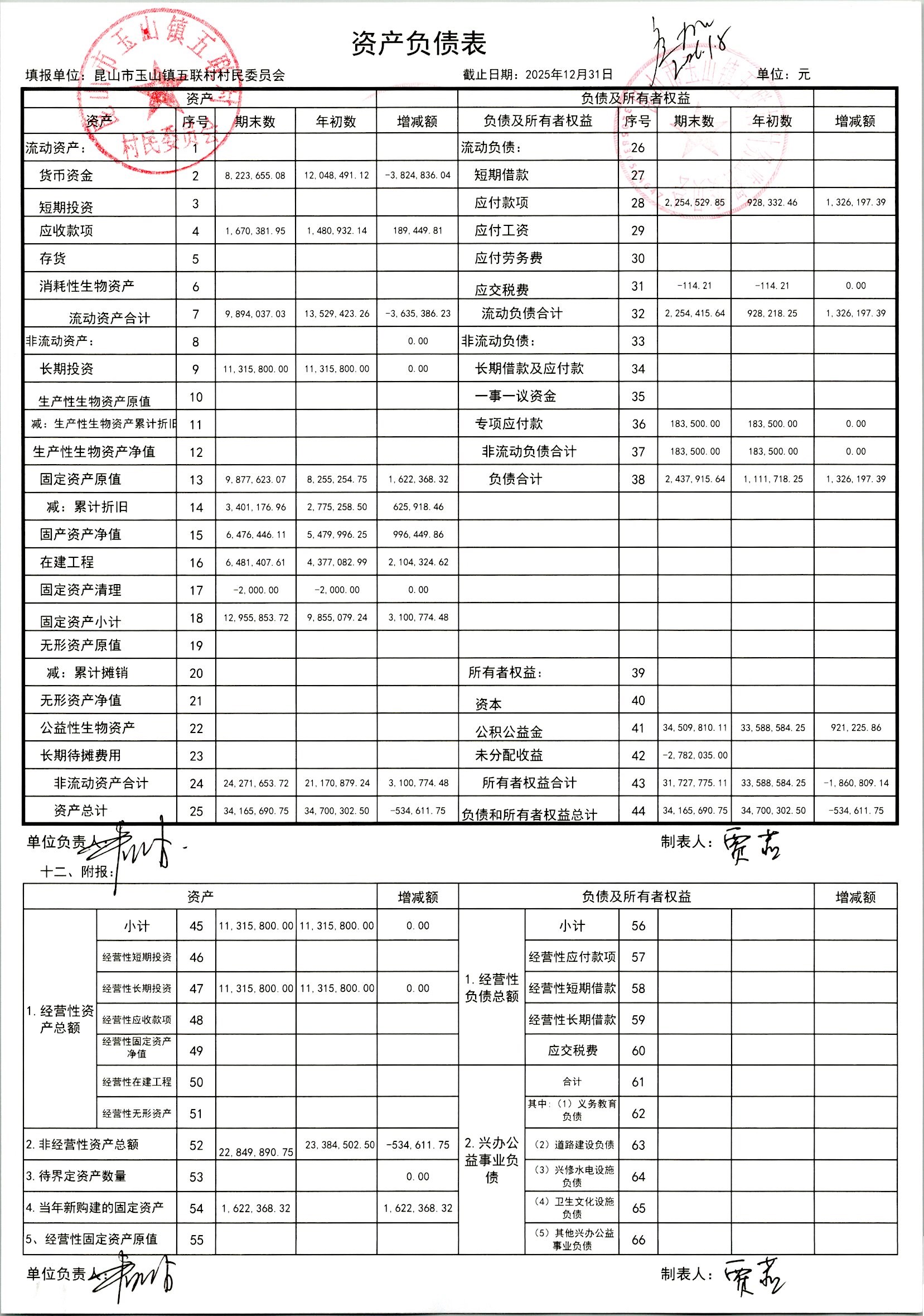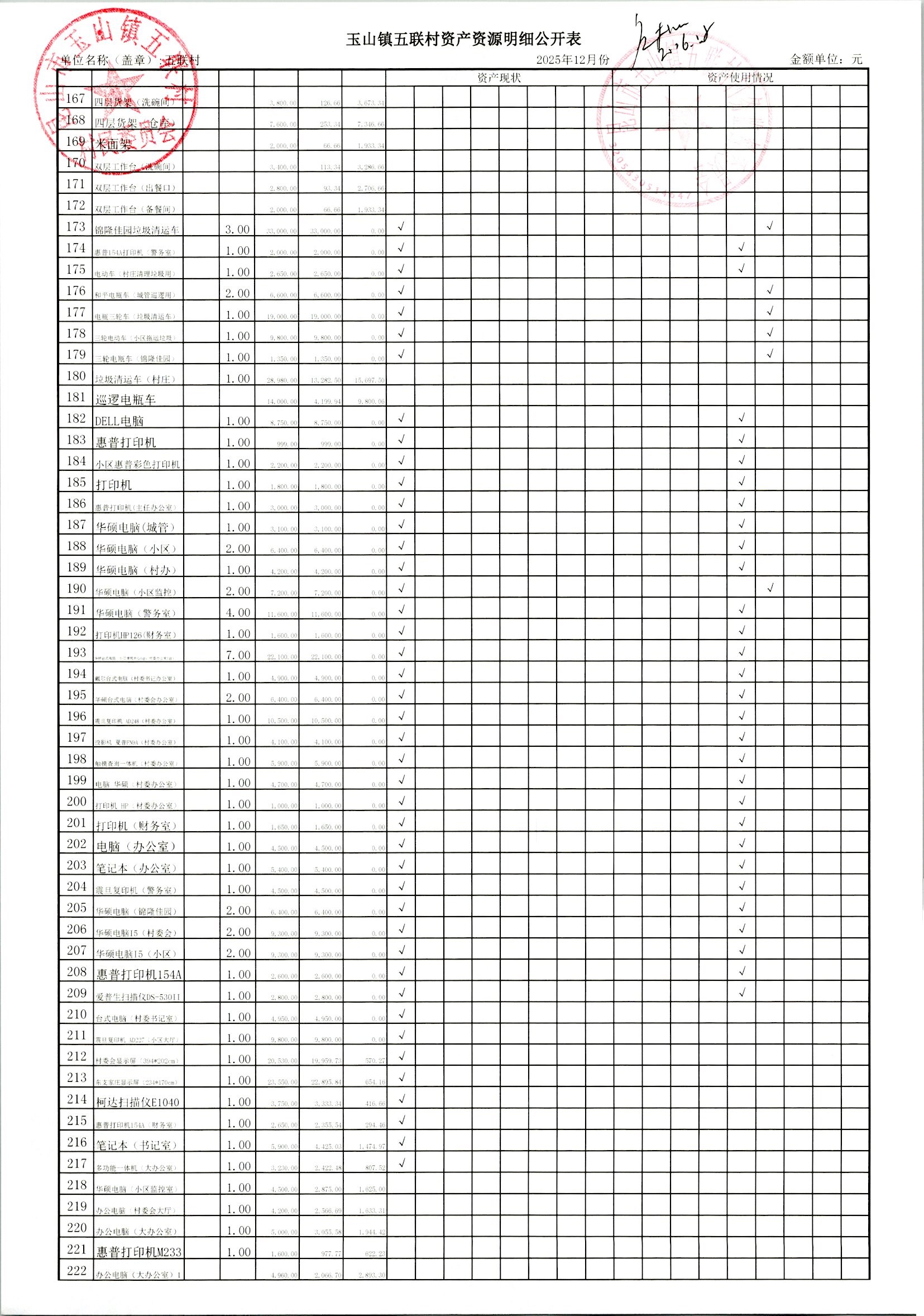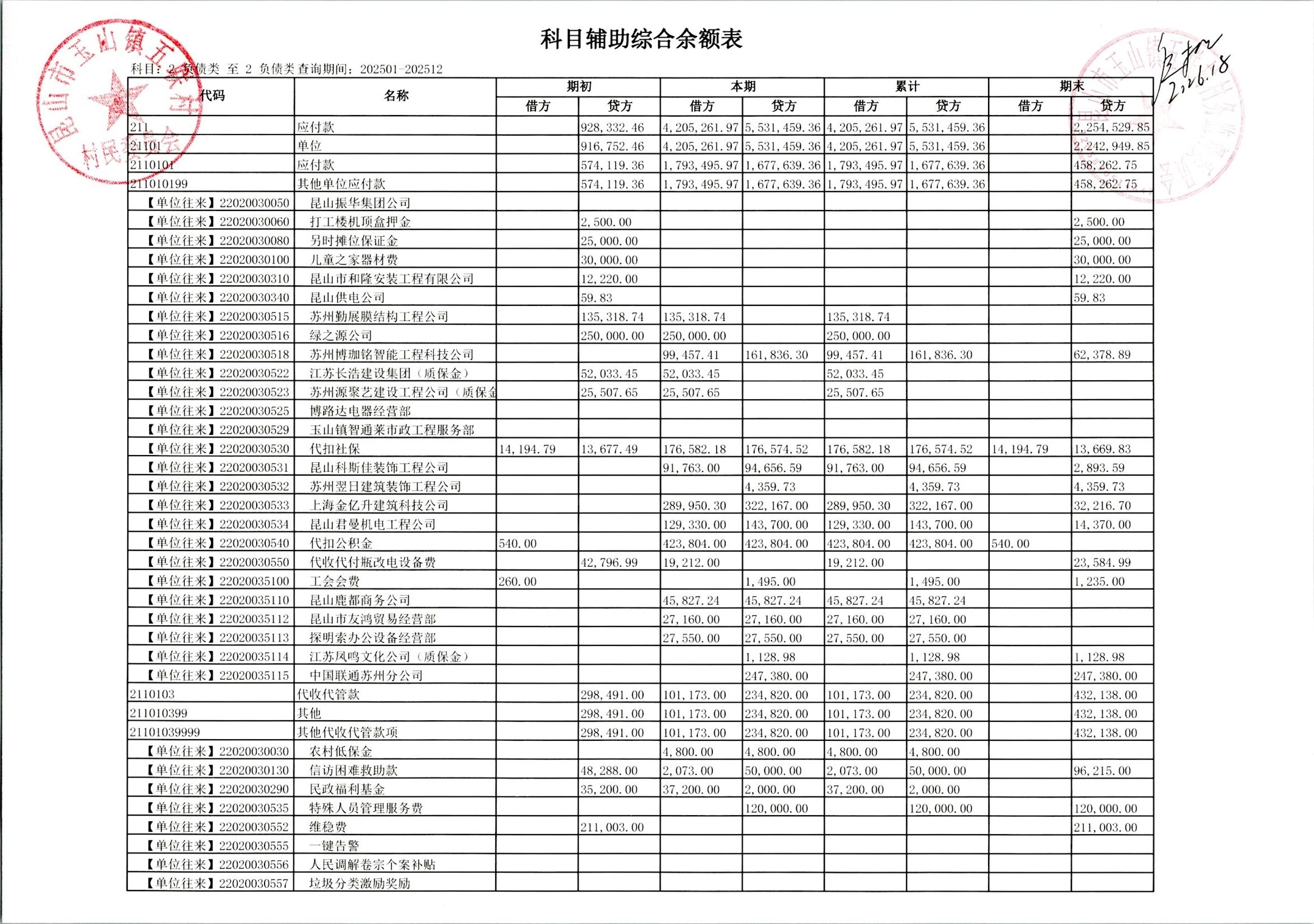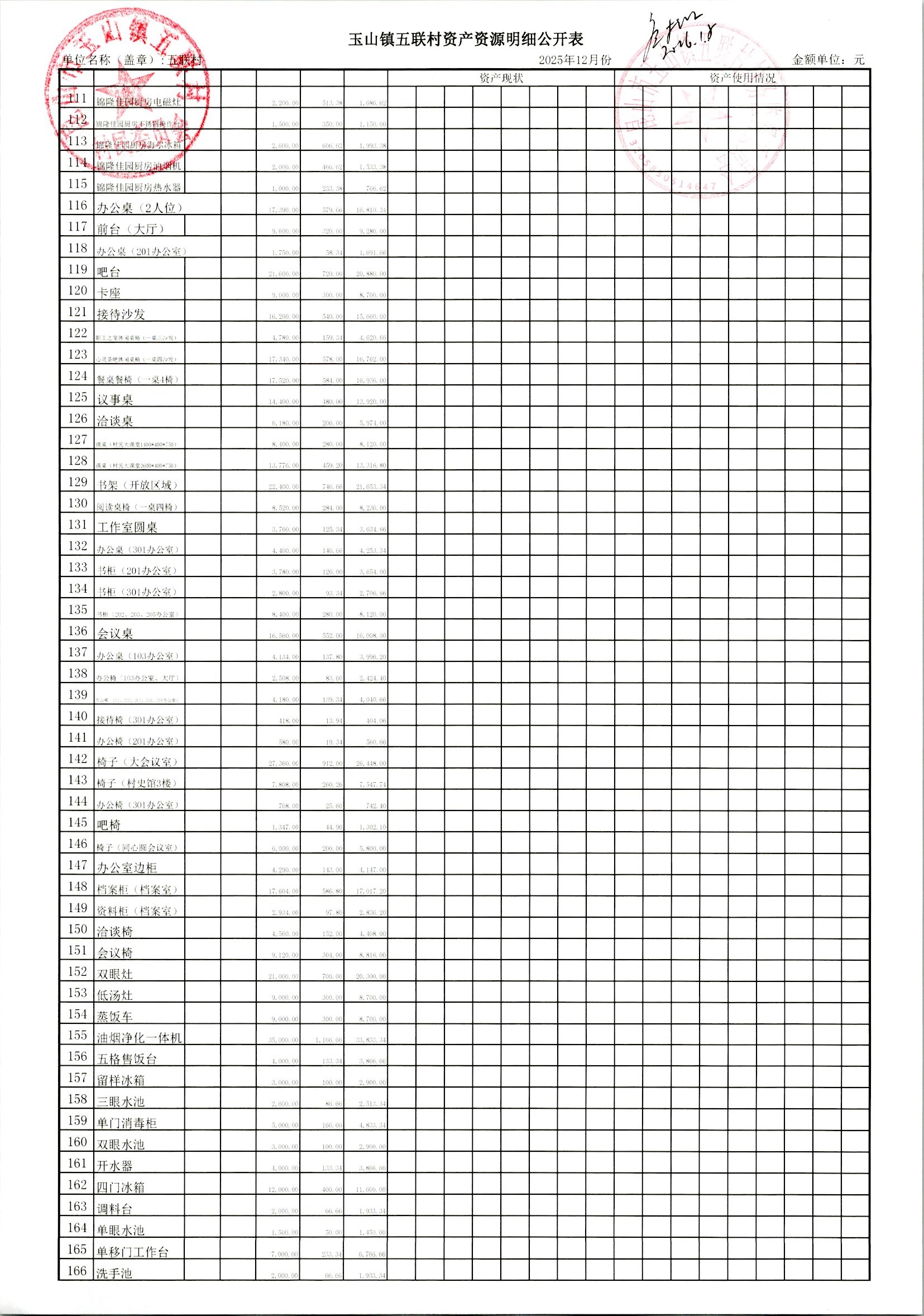 2026年1月村委会财务定期公开