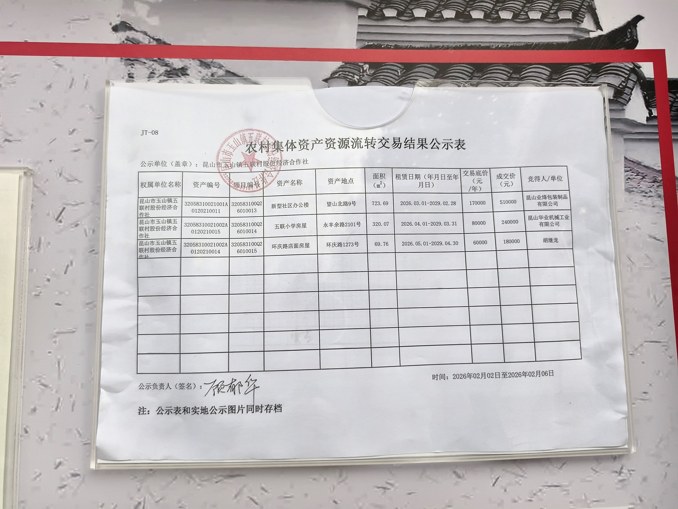五联村农村集体资产资源流转交易结果公示