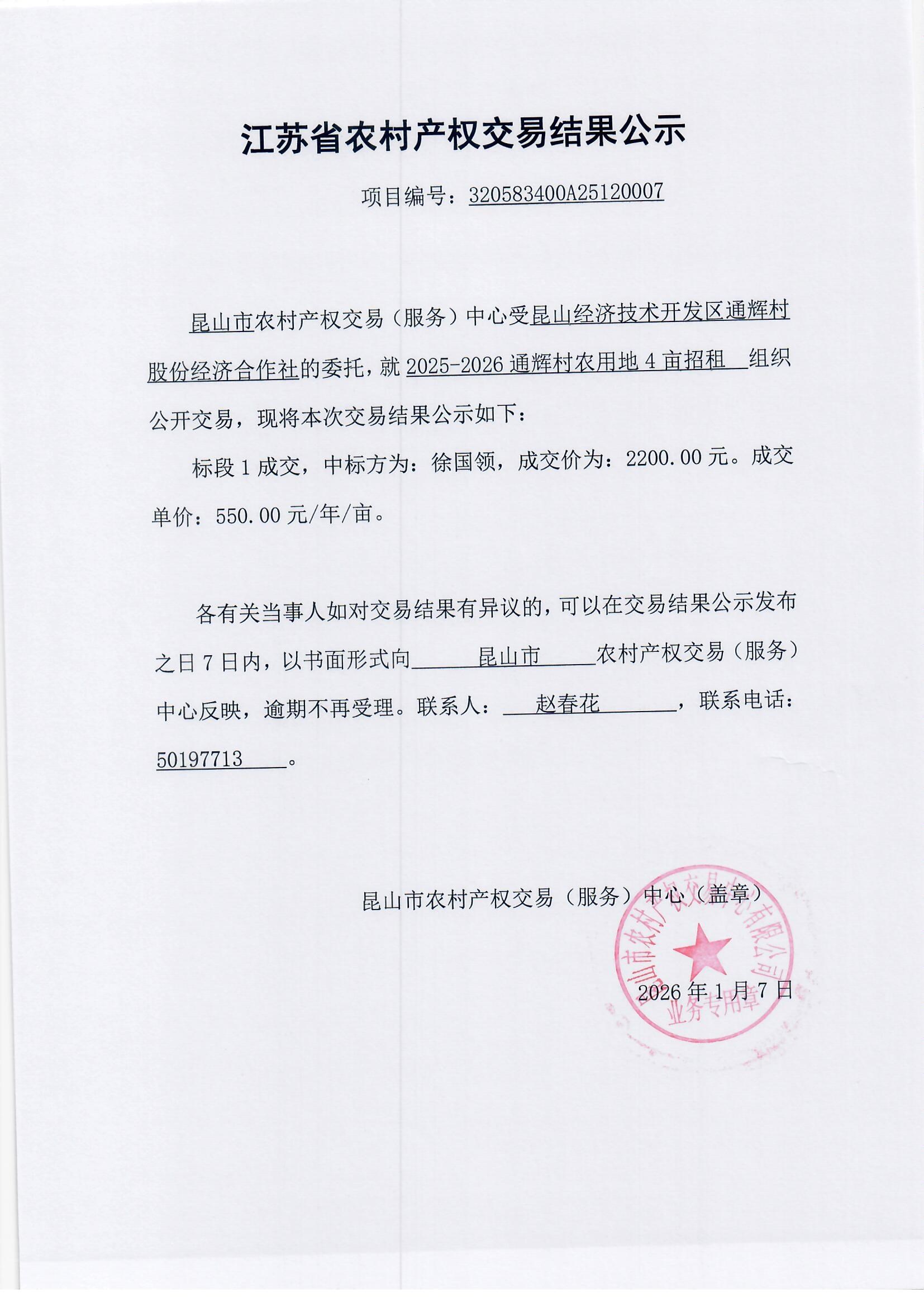 交易结果公示