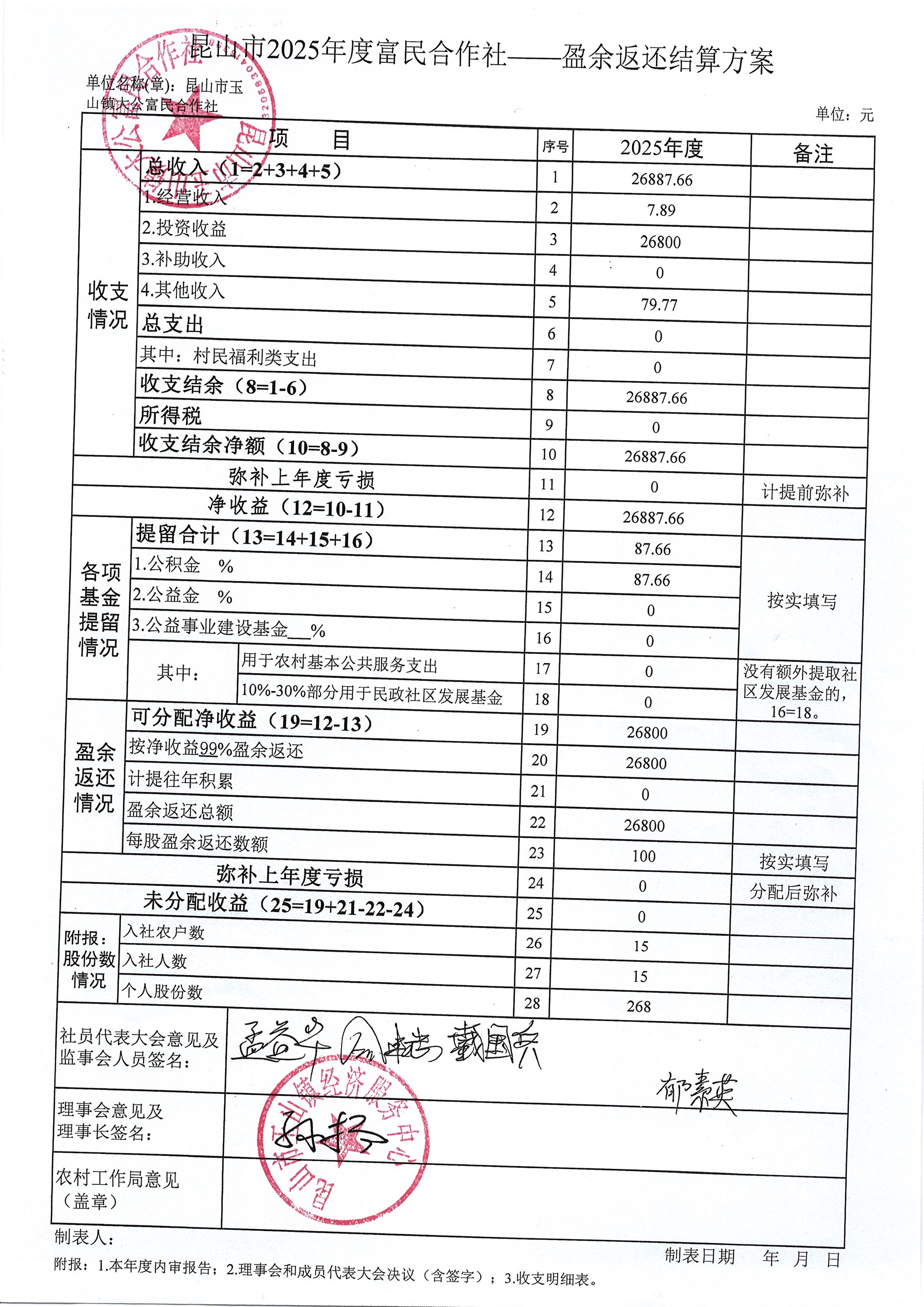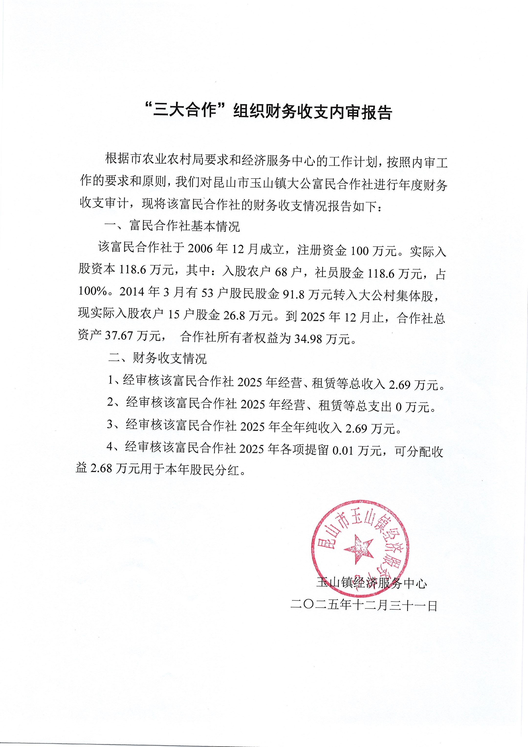 大公富民合作社2025年分配方案