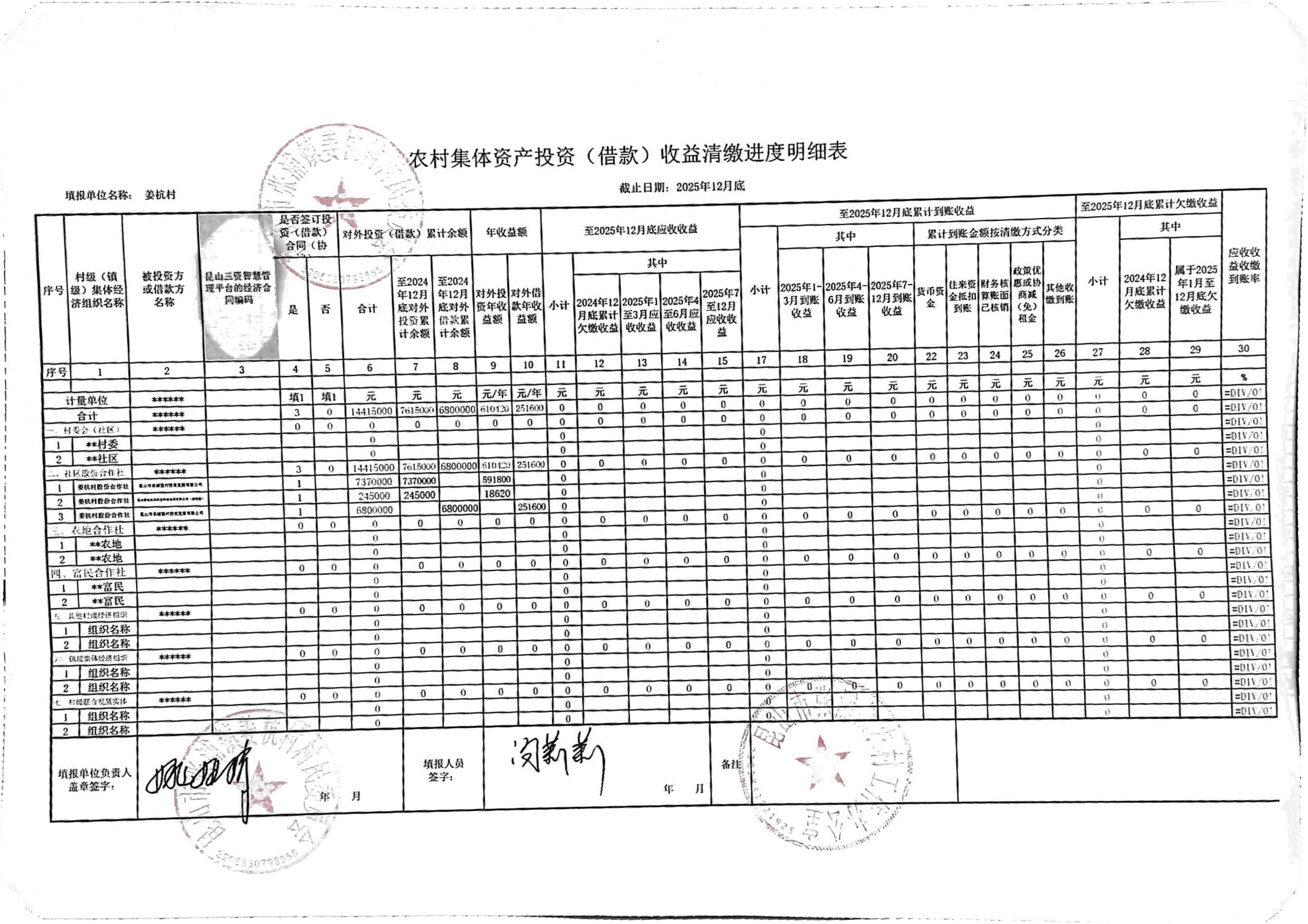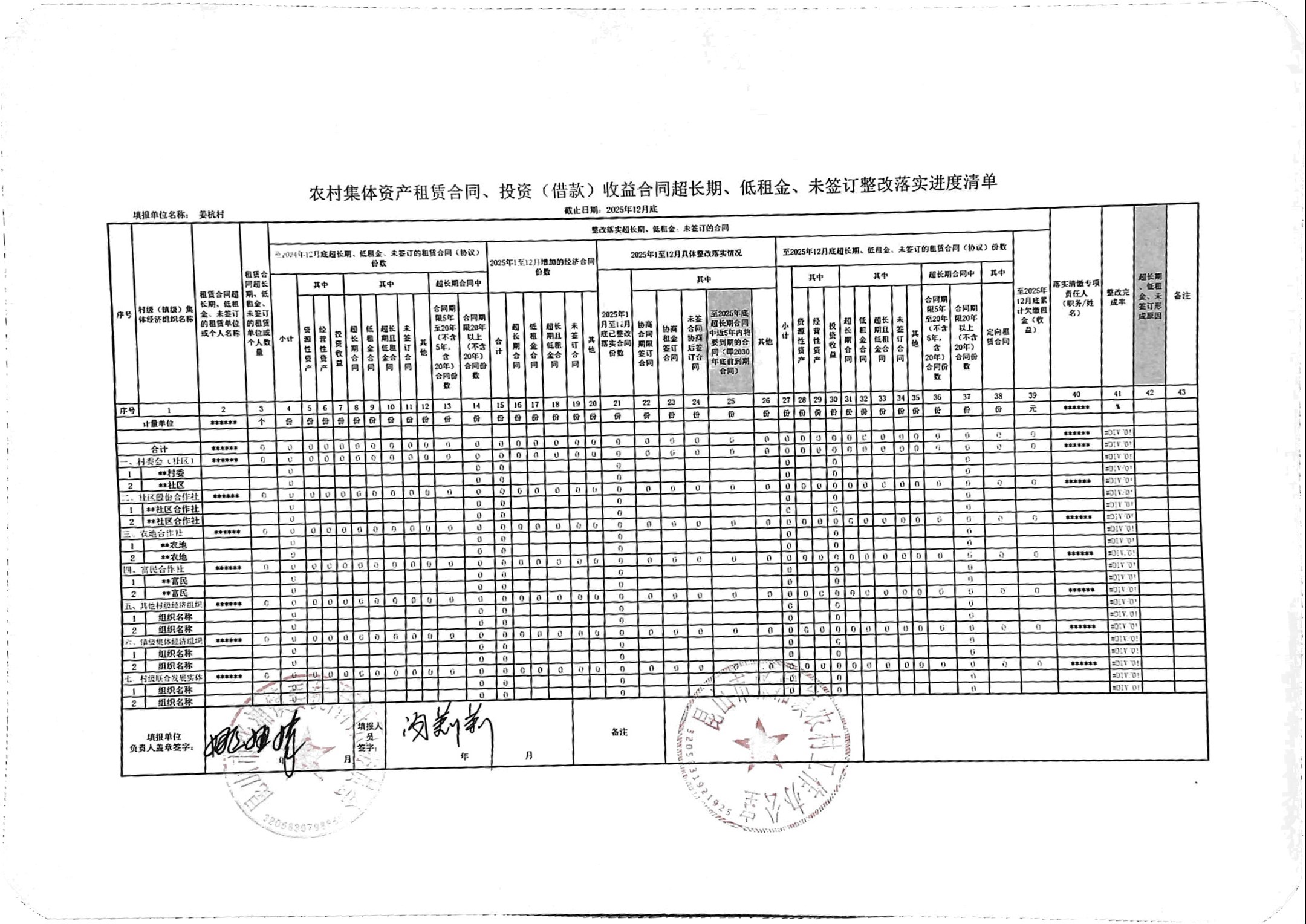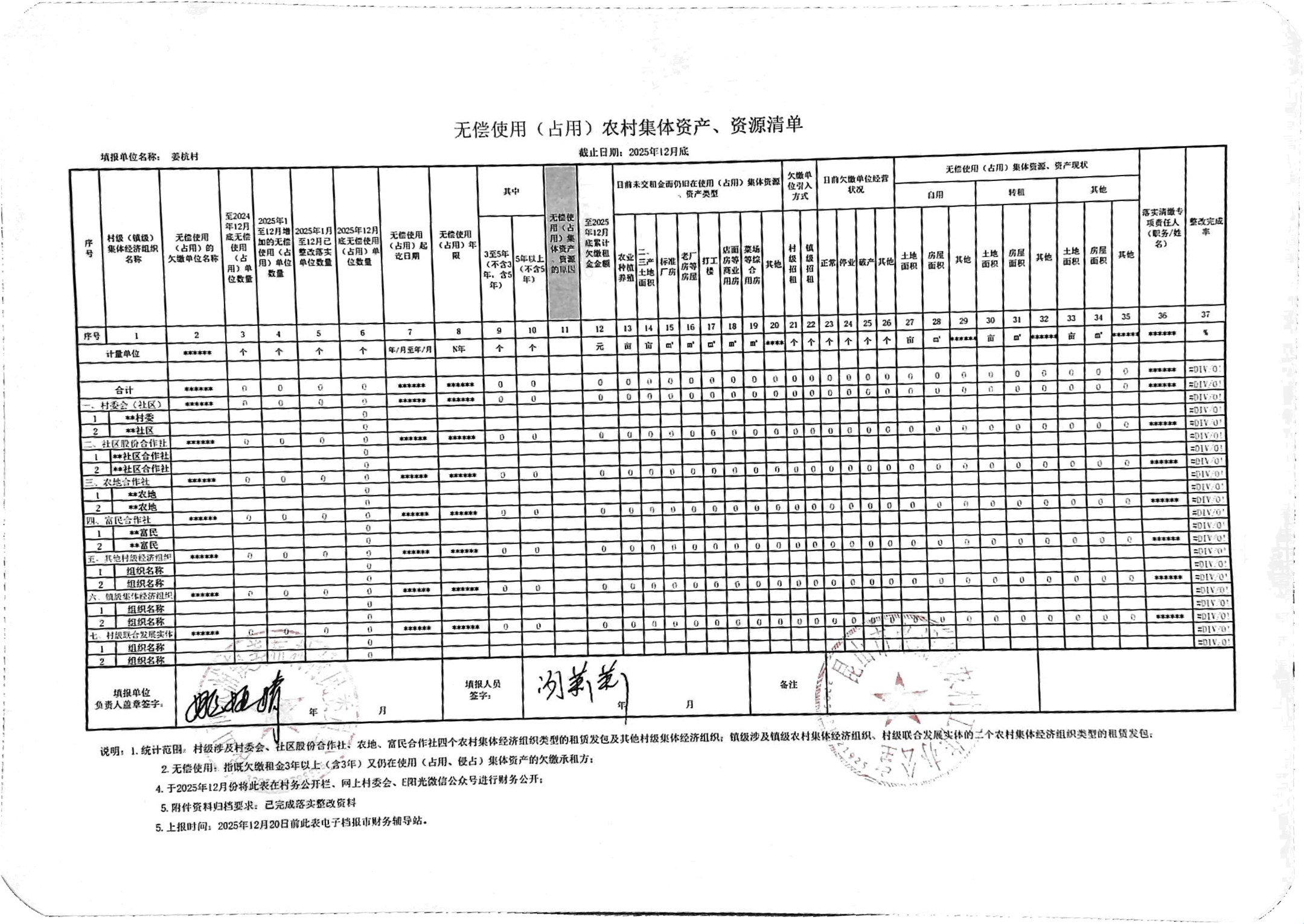 姜杭村2025年第四季度农村集体资产、资源公开