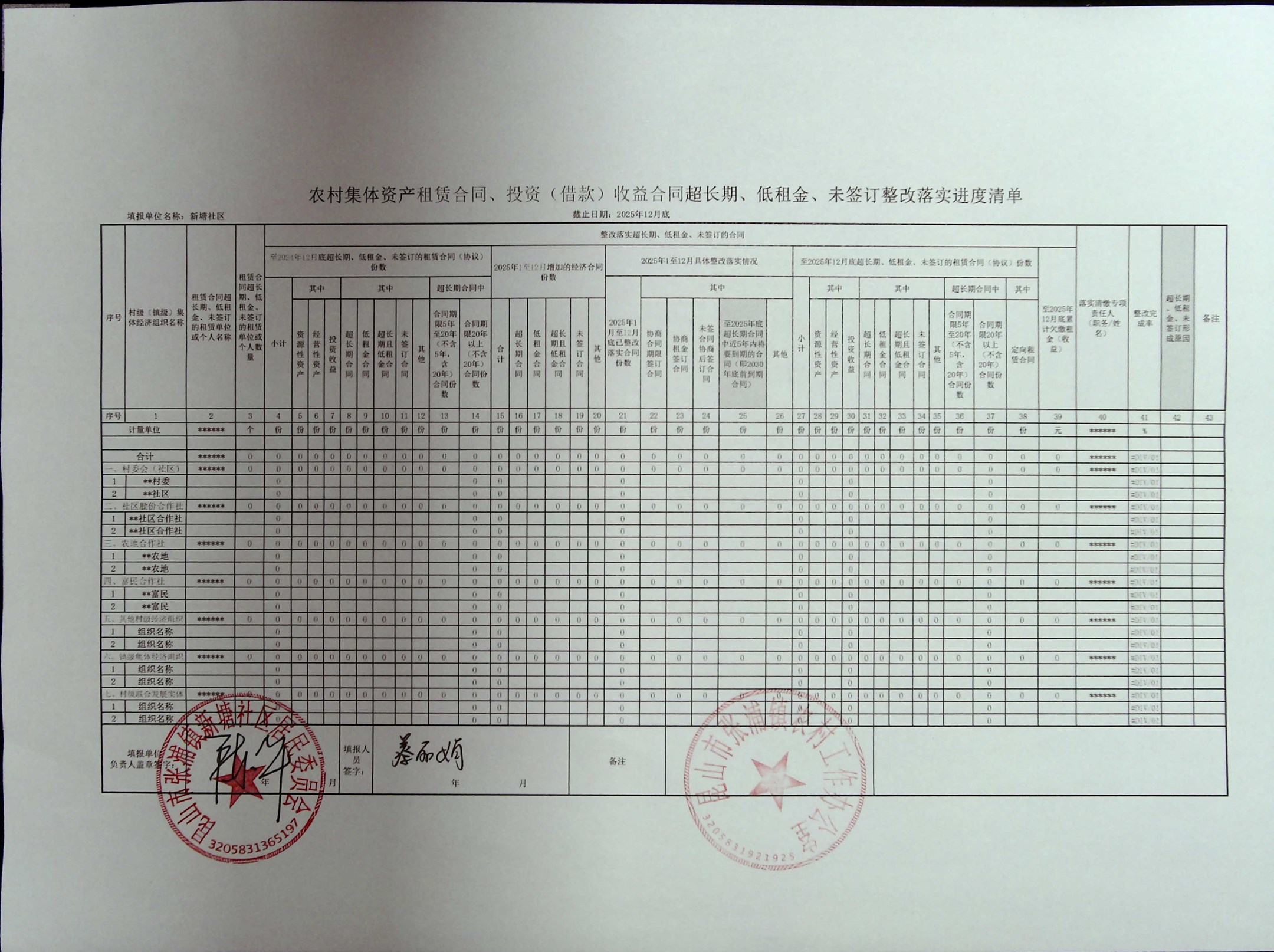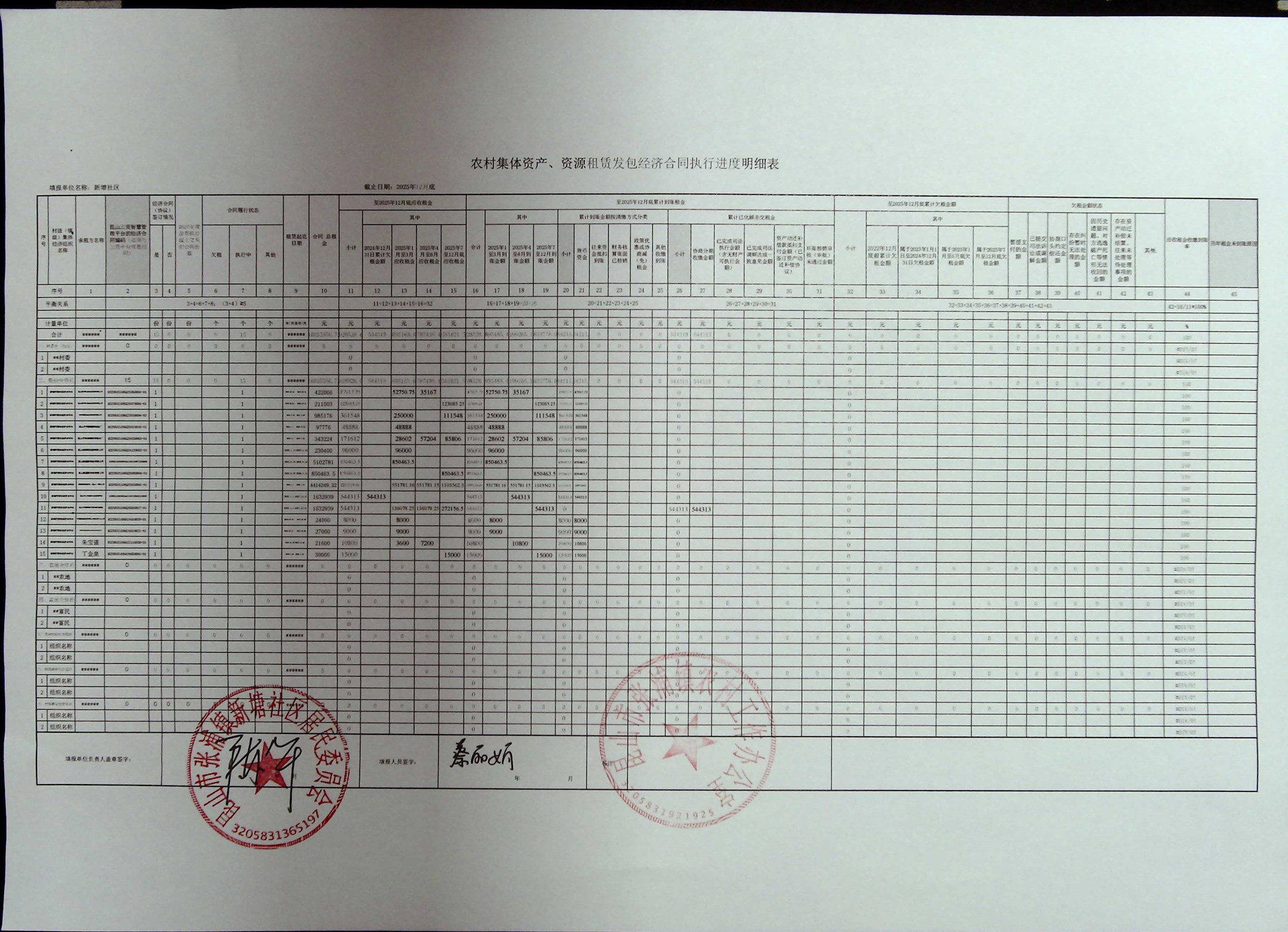 农村集体资产、资源租赁发包经济合同执行进度