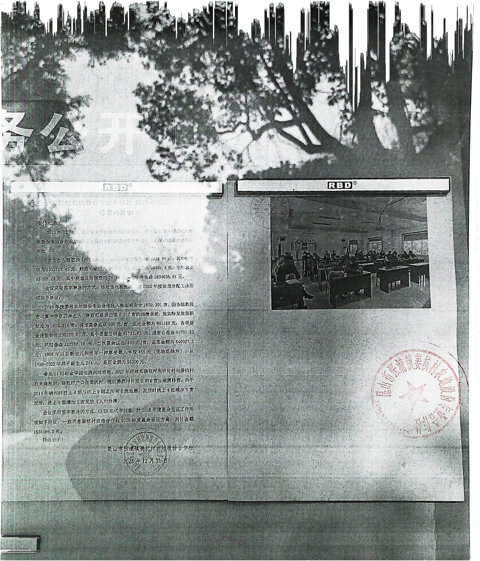 姜杭村2025年度农地股份专业合作社盈余返还结算方案及听证会会议