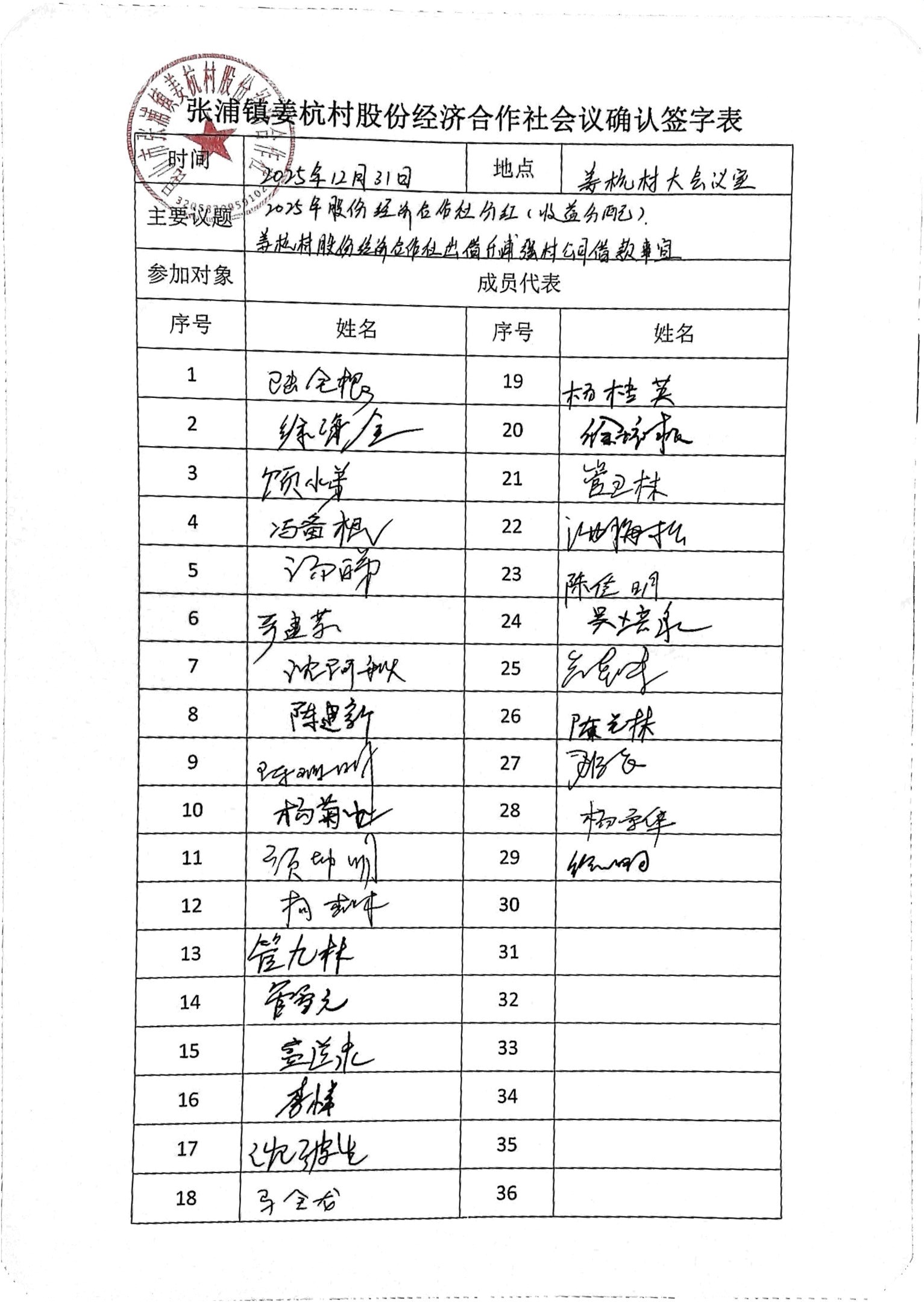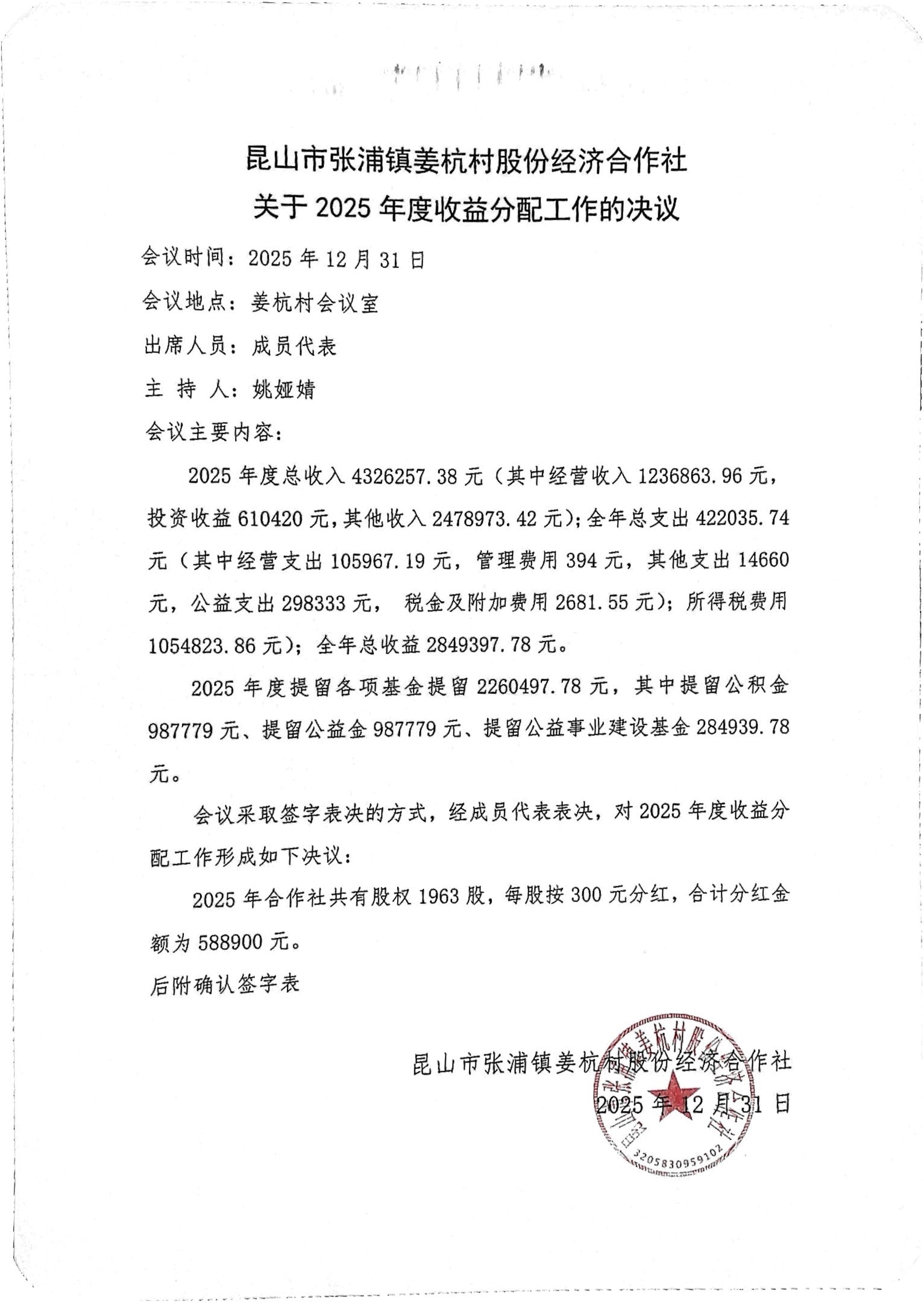 姜杭村2025年度股份经济合作社盈余返还结算方案及会议
