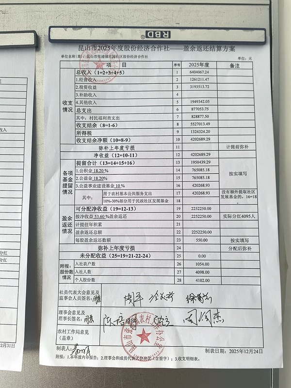 2025年花园社区股份经济合作社盈余方案