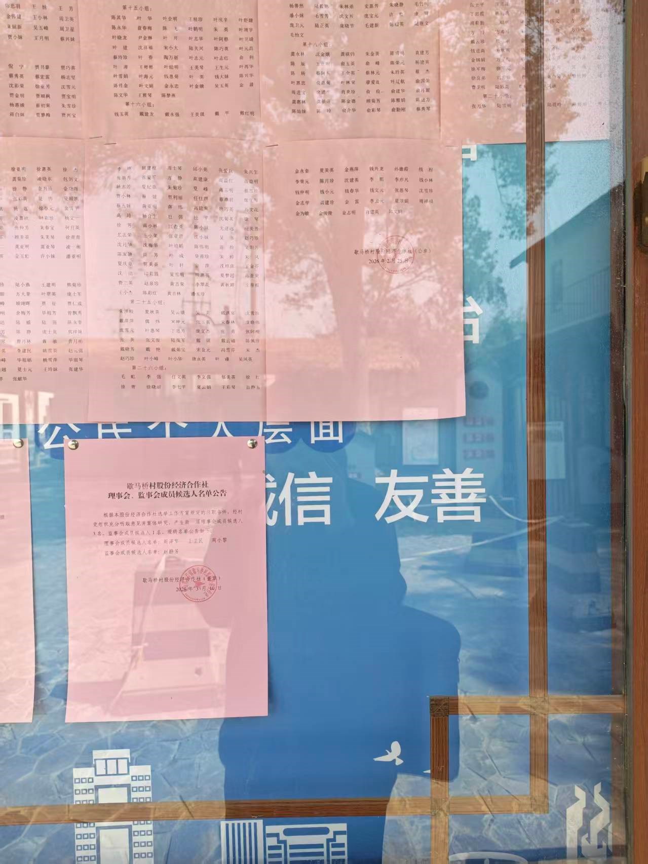 歇马桥村股份经济合作社理事会、监事会成员候选人名单公告