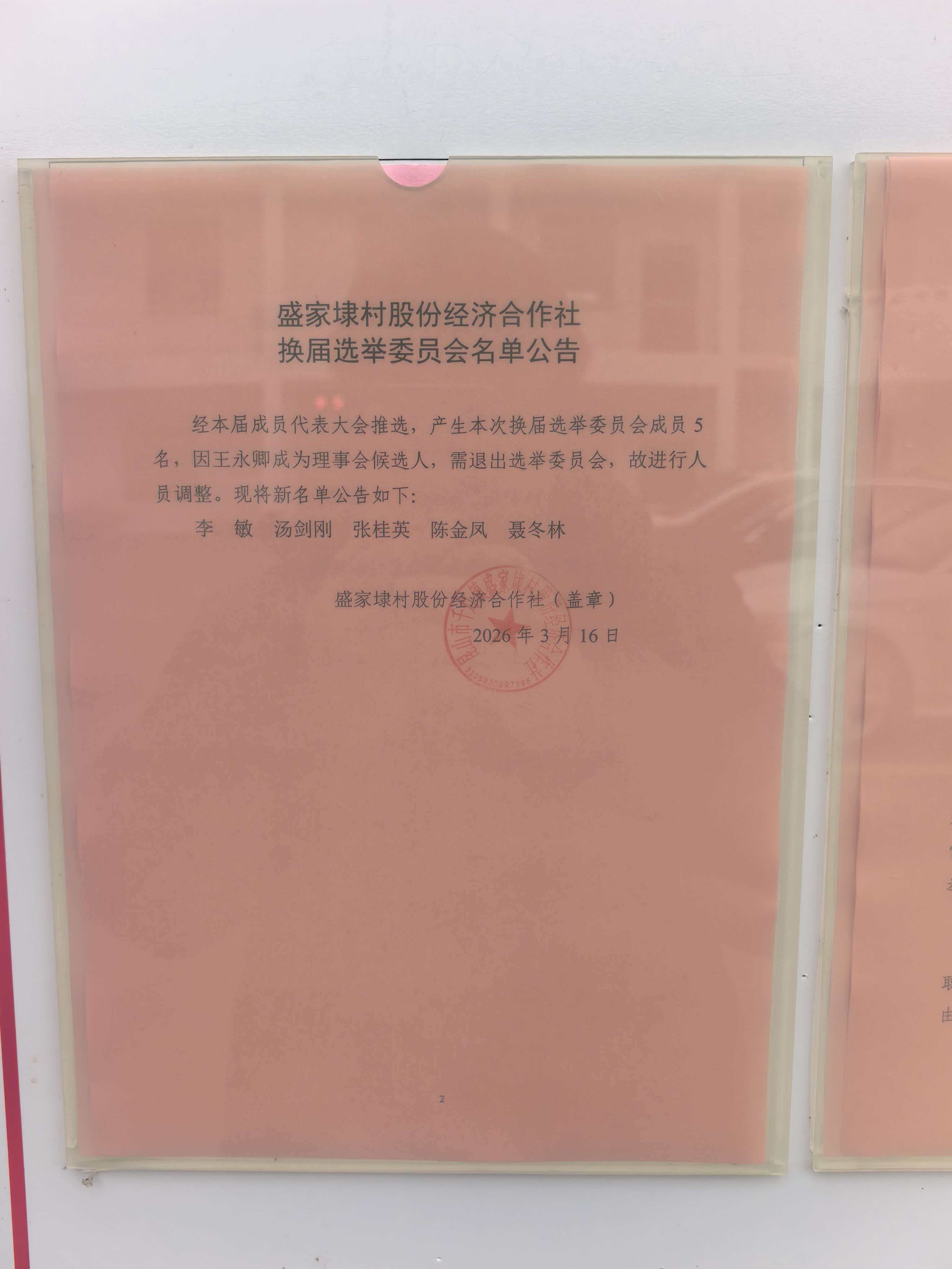 盛家埭村股份经济合作社选举委员会名单、替补名单及选举办法公示