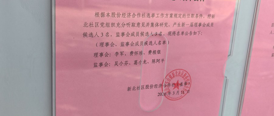 新北社区股份经济合作社理事会、监事会成员候选人名单第一轮公示