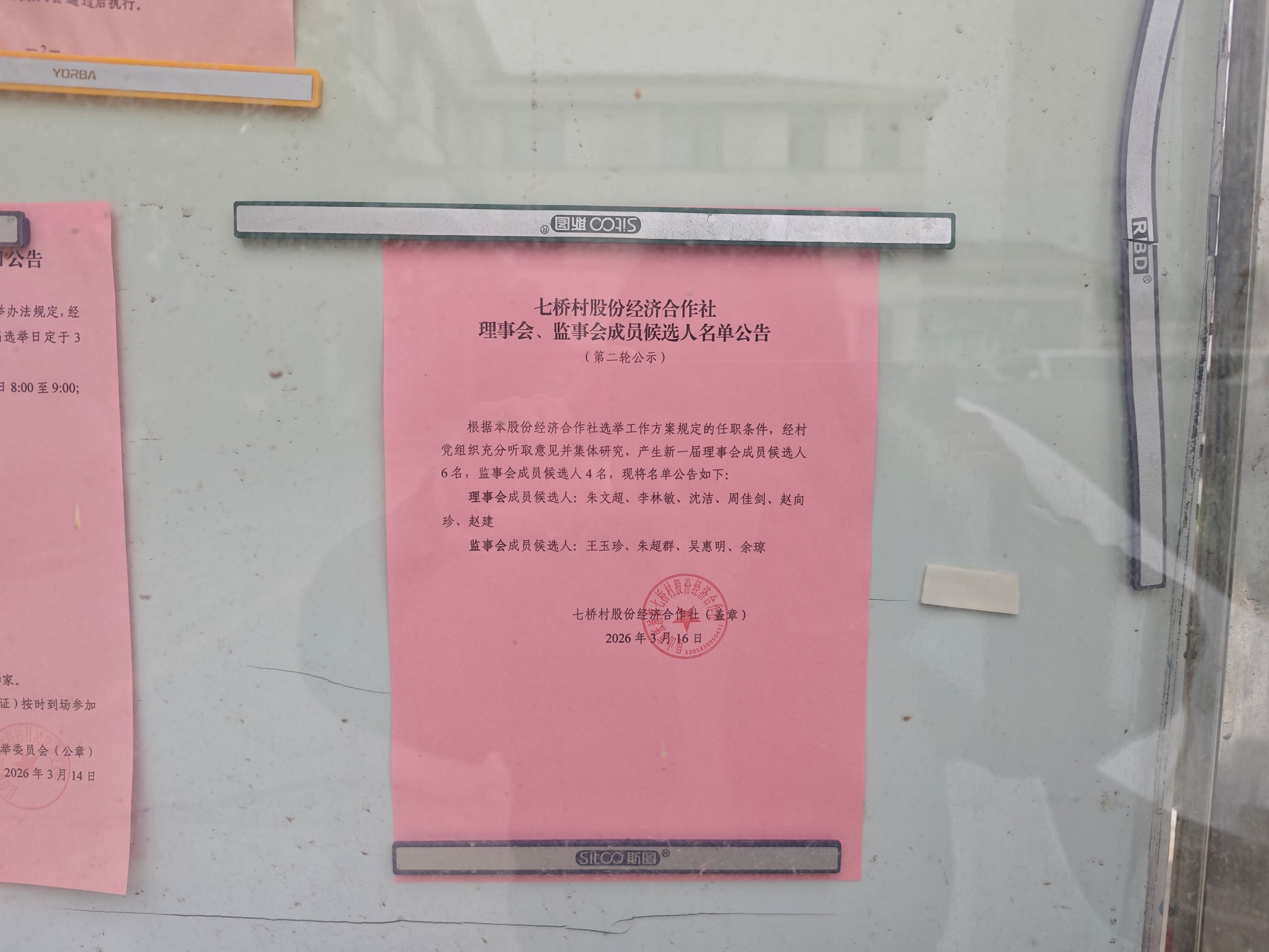 七桥村股份经济合作社理事会、监事会候选人名单(第二轮公示)