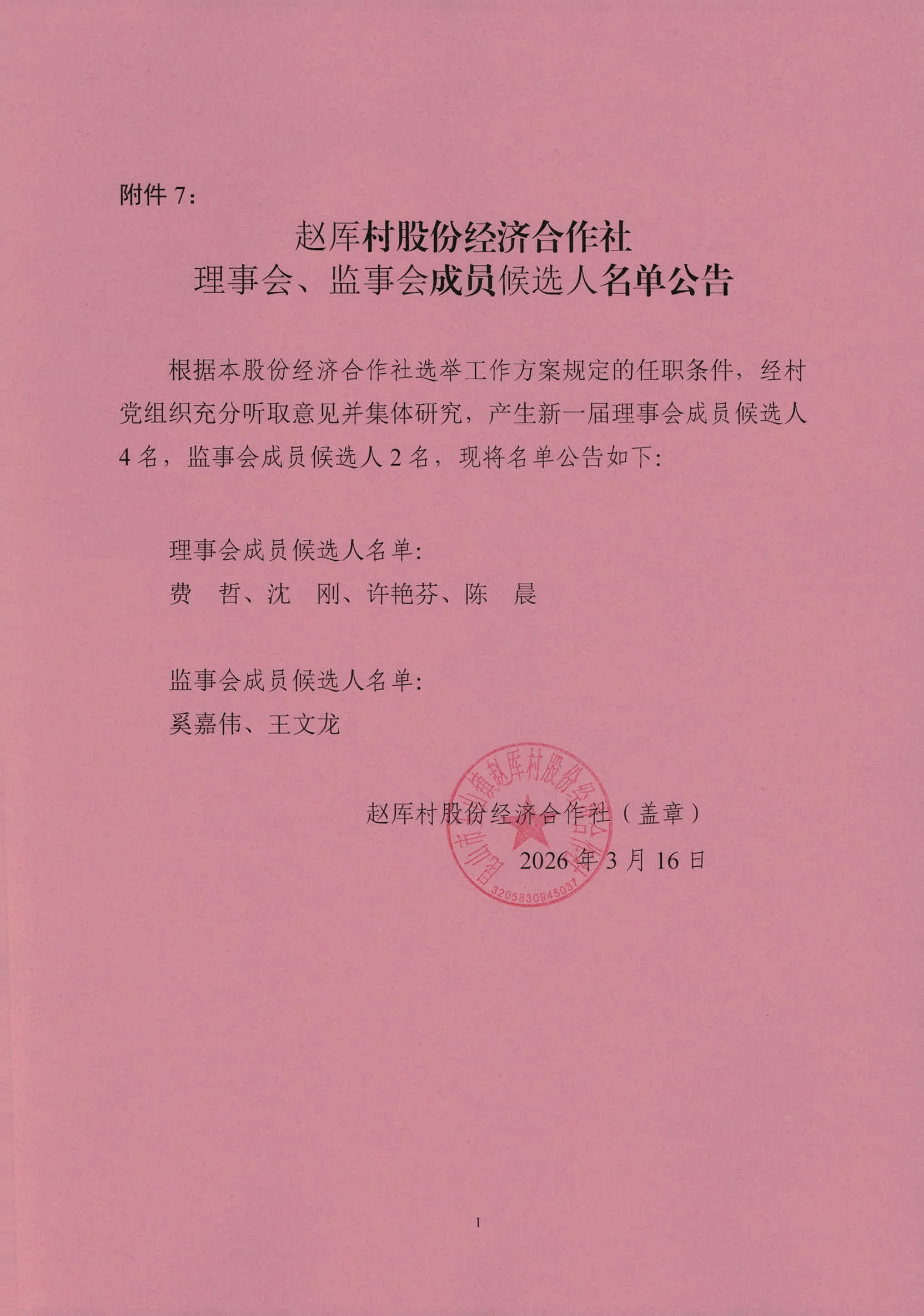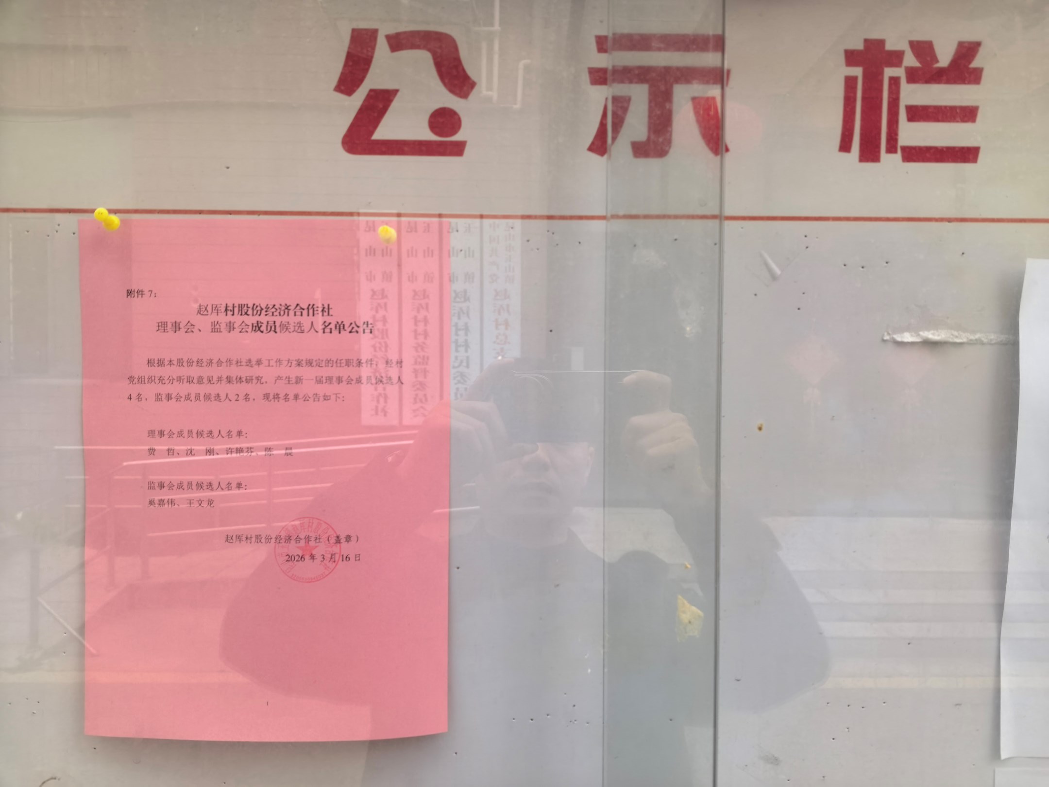 赵厍村股份经济合作社理事会、监事会成员候选人第二轮公示